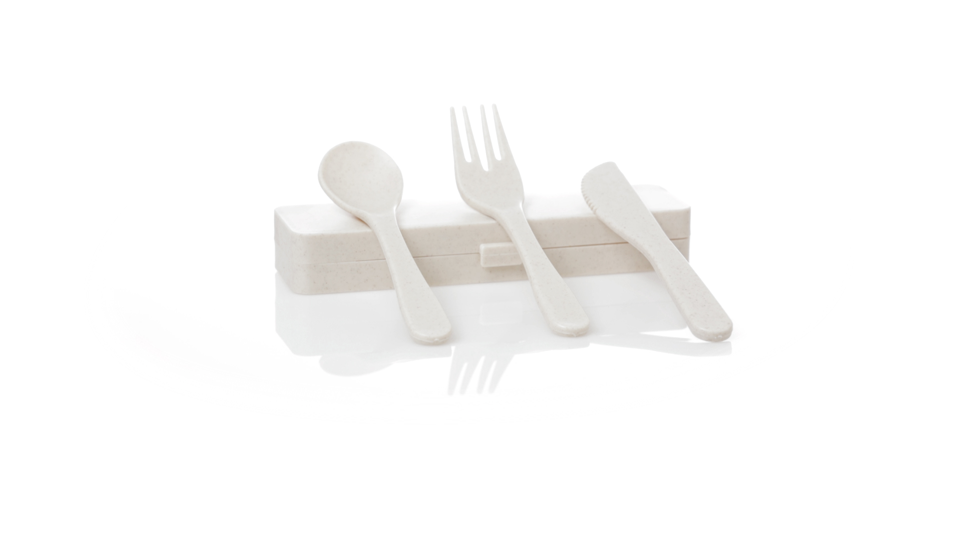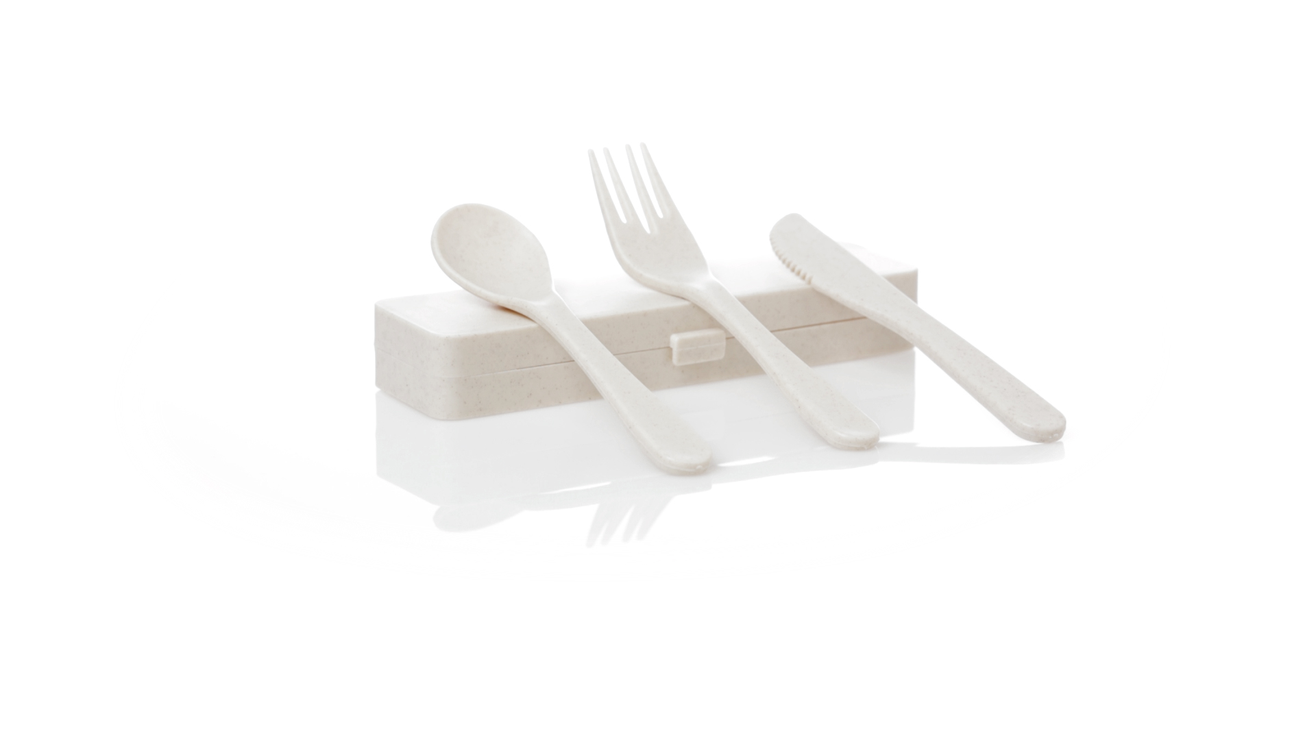 Besteckset aus PP mit geäderter Oberfläche, BPA-frei, mit passendem Etui. Inklusive Löffel, Gabel und Messer. Lebensmittelzertifizierung, die die Sicherheit garantiert, wenn Lebensmittel mit dem zur Herstellung des Produkts verwendeten Material in Berührung kommen.
