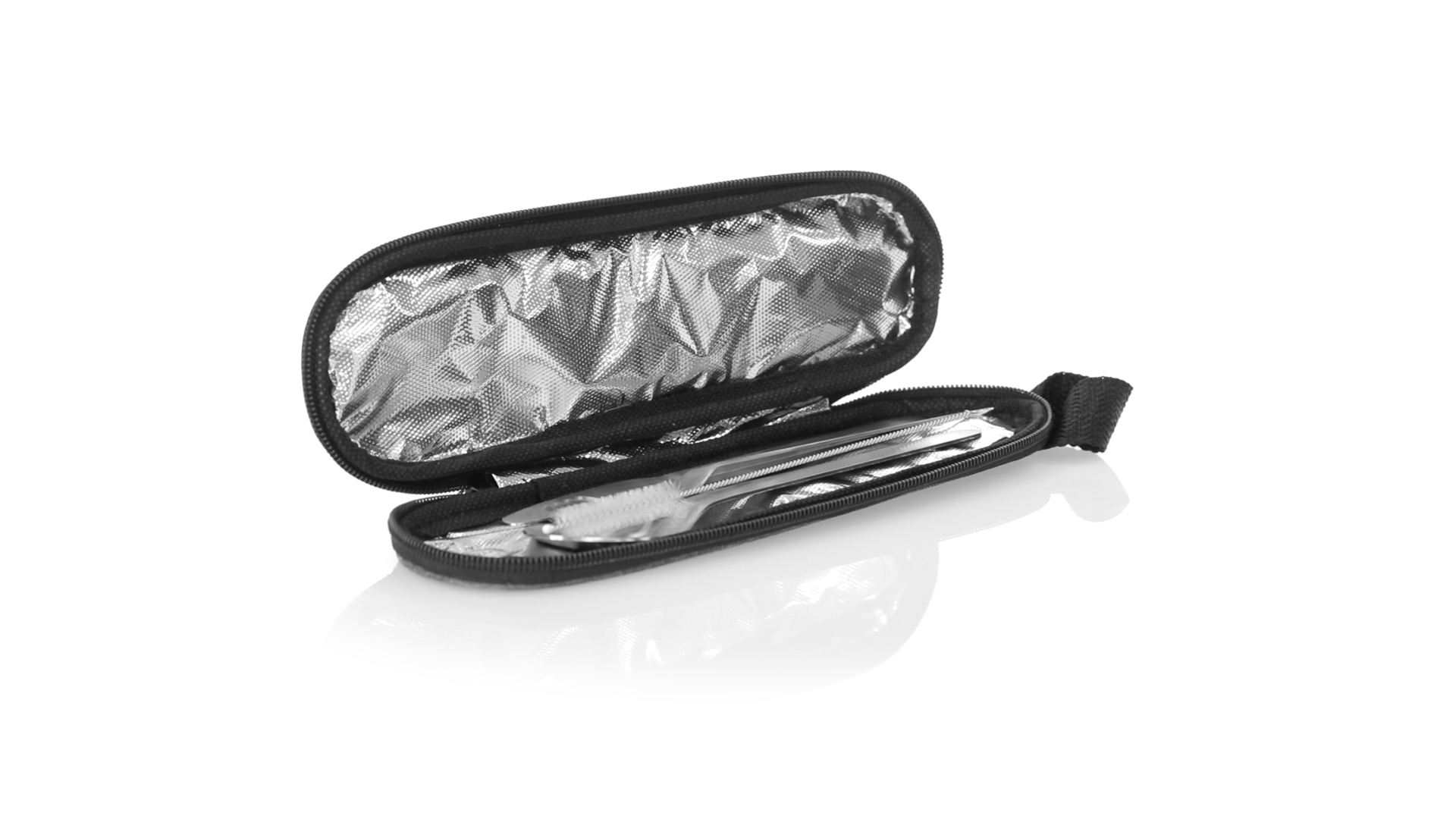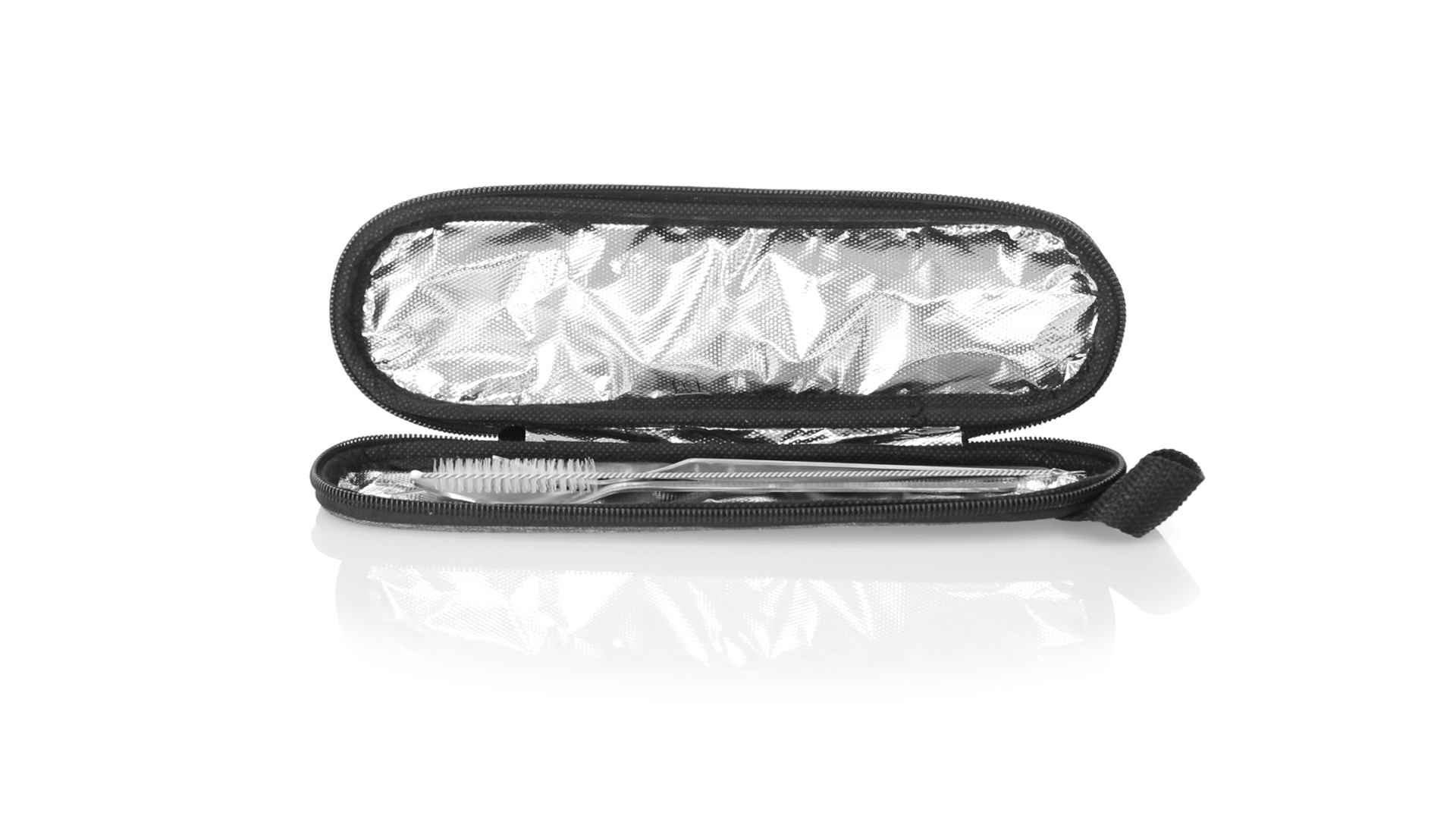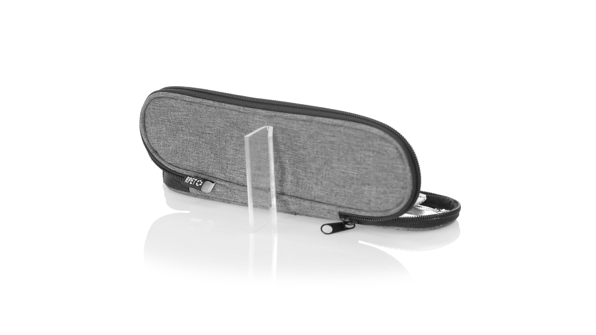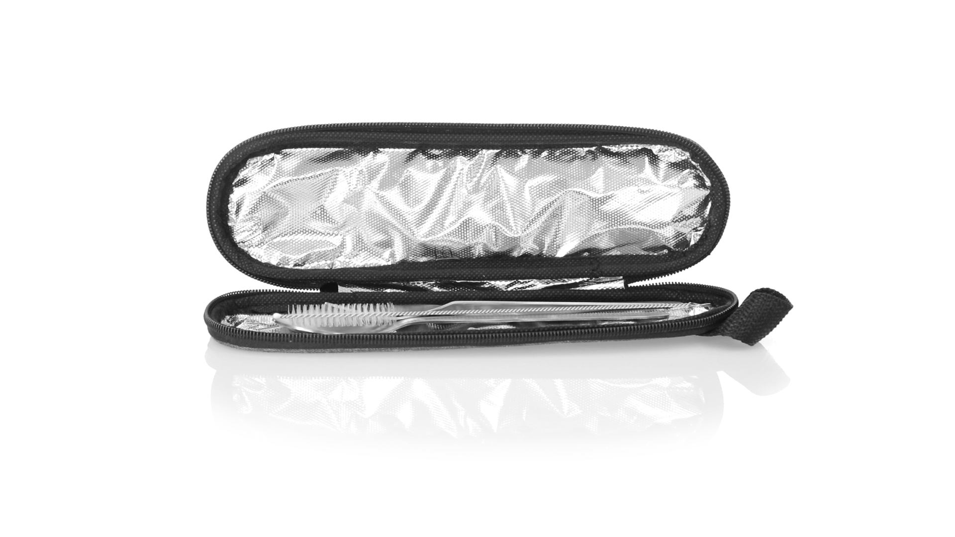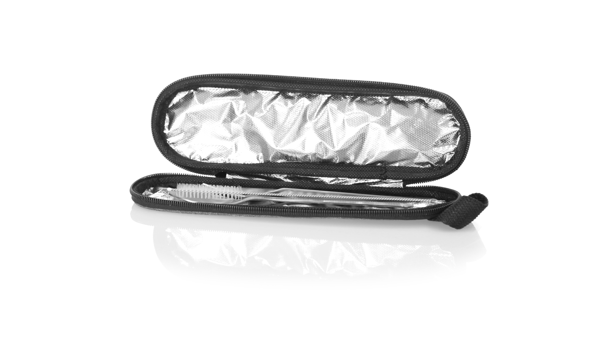 Wiederverwendbares Besteckset aus widerstandsfähigem und langlebigem Edelstahl. Inklusive Löffel, Messer, Gabel, Strohhalm und Reinigungszubehör. Präsentiert in einem eleganten 300D RPET-Polyester-Etui aus recyceltem Kunststoff, um die Wiederverwendung von Kunststoffabfällen zu fördern und die Nachhaltigkeit des Planeten zu unterstützen. Etui mit Trageriemen, Reissverschluss und RPET-Label auf dem Etikett.