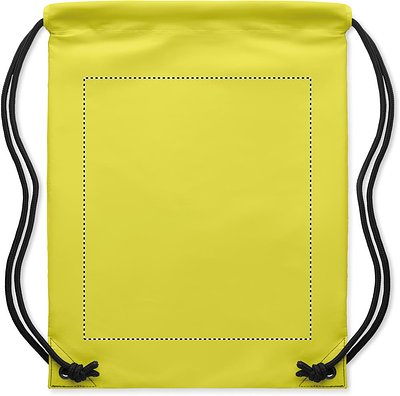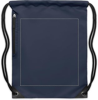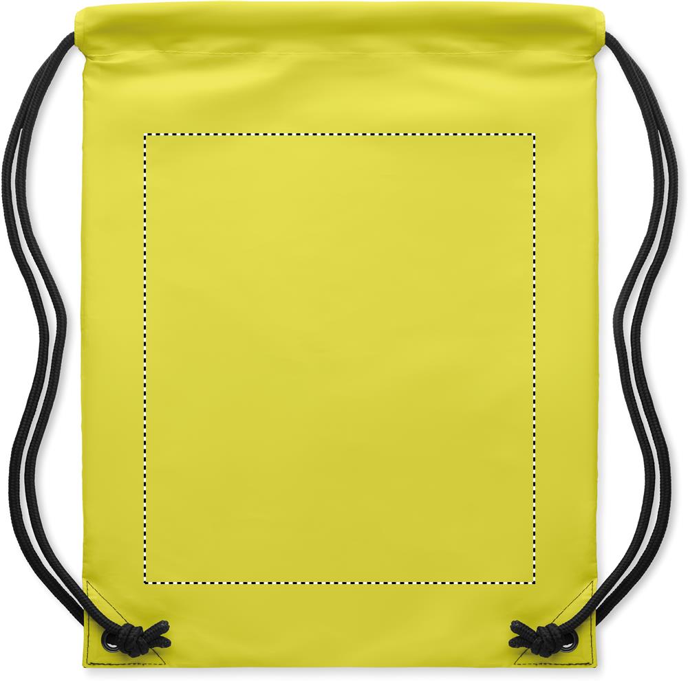 Beutel mit Kordelzug aus 190T Polyester, beschichtet mit reflektierendem Granulat. Seitliche Reissverschlusstasche. Dicke Kordel.