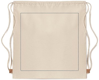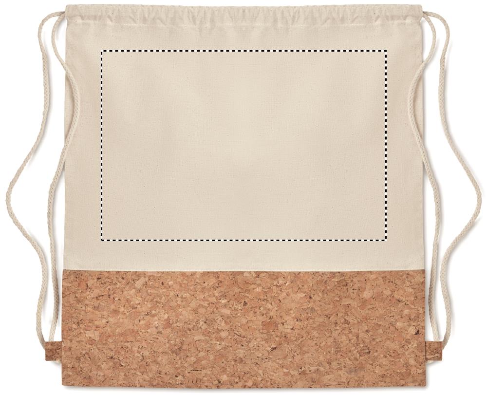 Beutel mit Kordelzug und Besatz aus Kork. Lange Tragegriffe. Baumwolle 160 g/m². Kork ist ein natürliches Material, aufgrund seiner strukturellen Beschaffenheit und Oberflächenporosität kann das Druckergebnis pro Artikel Abweichungen aufweisen.