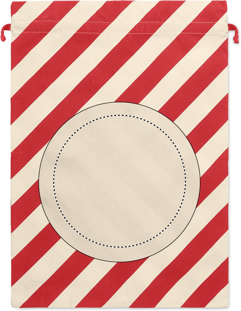 Grosser, weihnachtlicher Beutel aus Baumwolle mit Kordelzug. Masse ca. 50x70 cm. 180 g/m².