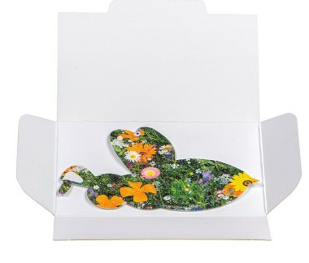 In das Bienchen ist der Samen der Sommerblumenmischung bereits eingearbeitet. Das biologisch abbaubare Papier wird einfach auf oder unter Erde gelegt. Durch Regen oder Gießen löst sich das Papier auf und die Samen beginnen zu wachsen.