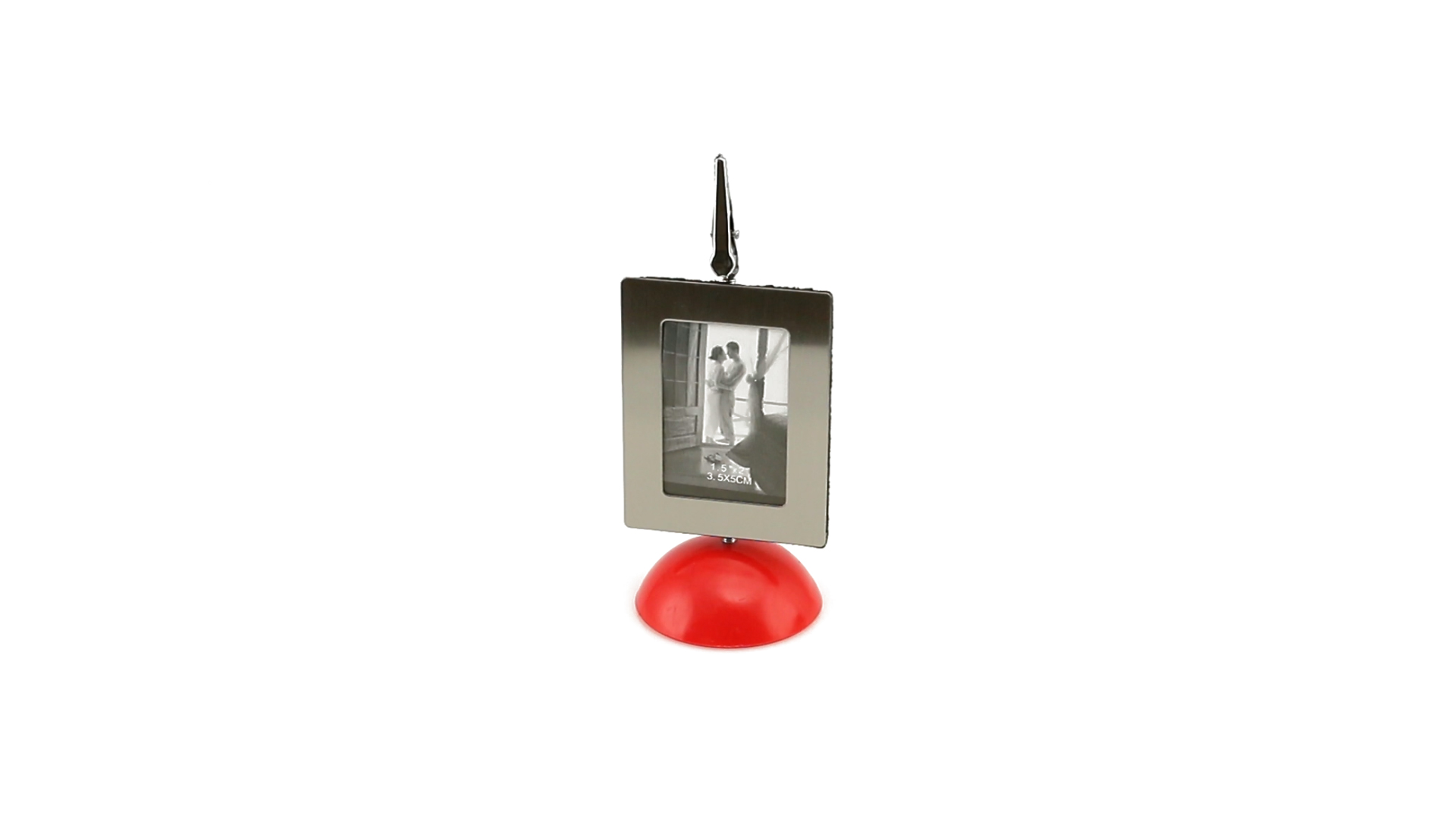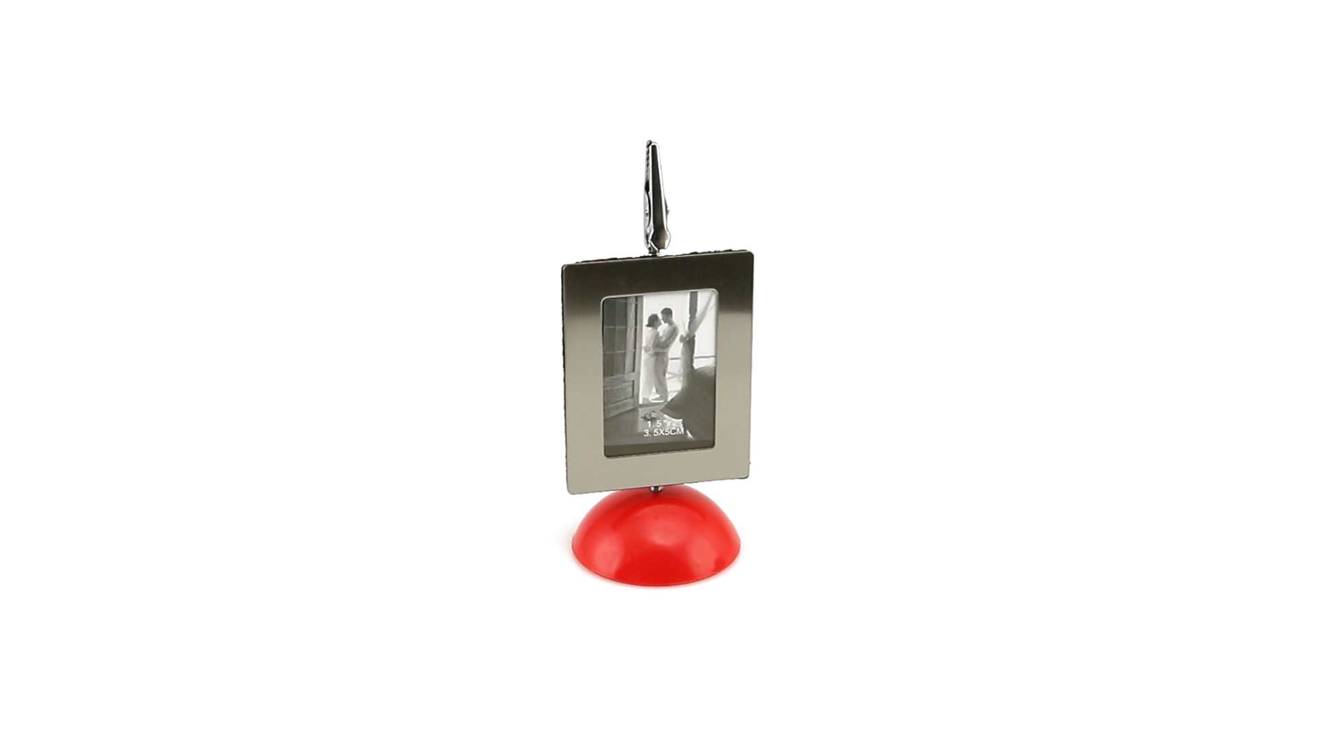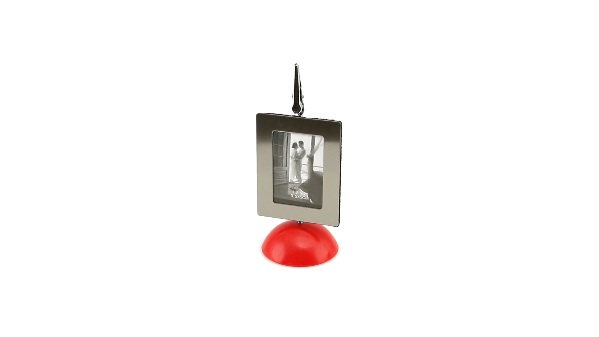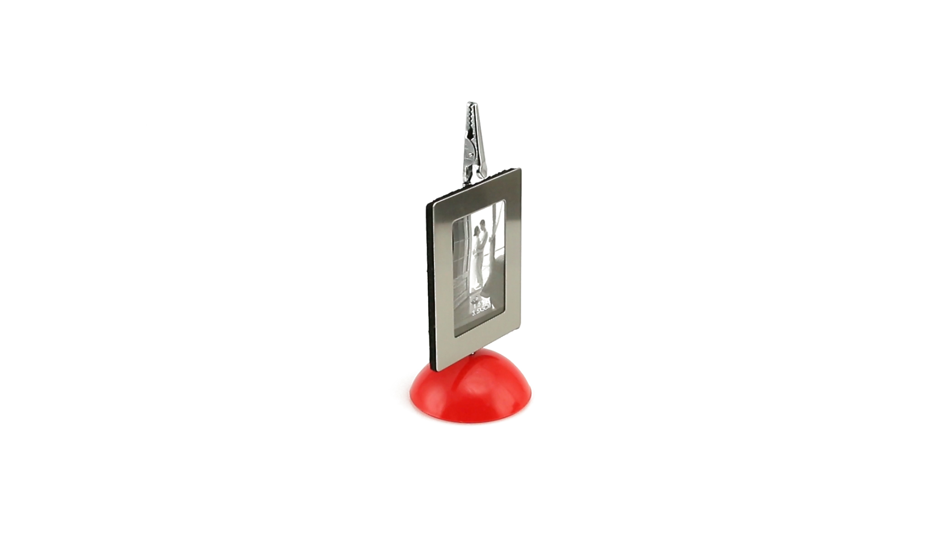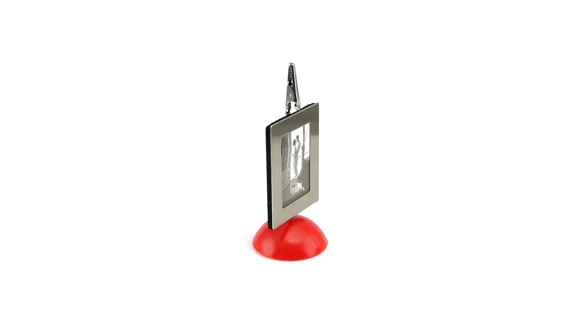 Tisch-Fotorahmen mit magnetischem Edelstahl-Rahmen und Metall-Notizhalterclip sowie robuster, rutschfester Unterseite - in verschiedenen Farben. Präsentiert in einer PVC-Box.