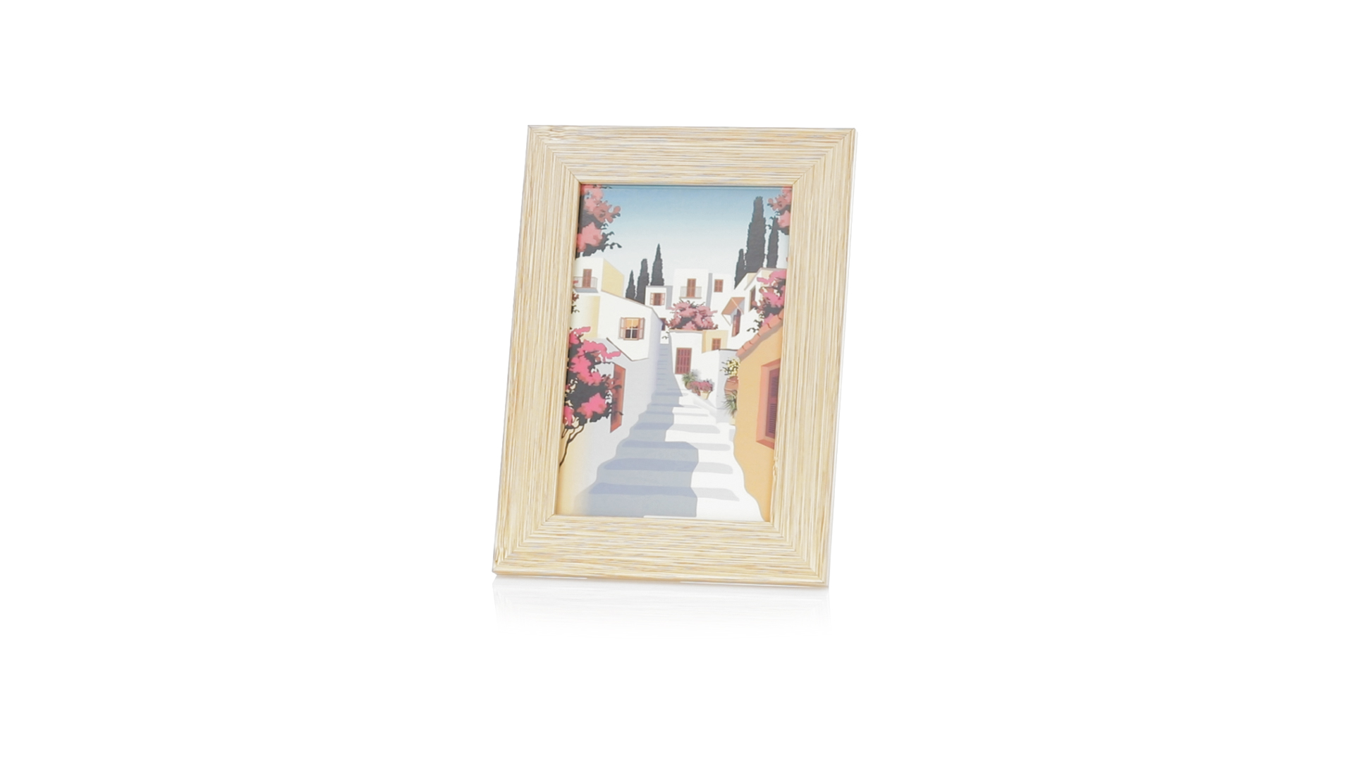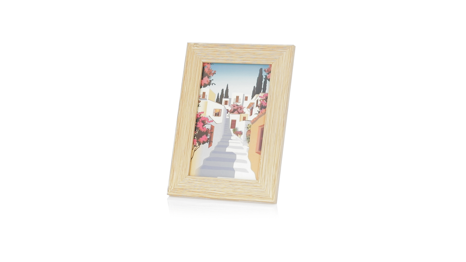 Nature Line-Fotorahmen aus MDF, mit Schutzglas und hinterer Halterung für horizontale oder vertikale Ausrichtung. Geeignet für Fotos bis zu einer Grösse von 10x15 cm. Präsentiert in einer attraktiven Einzelverpackung im Öko-Design.