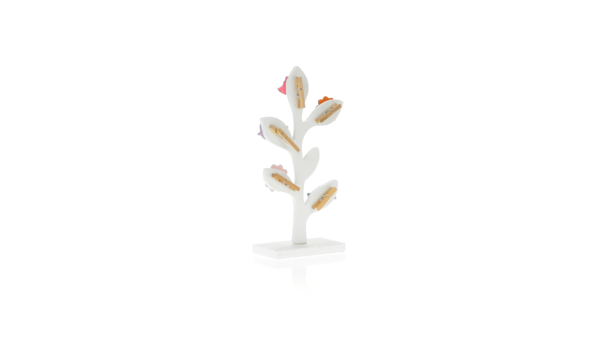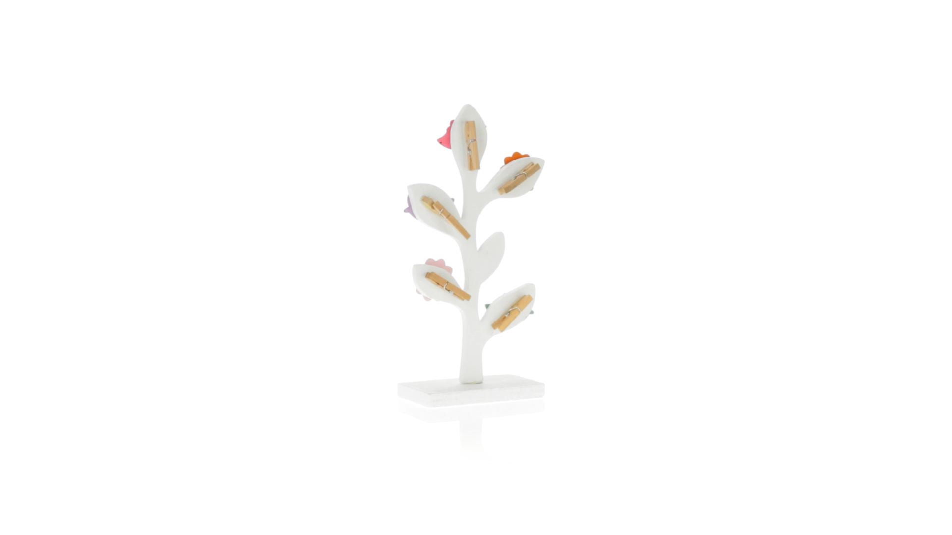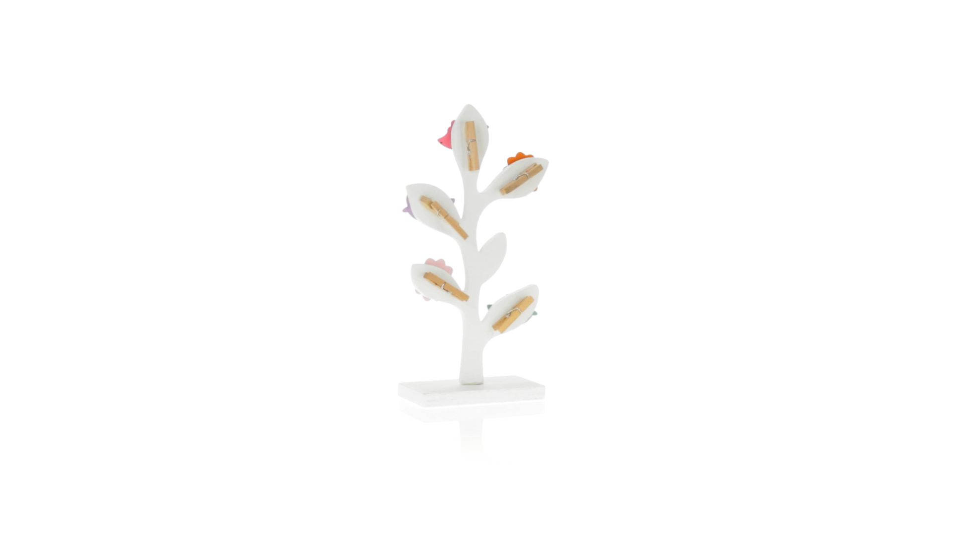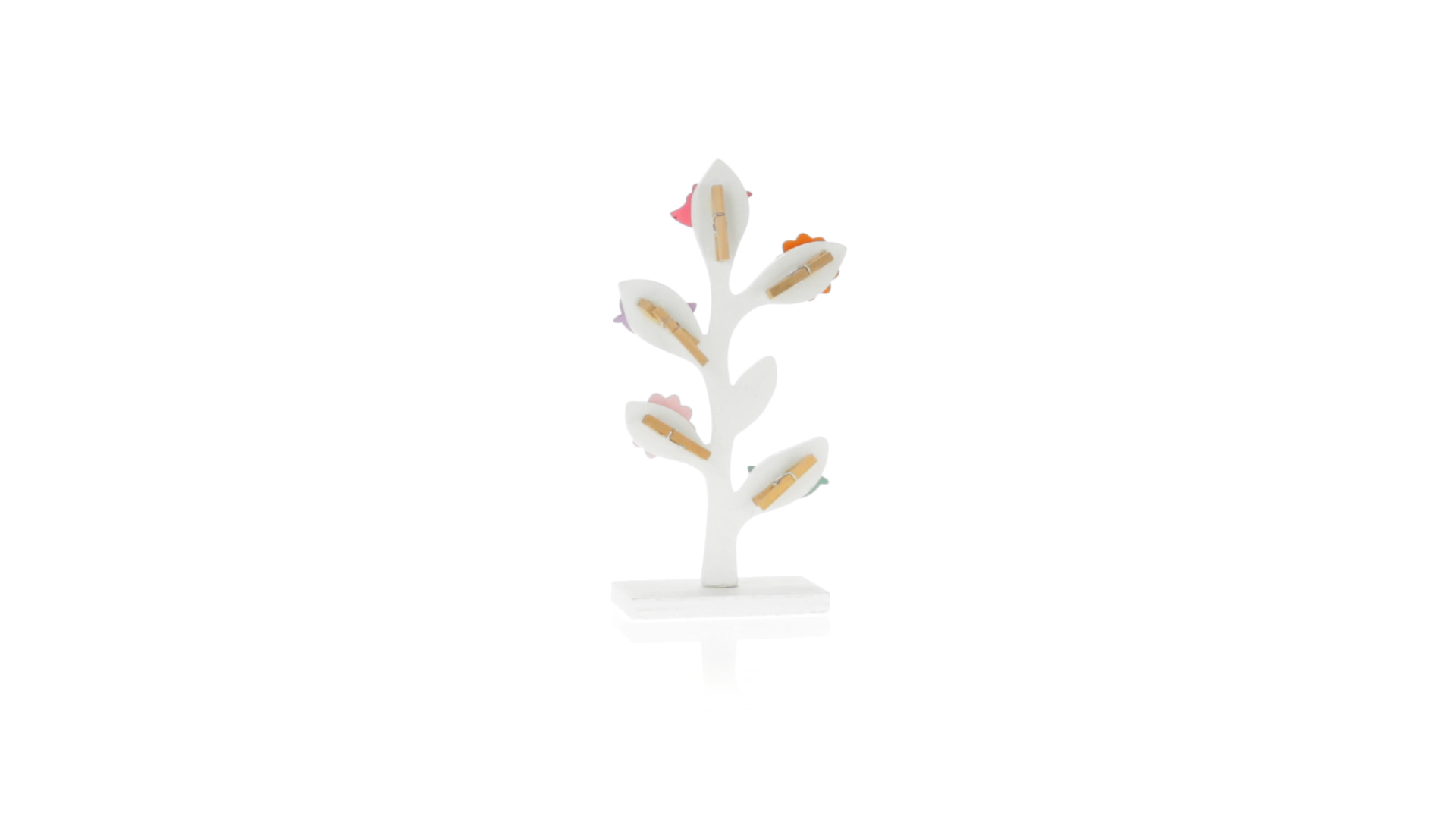 Origineller Fotohalter aus Holz in Form eines Baumes. Mit 6 fröhlichen und verspielten Clips für Fotos. Präsentiert in einer individuellen Box.