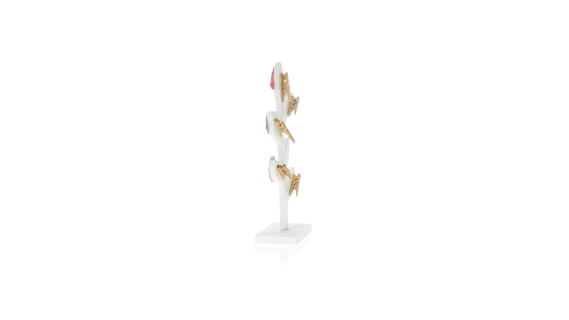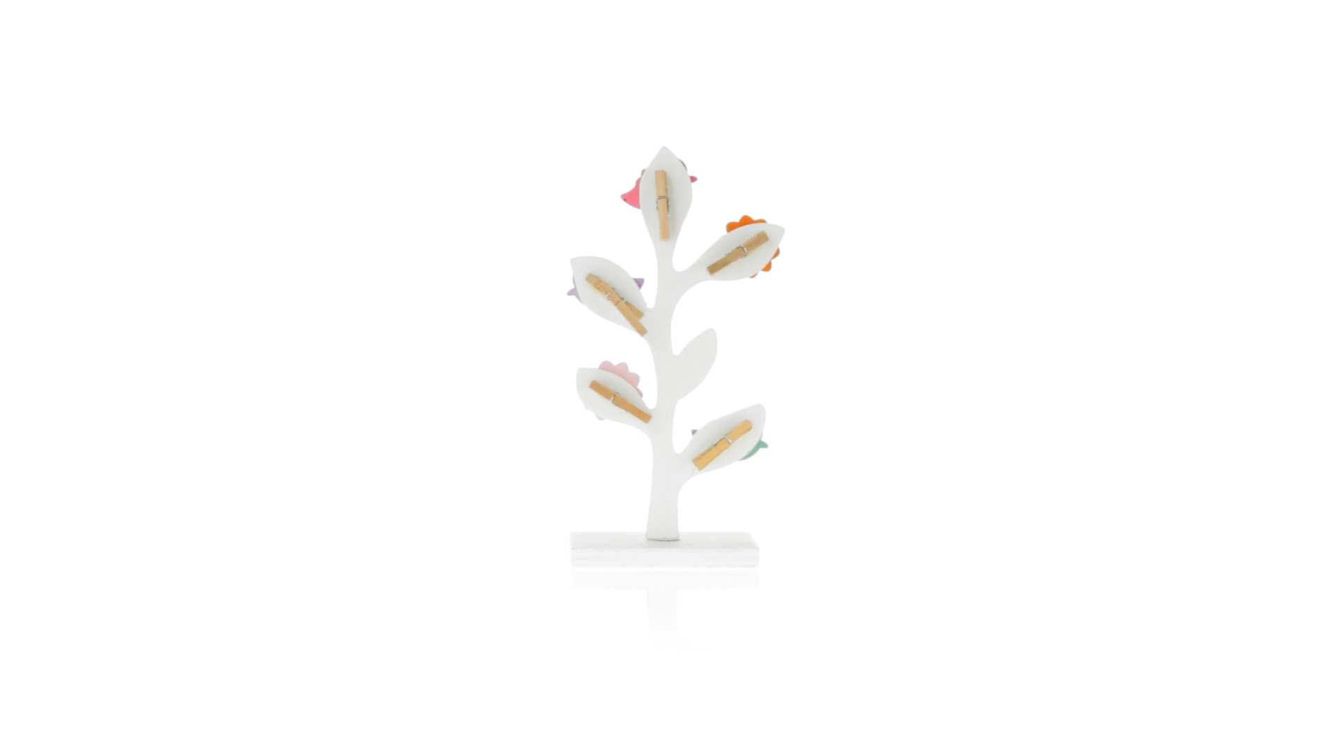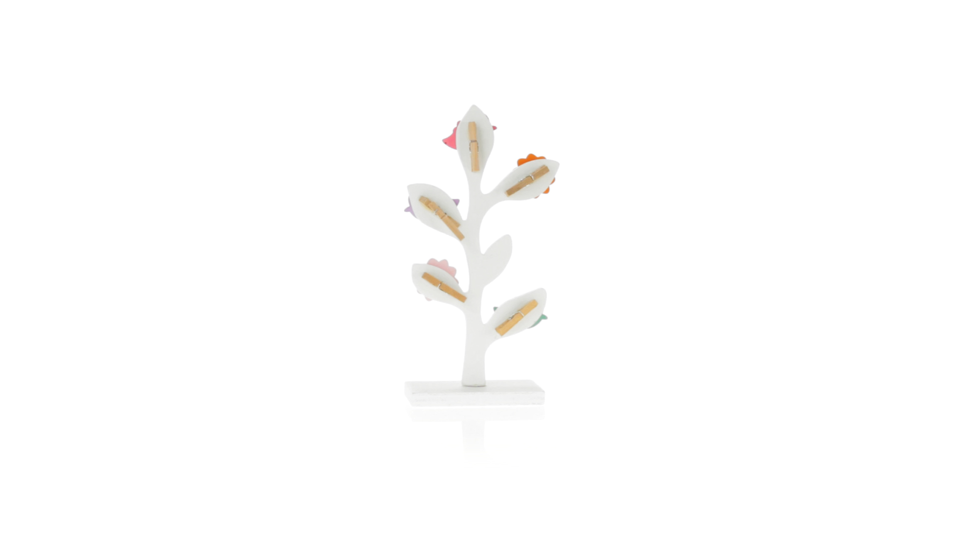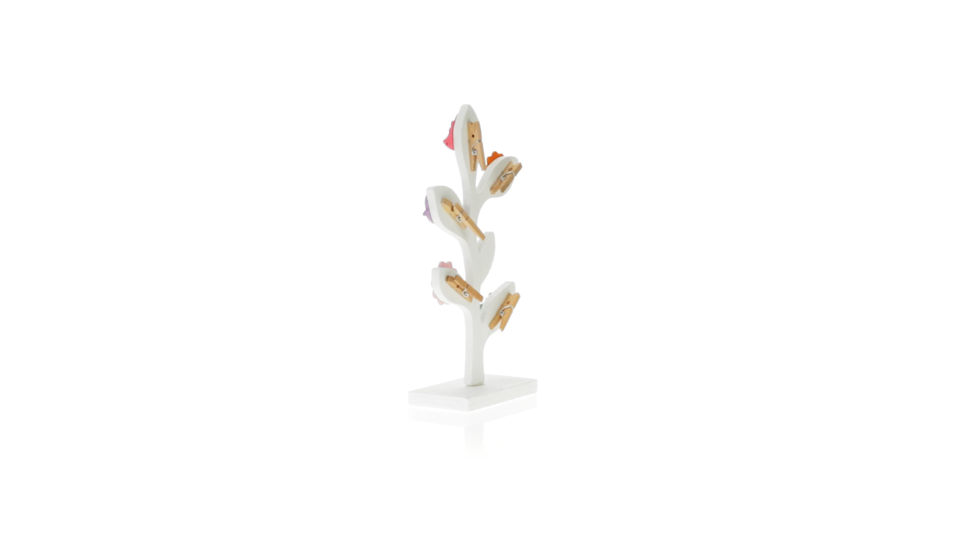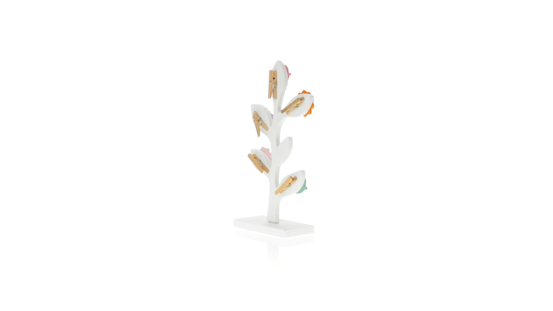 Origineller Fotohalter aus Holz in Form eines Baumes. Mit 6 fröhlichen und verspielten Clips für Fotos. Präsentiert in einer individuellen Box.