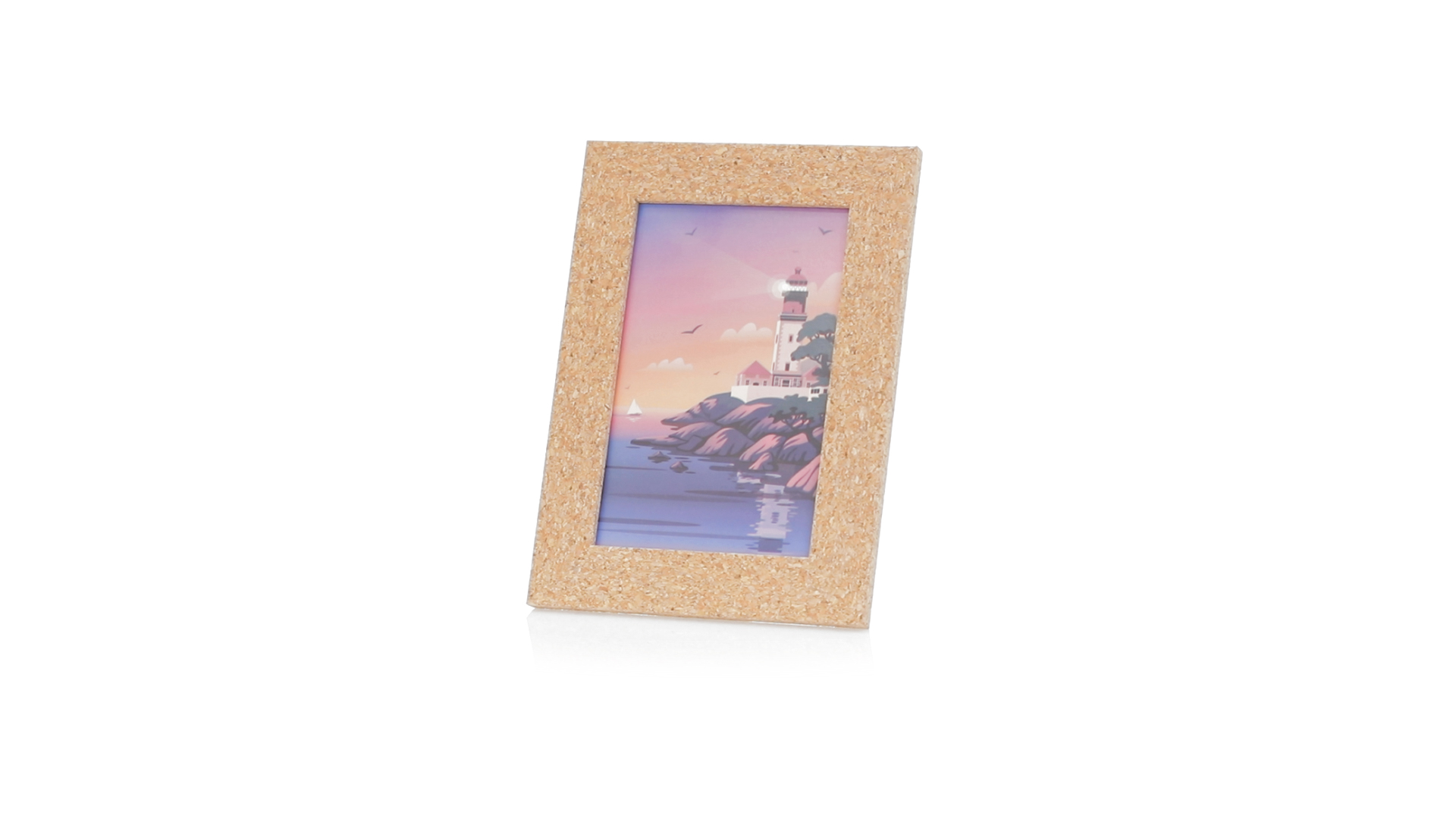 Nature Line-Fotorahmen aus Kork, mit Schutzglas und hinterer Halterung für horizontale oder vertikale Ausrichtung. Geeignet für Fotos bis zu einer Grösse von 10x15 cm. Präsentiert in einer attraktiven Einzelverpackung im Öko-Design.