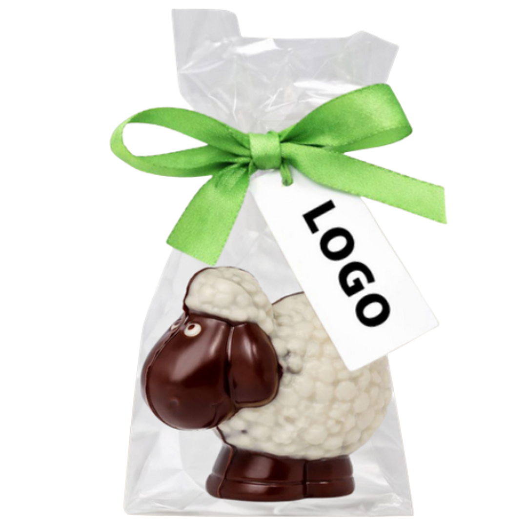 Bio Osterschokolade – Schaf & Lämmchen aus Grand Cru BIO Schokolade mit Logo