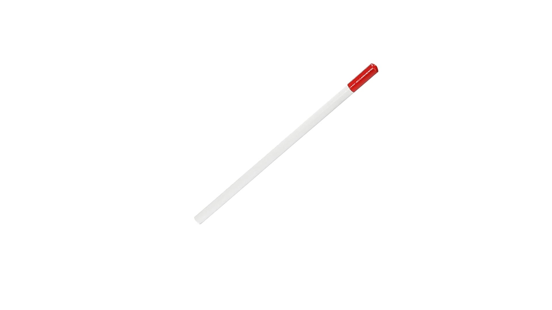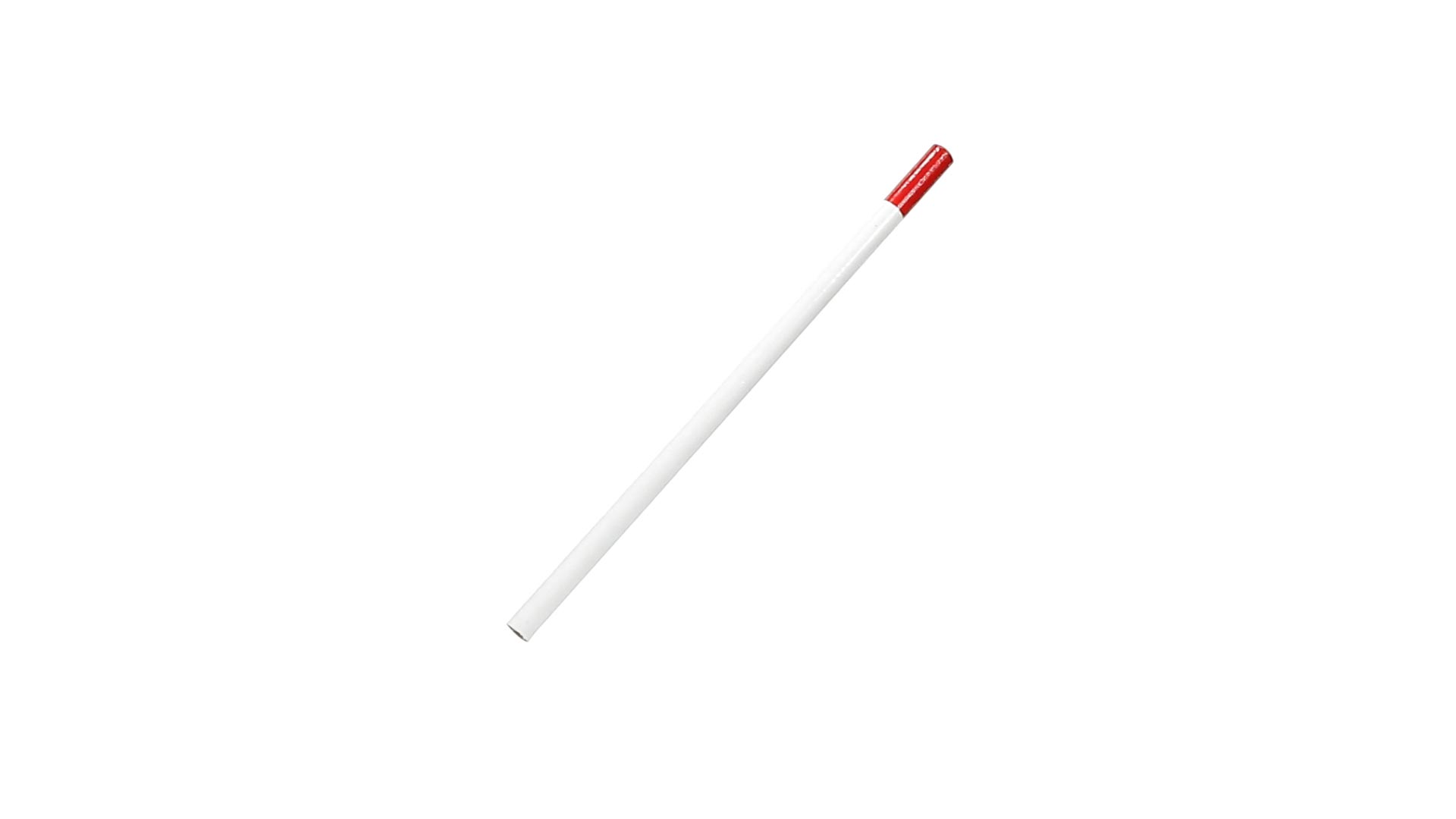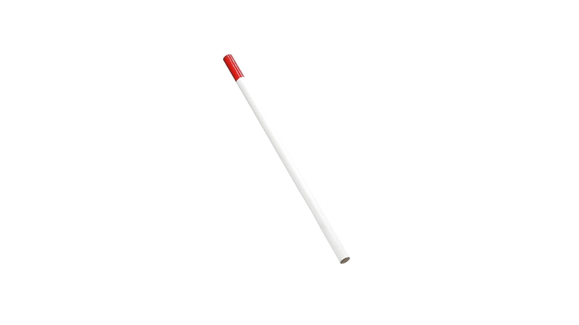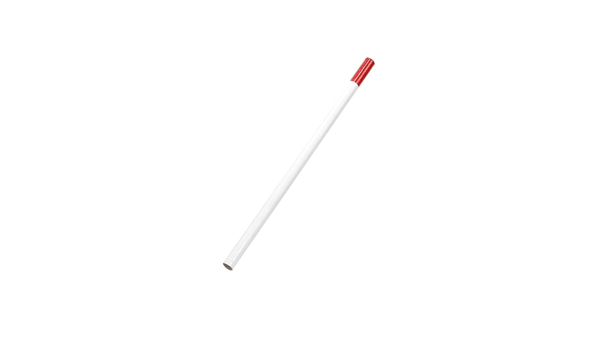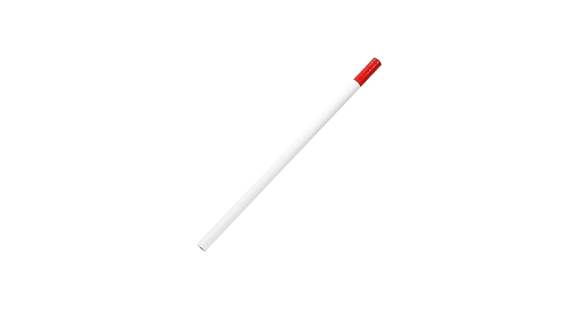 Hölzerner Bleistift mit rundem Körper in glänzendem Weiss mit Kontrastdetails in verschiedenen fröhlichen Farben.