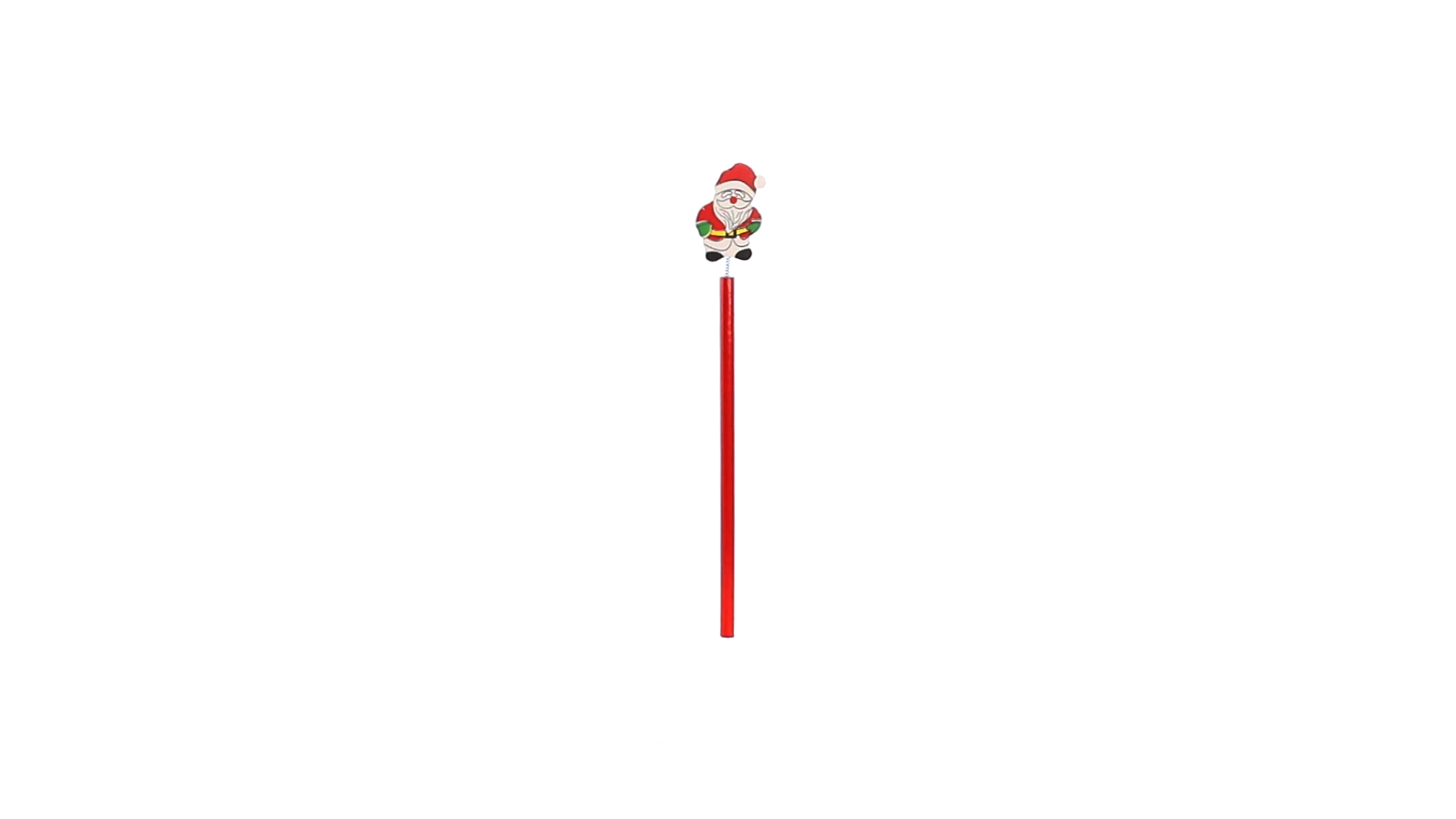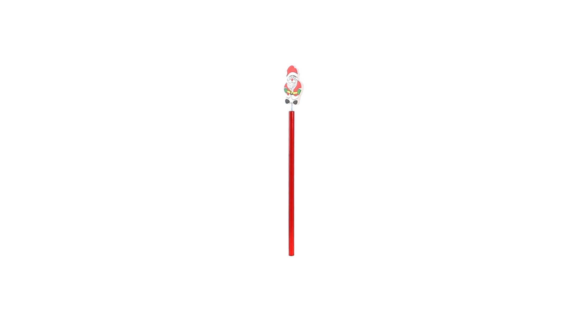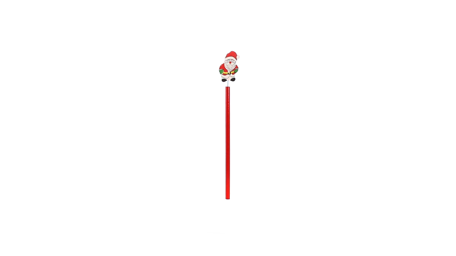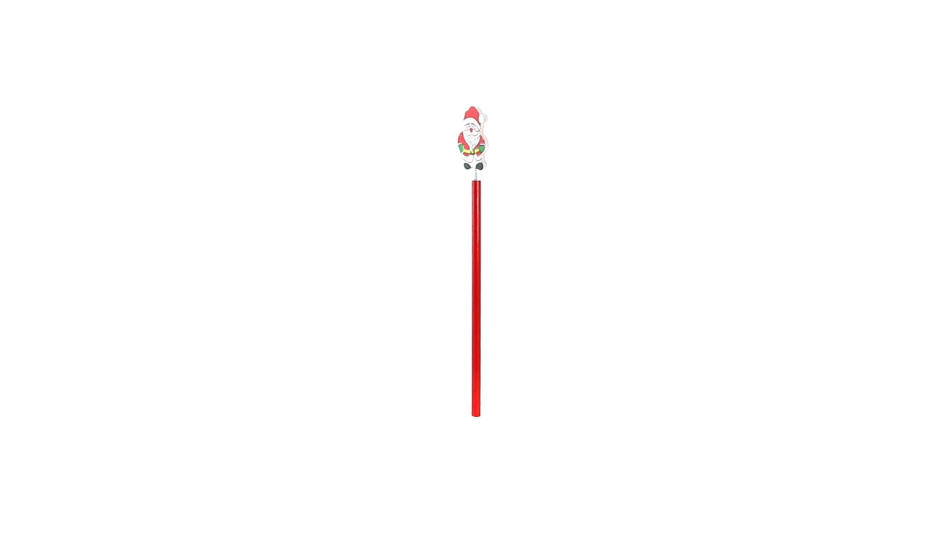 Origineller Holzbleistift mit Weihnachtsdesign in leuchtendem Rot und mit Weihnachtsfigur am oberen Ende. Ungeschliffene Spitze.