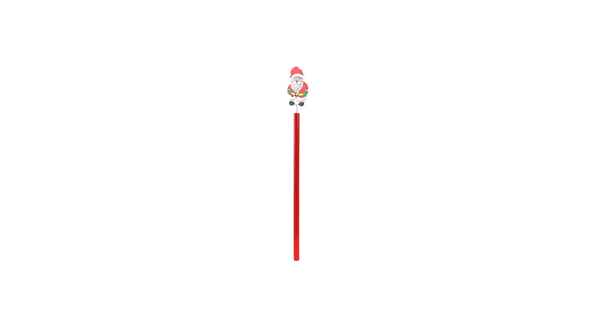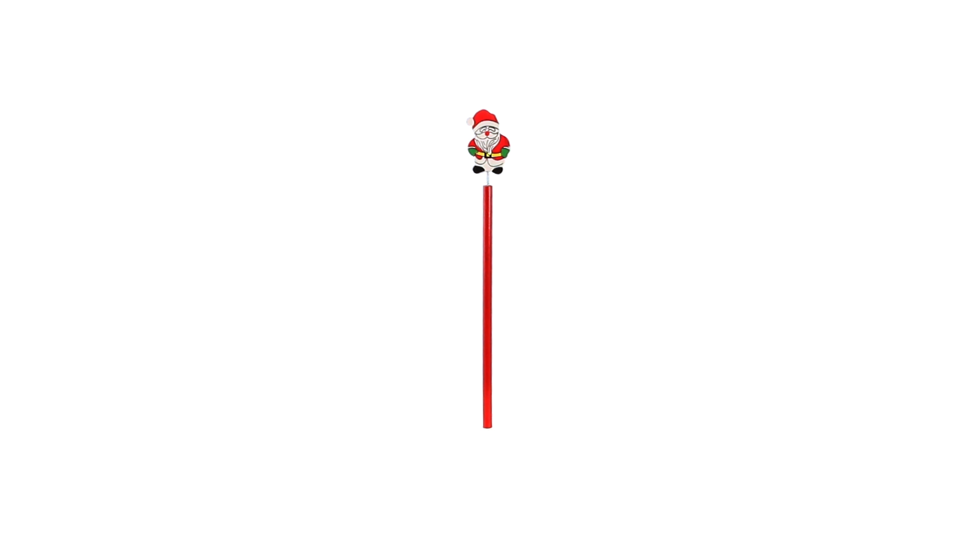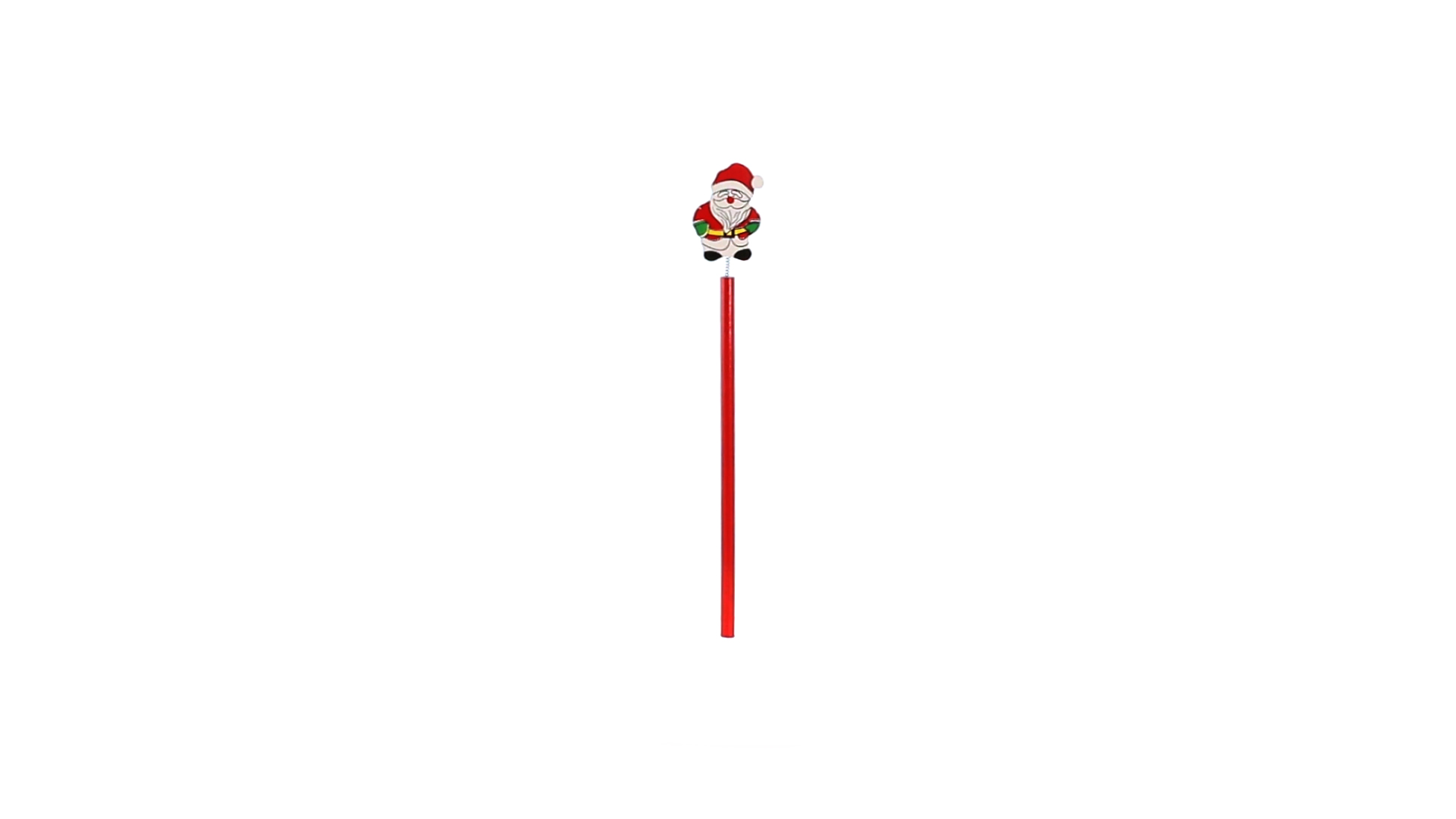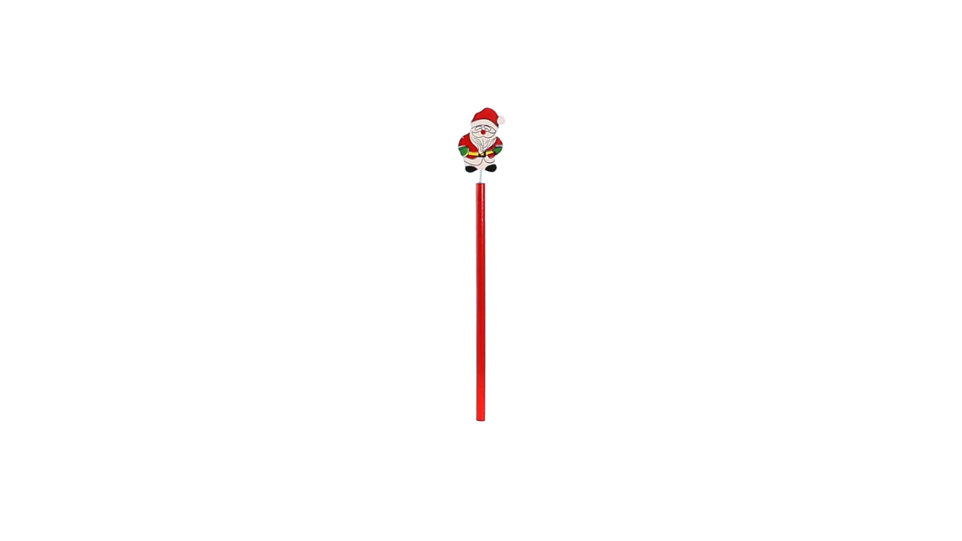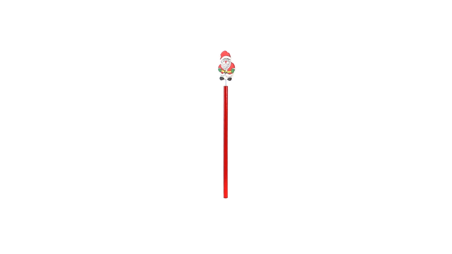 Origineller Holzbleistift mit Weihnachtsdesign in leuchtendem Rot und mit Weihnachtsfigur am oberen Ende. Ungeschliffene Spitze.