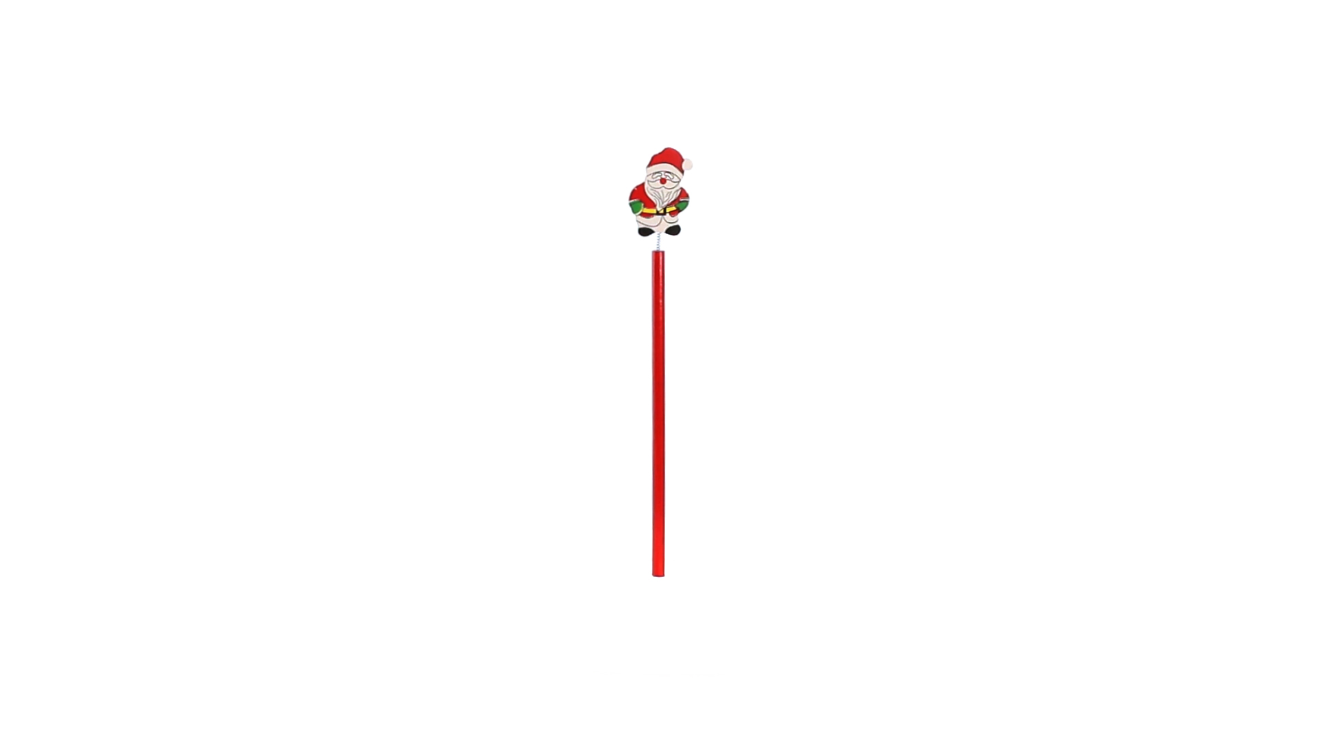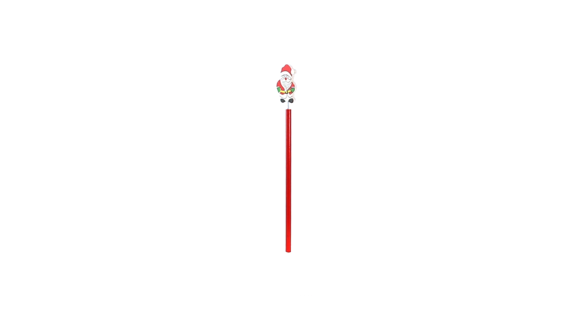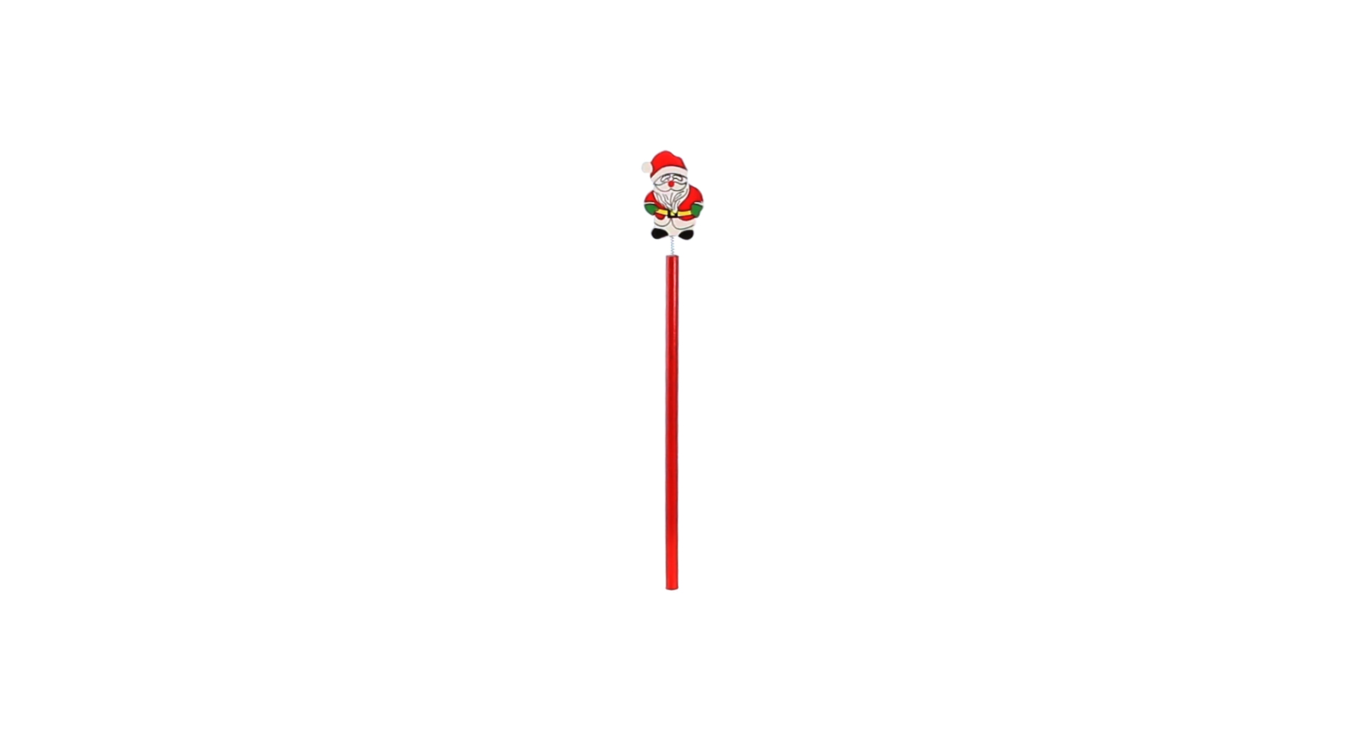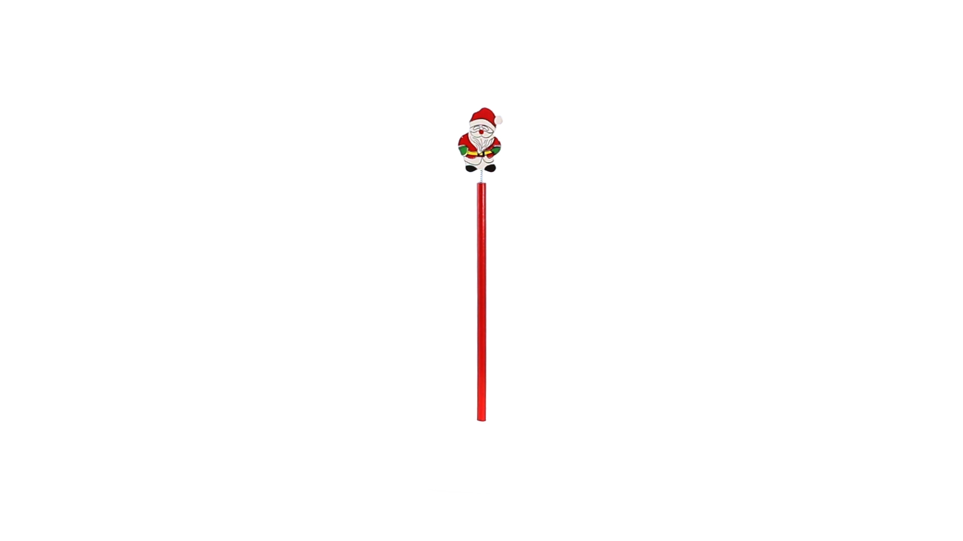 Origineller Holzbleistift mit Weihnachtsdesign in leuchtendem Rot und mit Weihnachtsfigur am oberen Ende. Ungeschliffene Spitze.