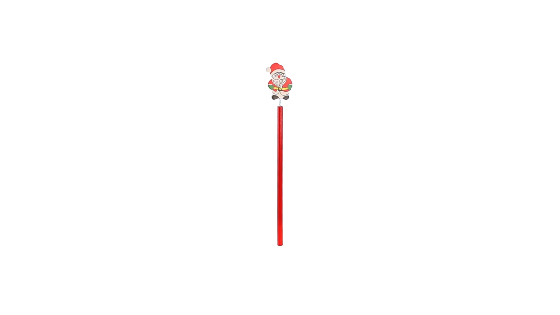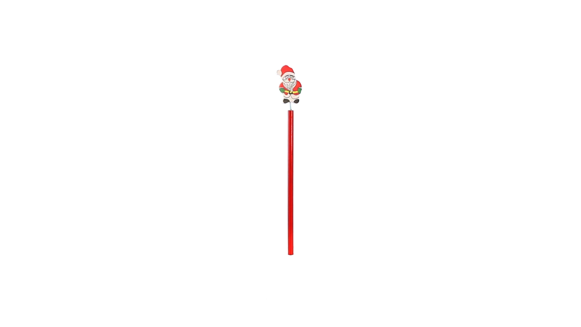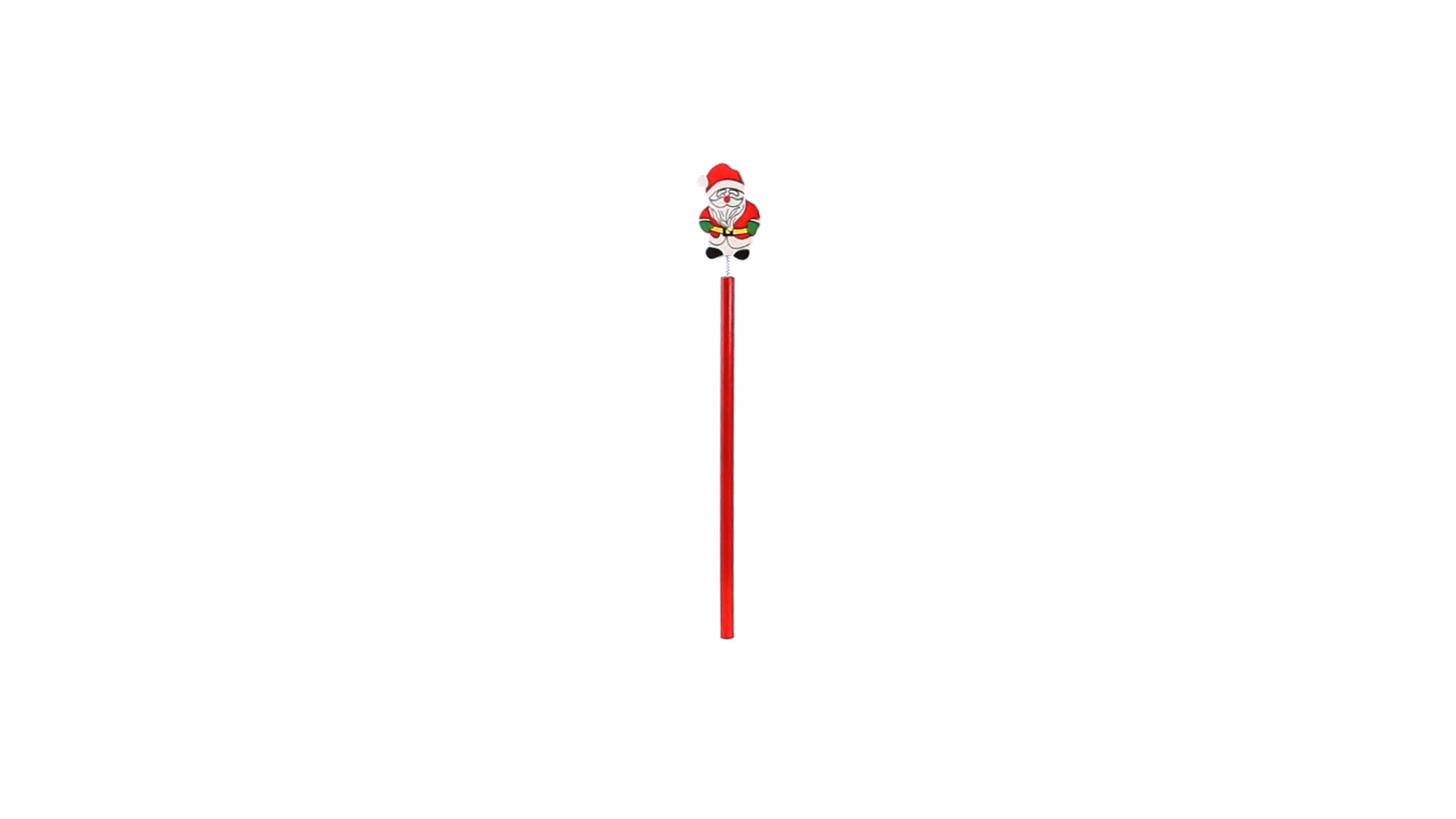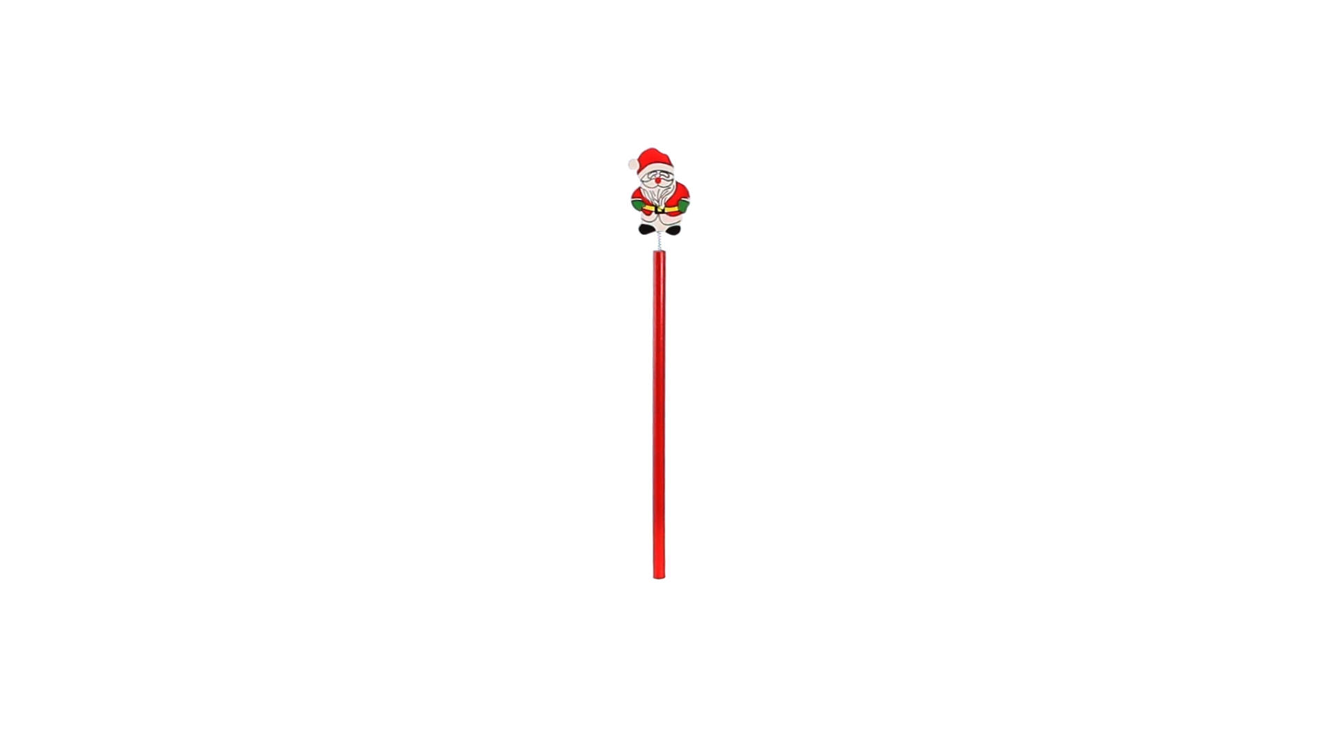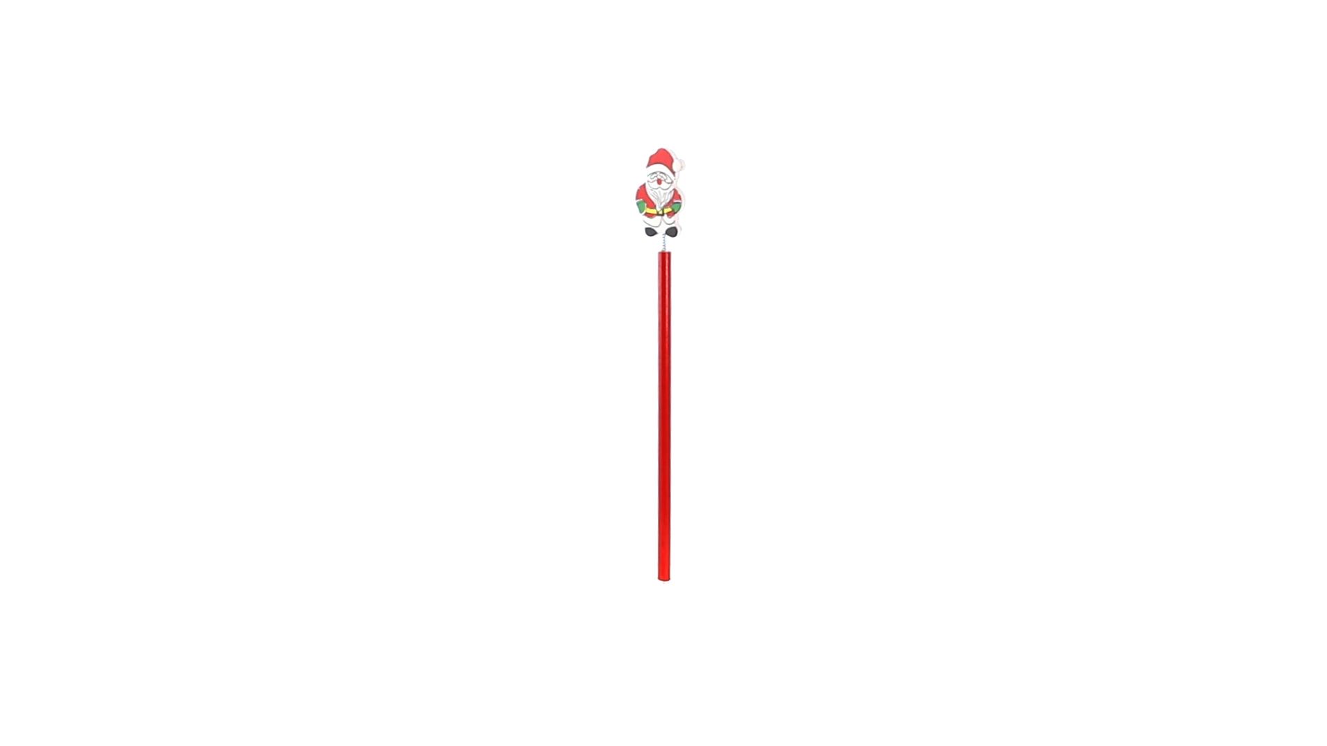 Origineller Holzbleistift mit Weihnachtsdesign in leuchtendem Rot und mit Weihnachtsfigur am oberen Ende. Ungeschliffene Spitze.