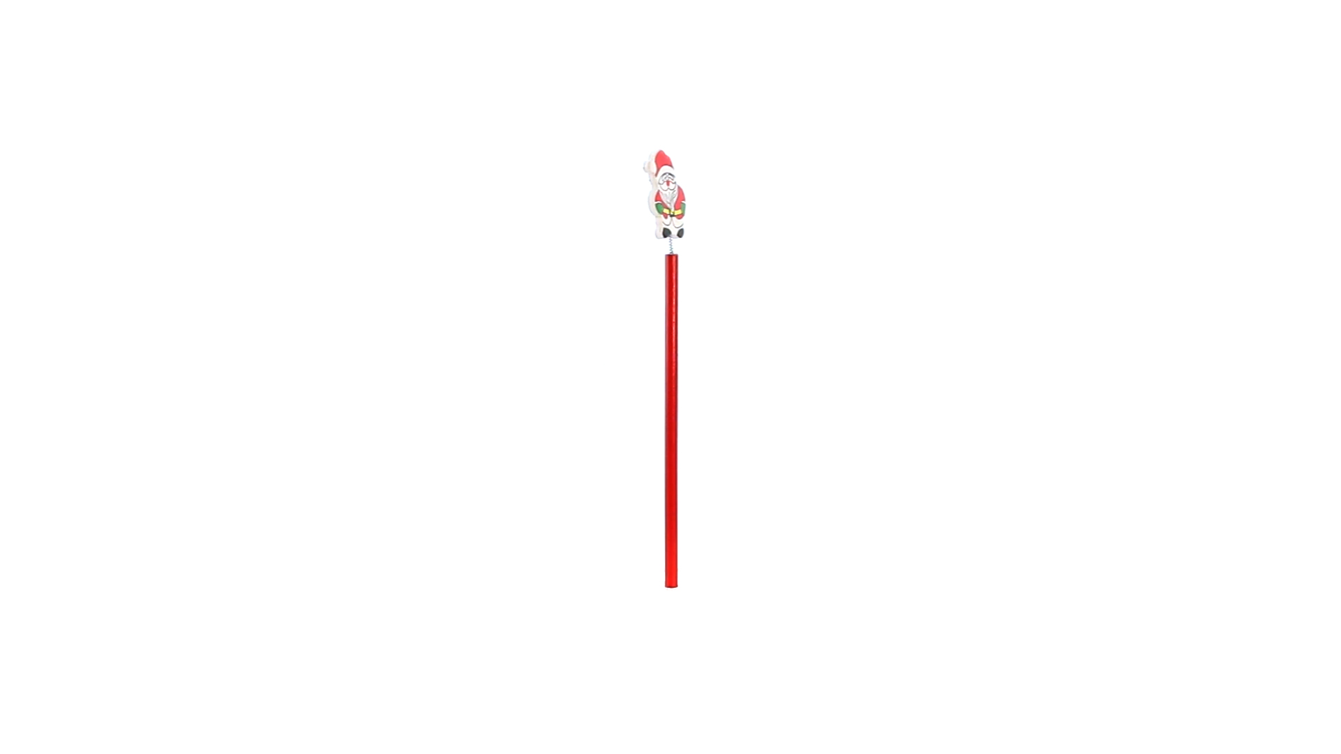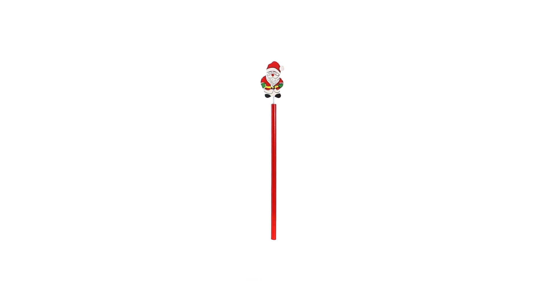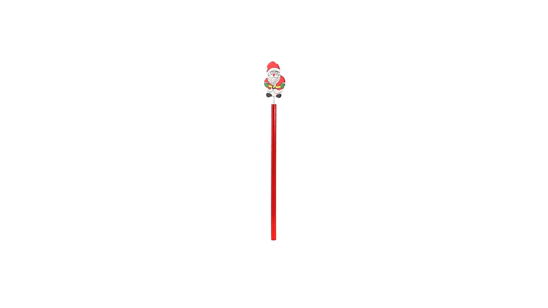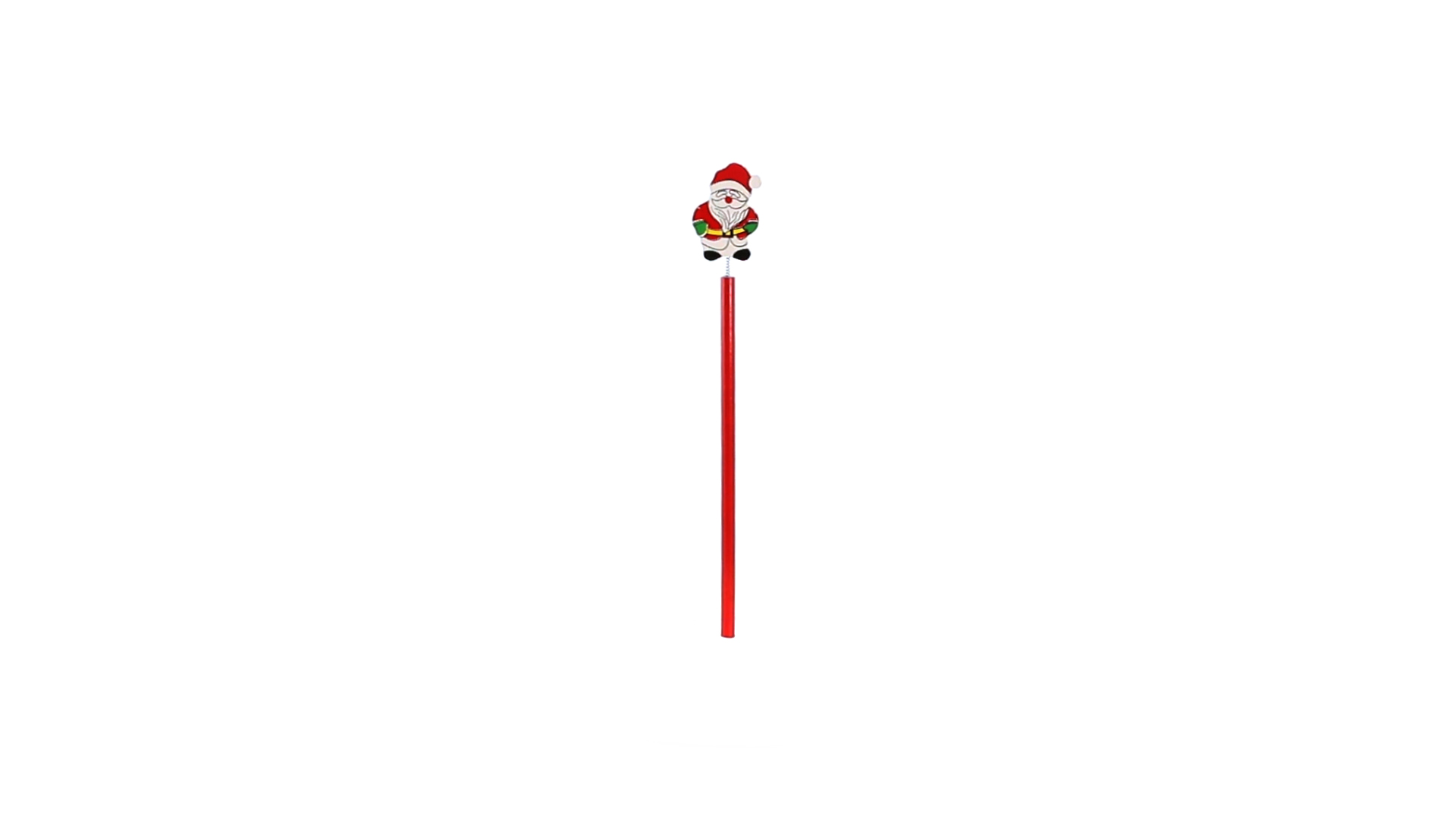 Origineller Holzbleistift mit Weihnachtsdesign in leuchtendem Rot und mit Weihnachtsfigur am oberen Ende. Ungeschliffene Spitze.