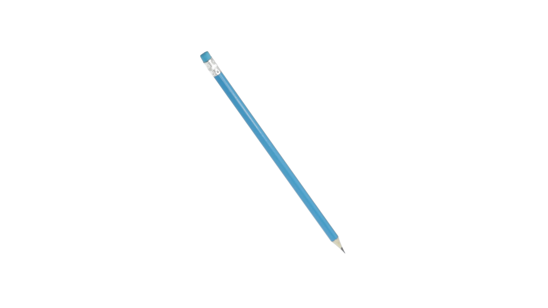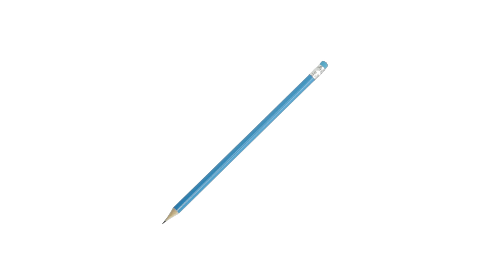 Holzstift mit glänzender Oberfläche. Mit rundem Griff und passendem Radiergummi. Erhältlich in einer Vielzahl von Farben. Schwarze Mine und scharfe Spitze.
