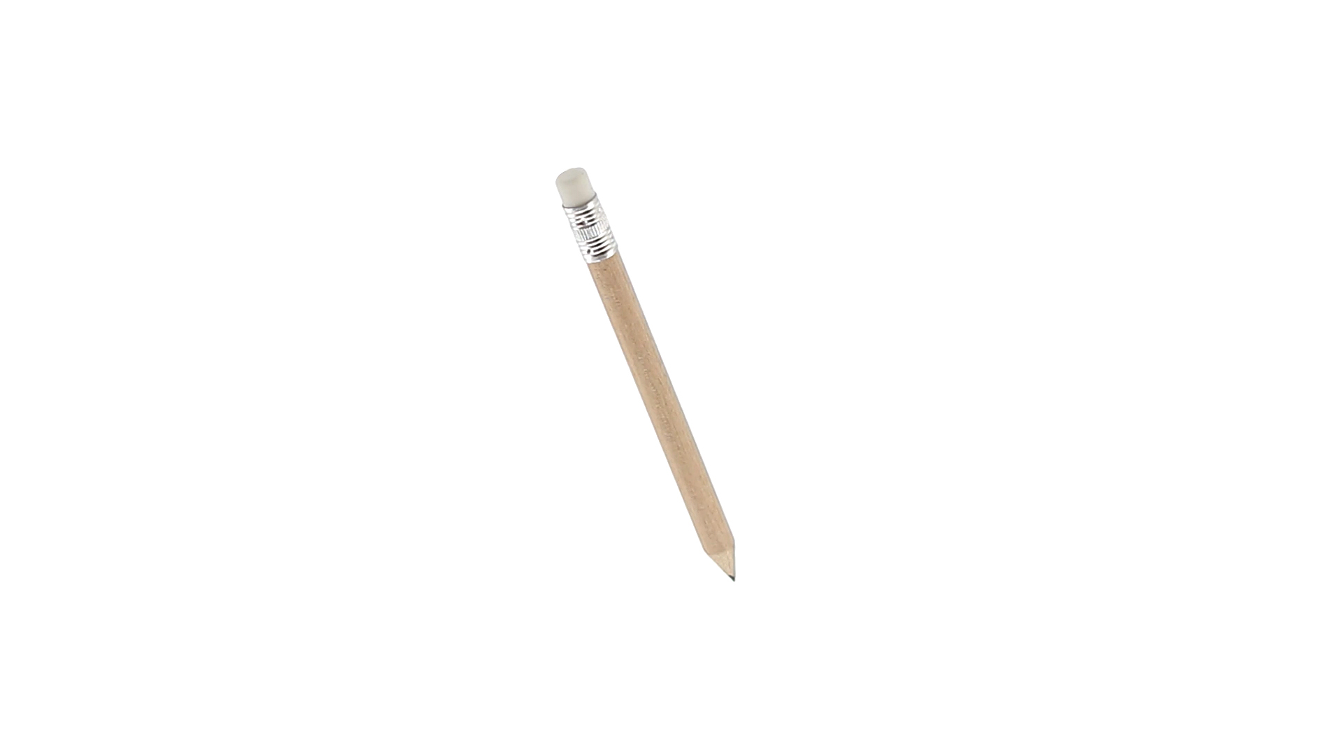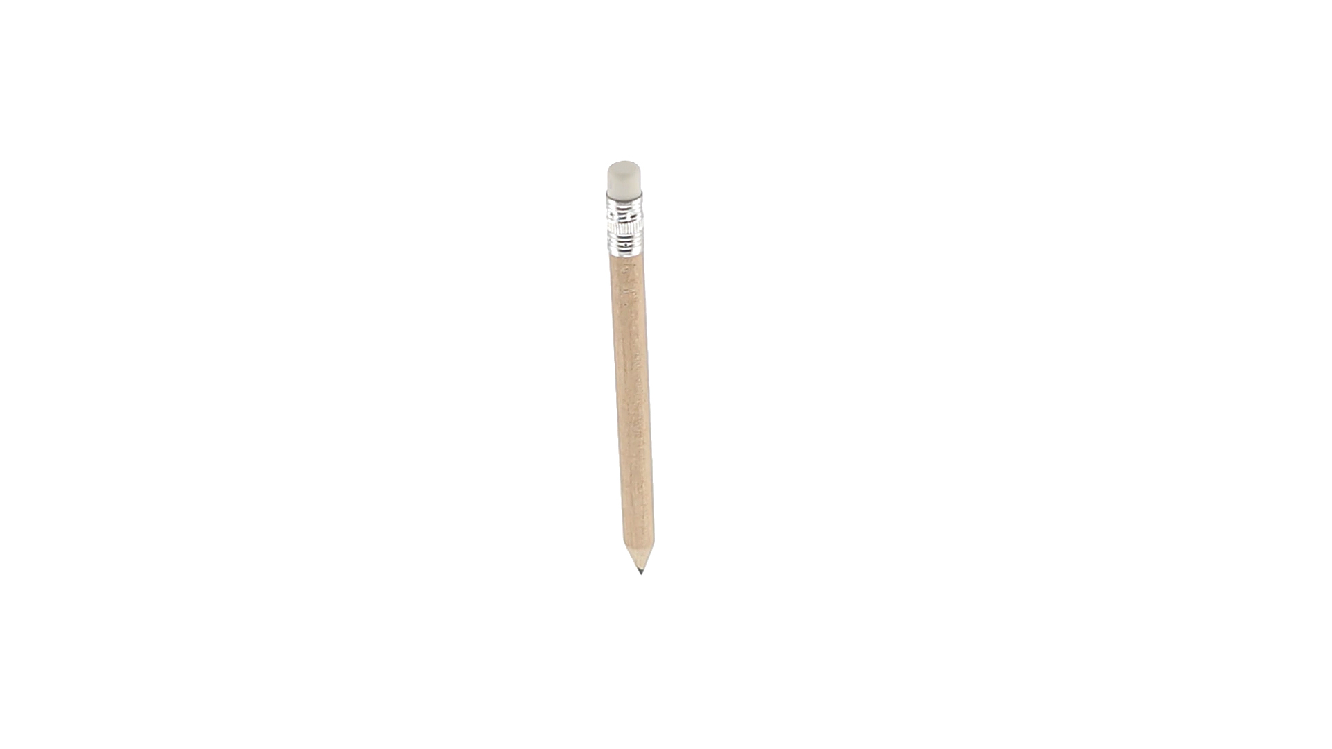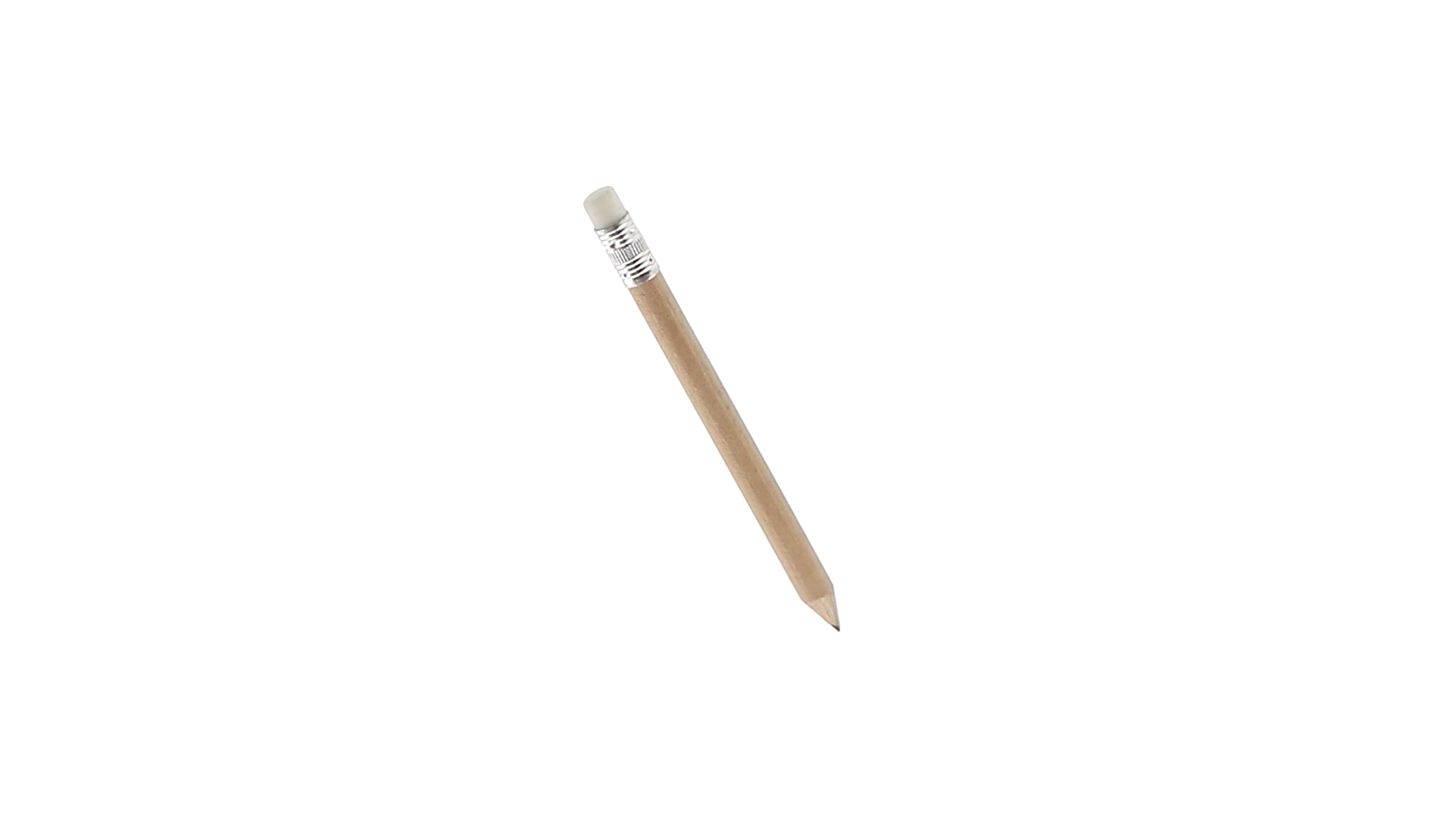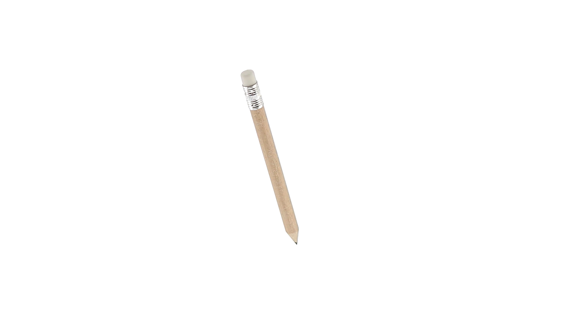 Mini-Holzbleistift mit Naturfinish. Mit rundem Schaft und weissem Radiergummi. Schwarze Mine und scharfe Spitze.