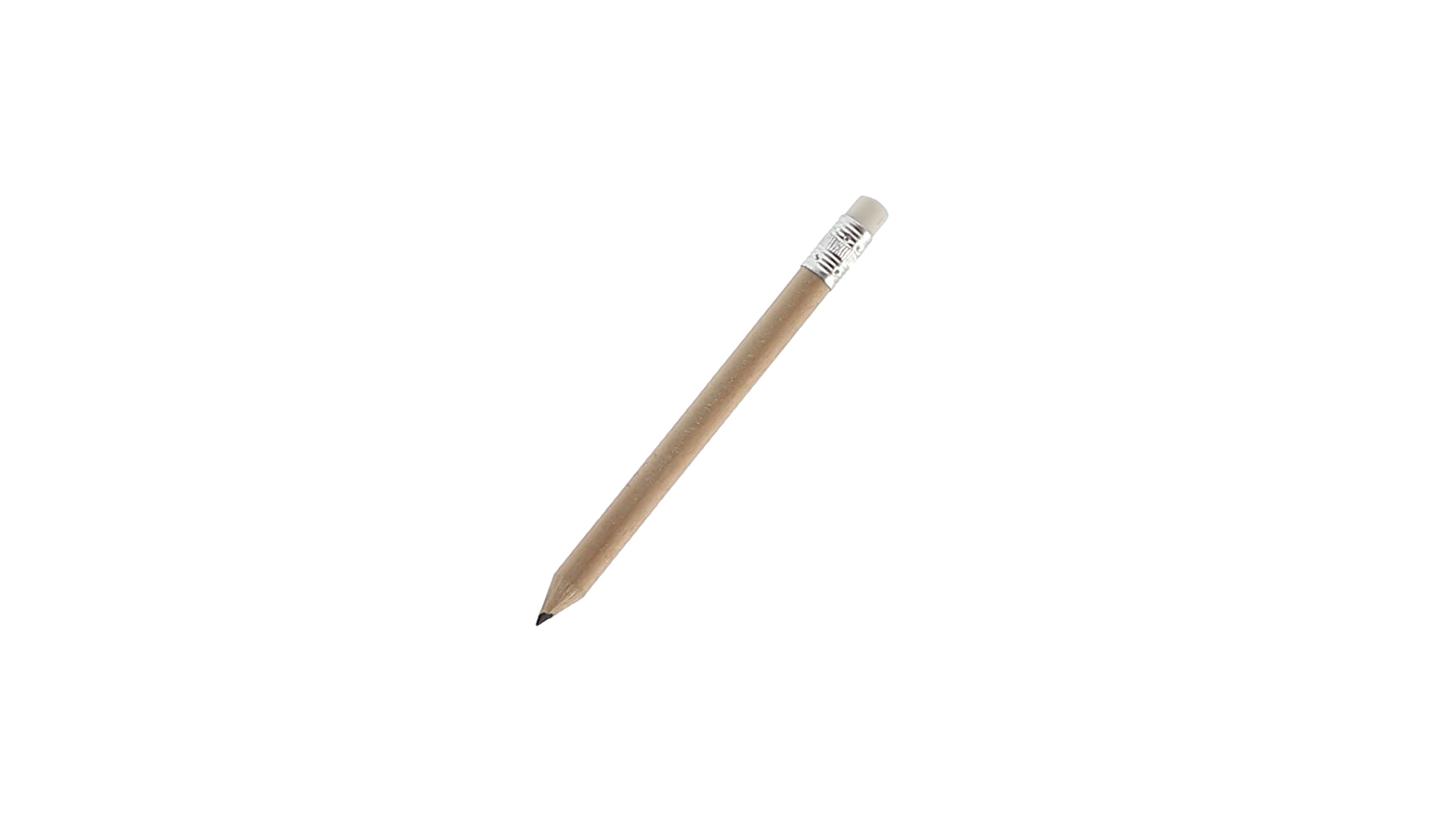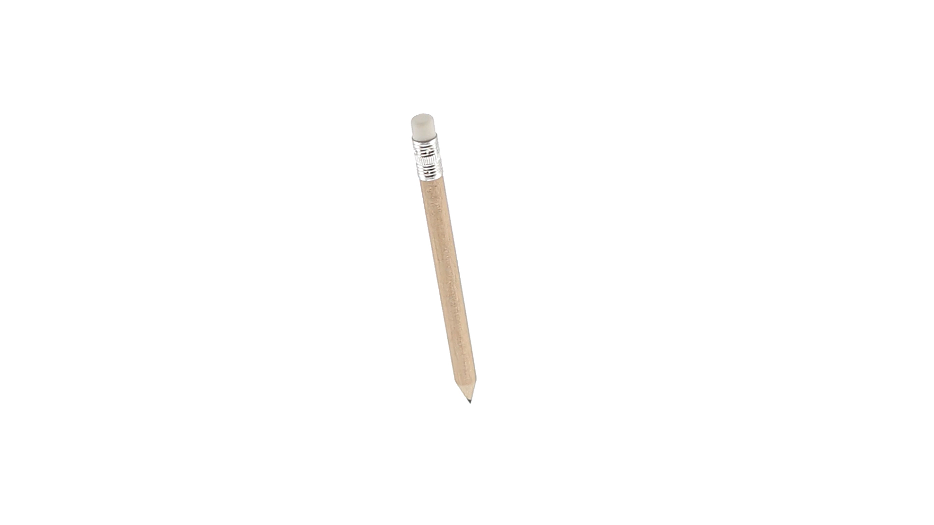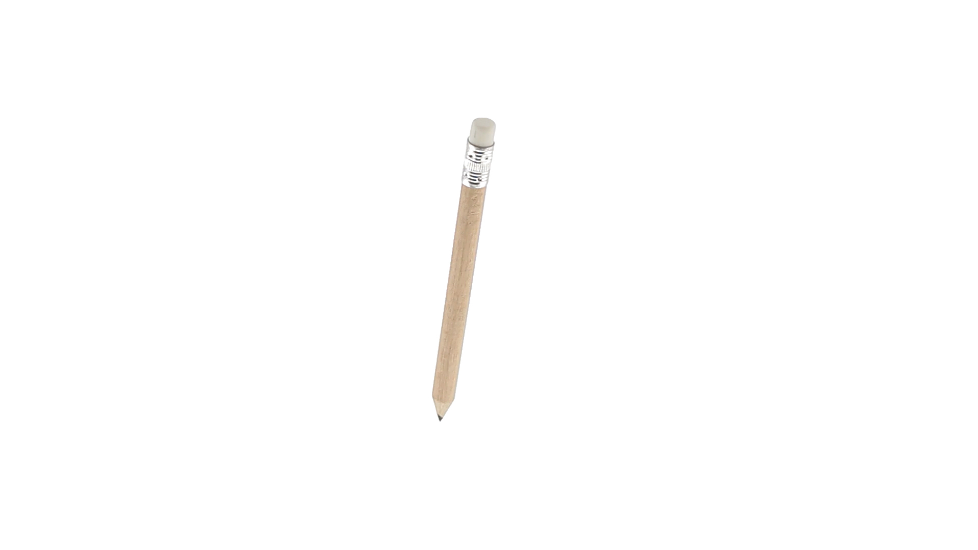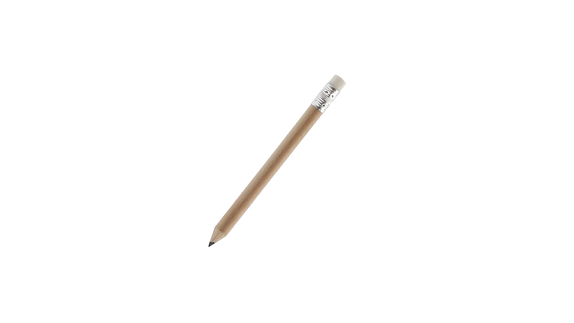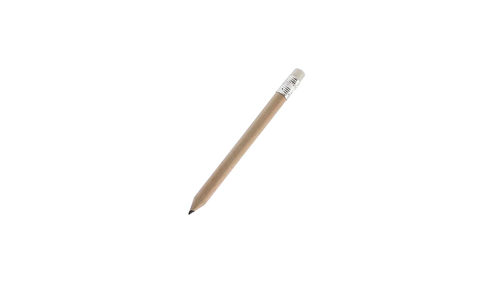 Mini-Holzbleistift mit Naturfinish. Mit rundem Schaft und weissem Radiergummi. Schwarze Mine und scharfe Spitze.