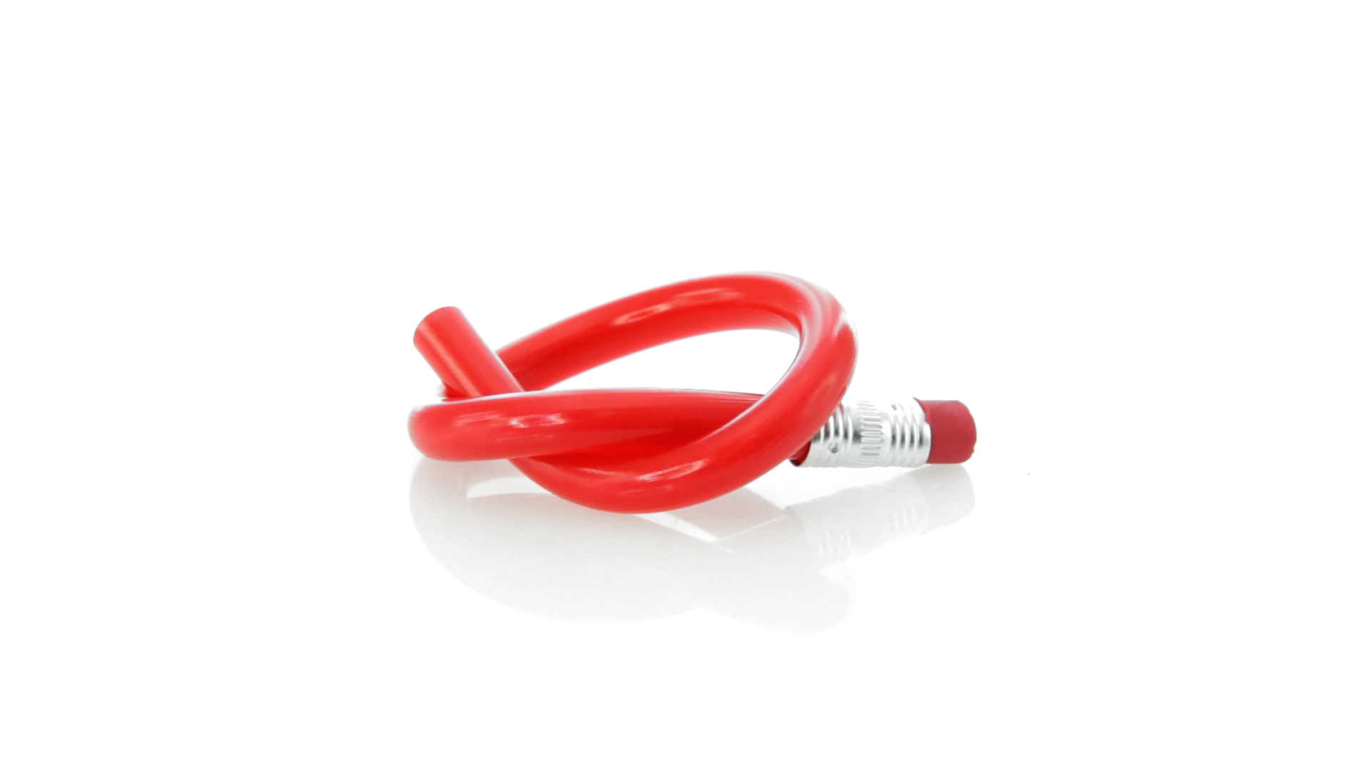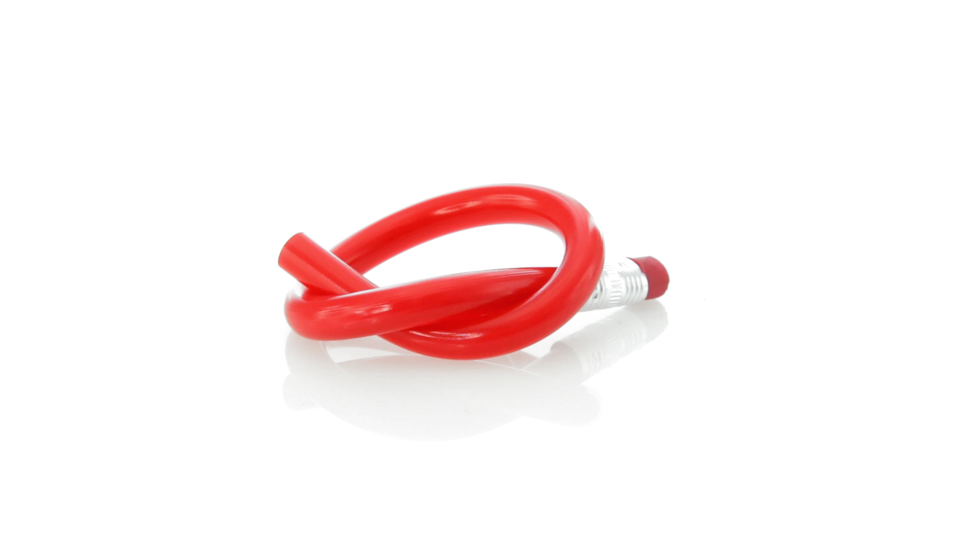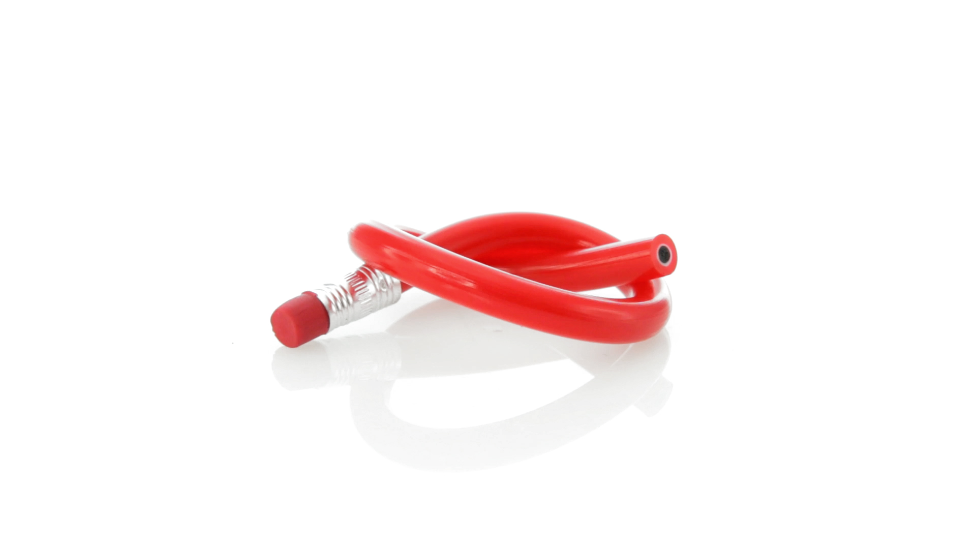 Flexibler Bleistift mit weichem PVC-Schaft in lebendigen Farben mit farblich passendem Radiergummi.