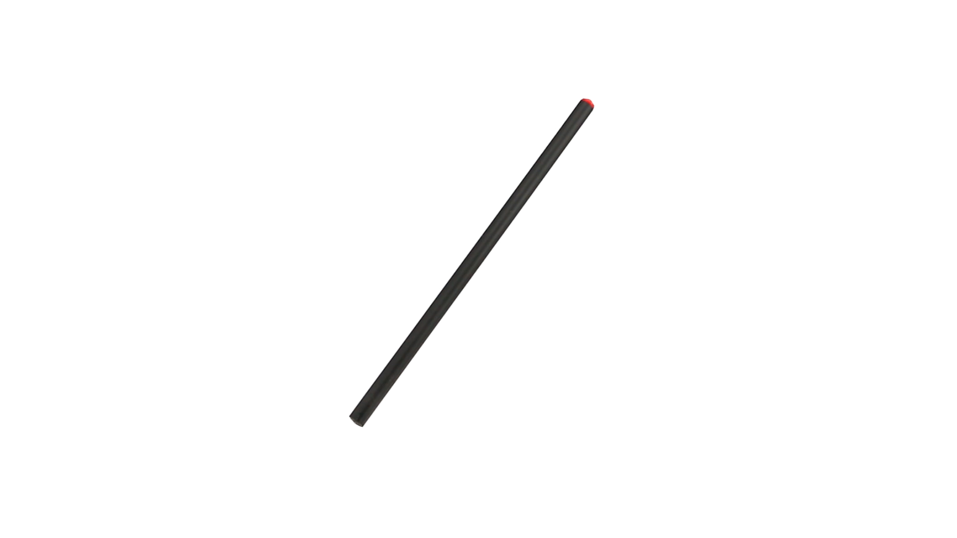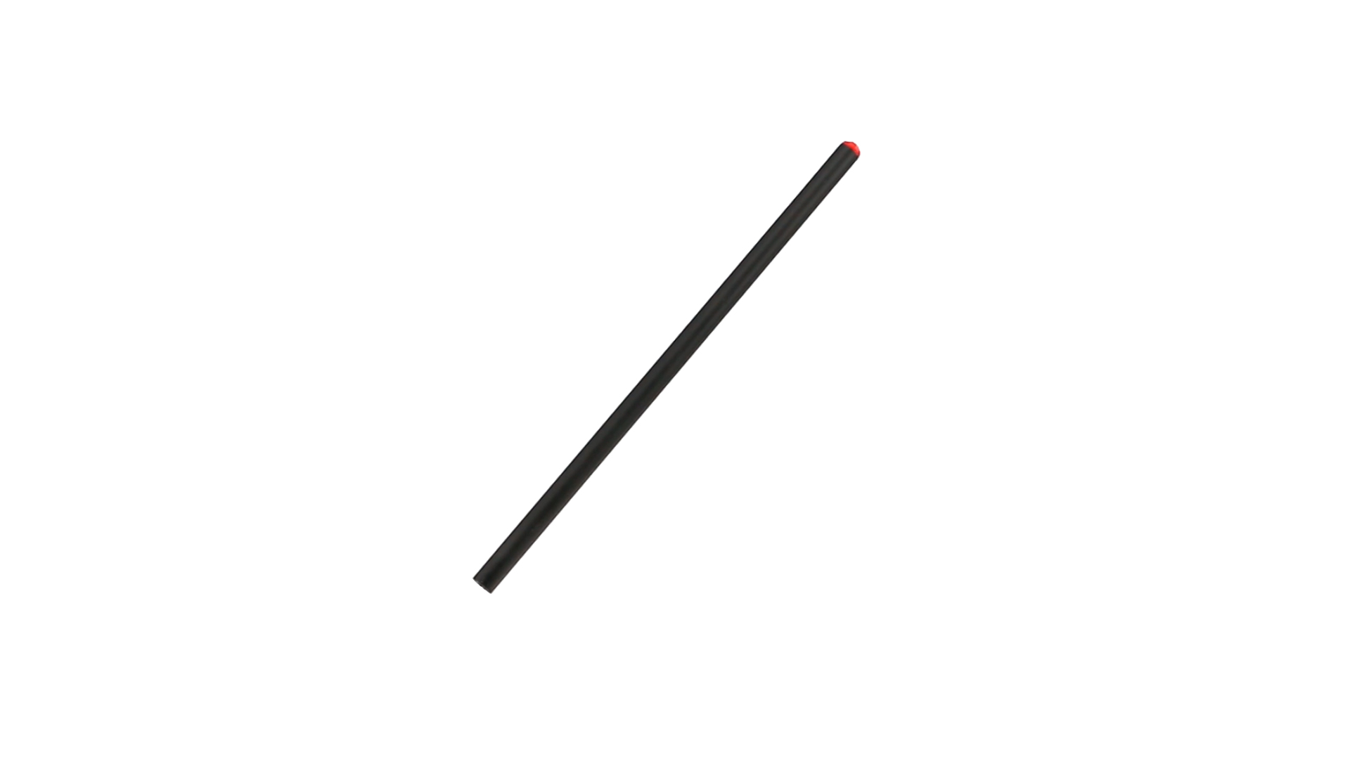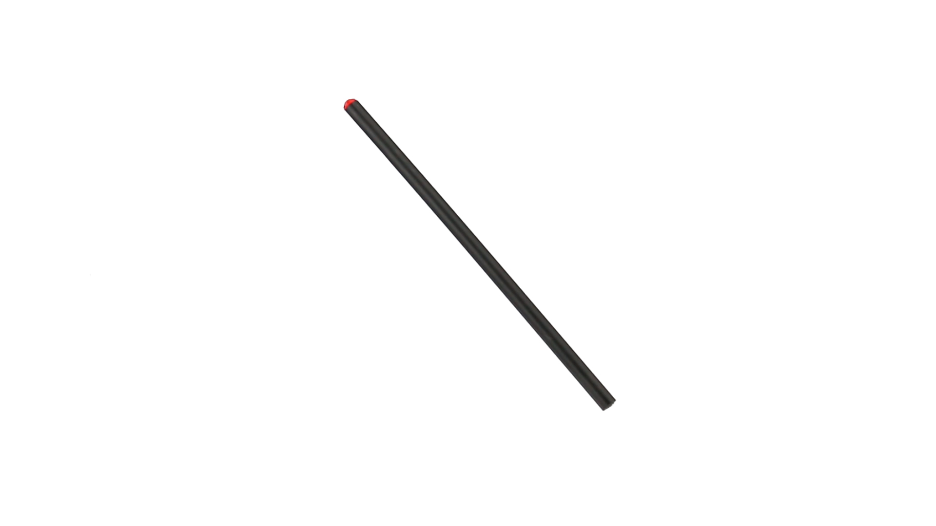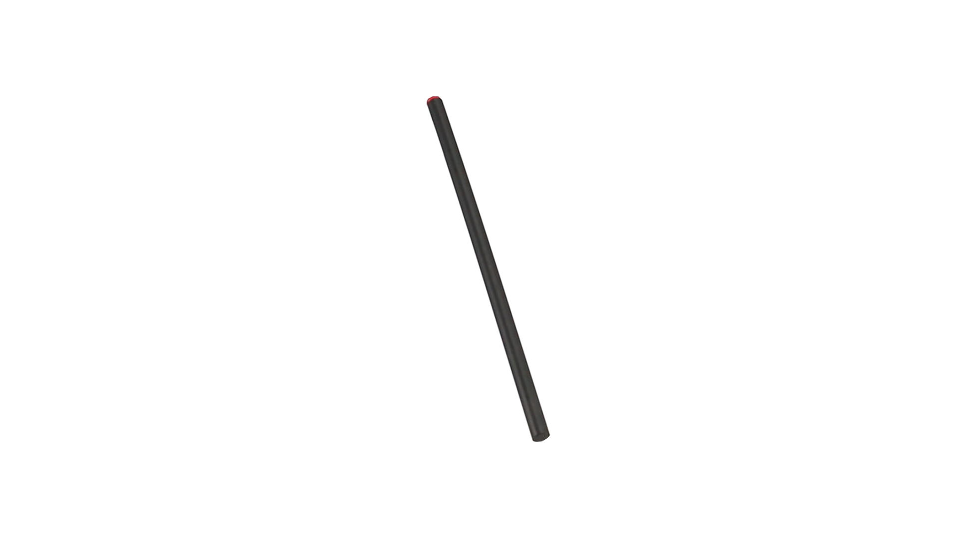 Eleganter schwarzer Holzstift mit passender Farbmine und bunten Accessoires. Ungeschliffene Spitze.