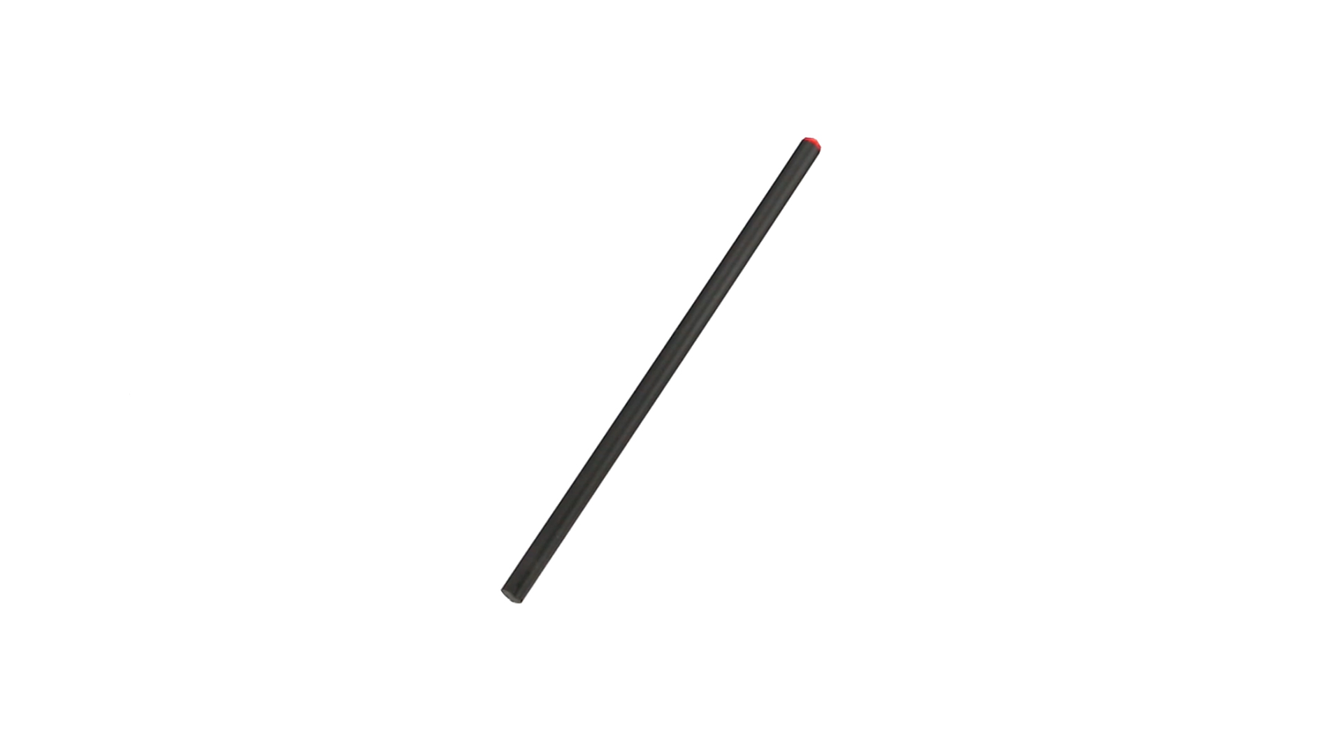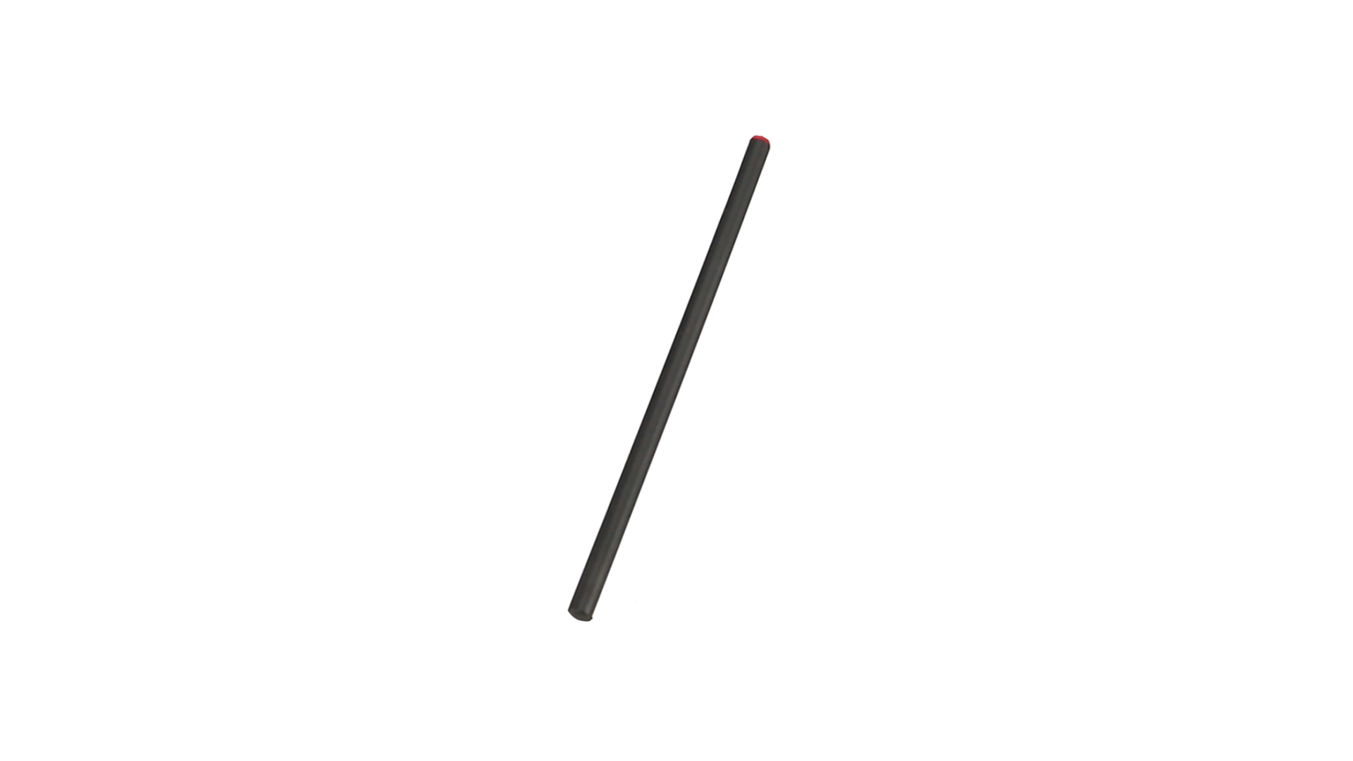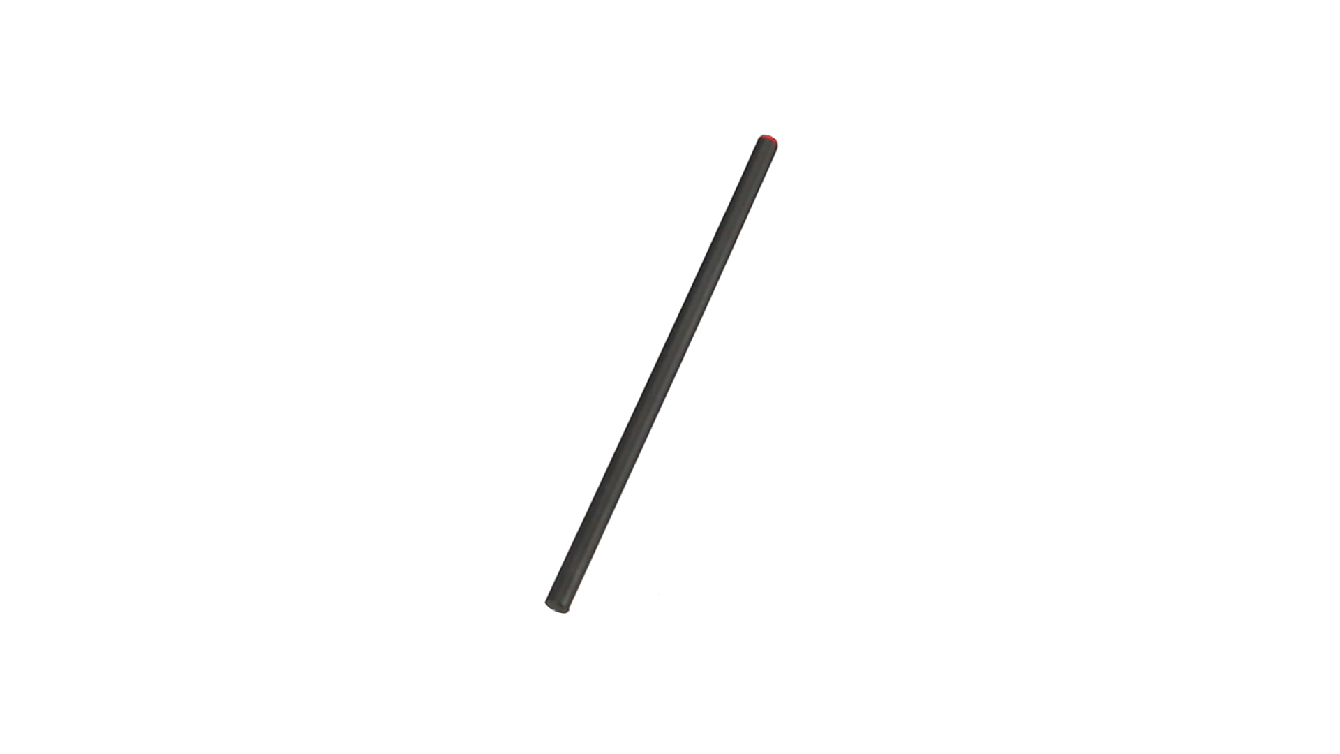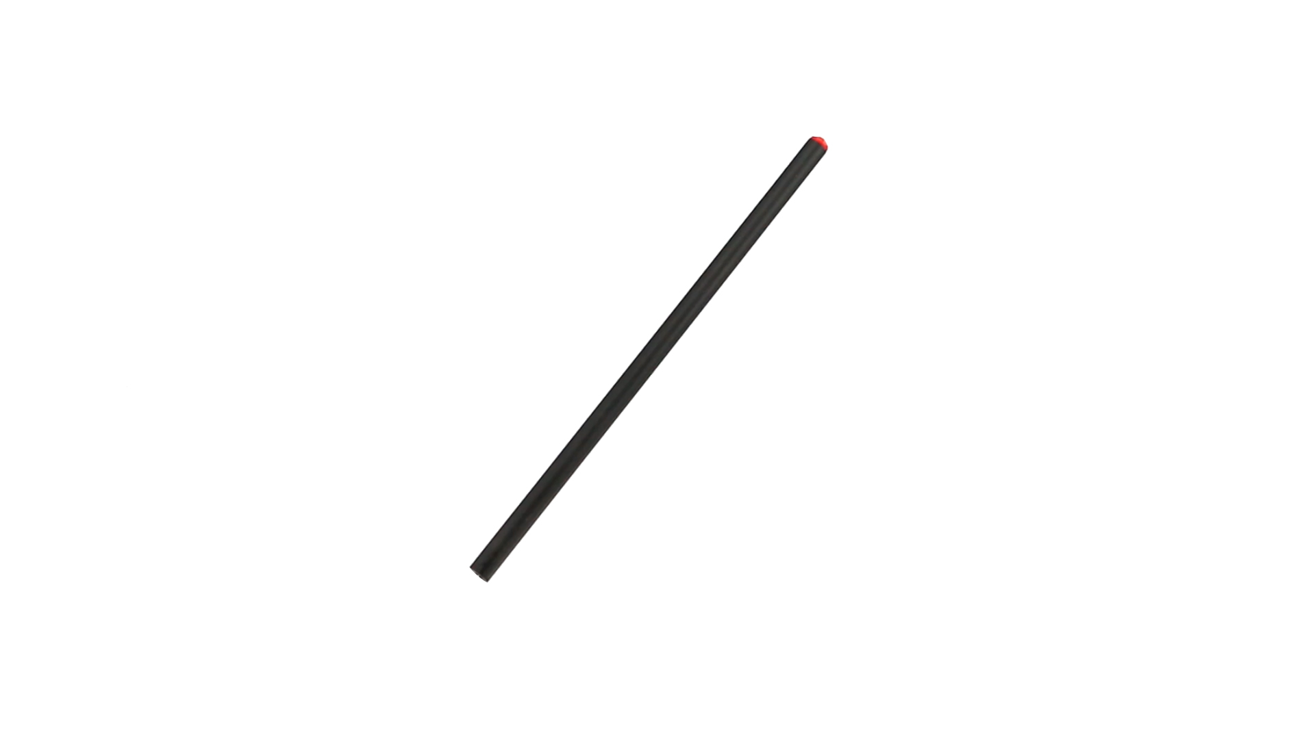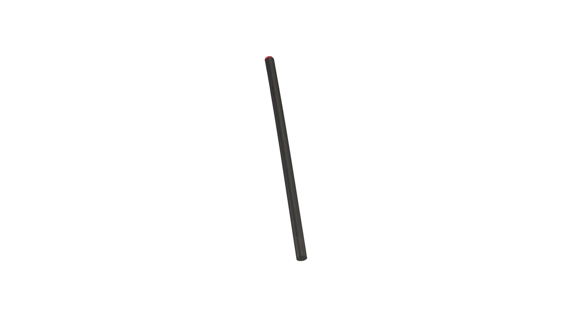 Eleganter schwarzer Holzstift mit passender Farbmine und bunten Accessoires. Ungeschliffene Spitze.