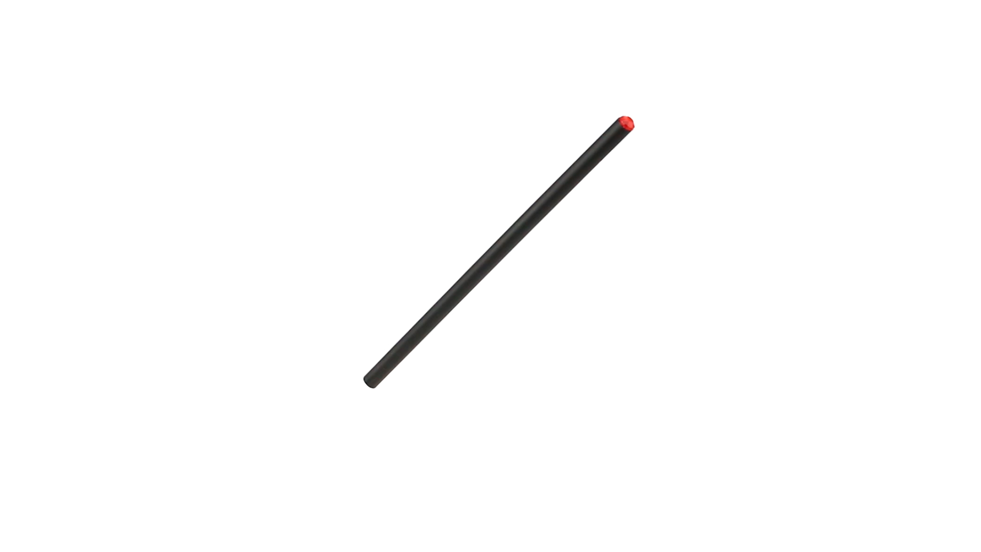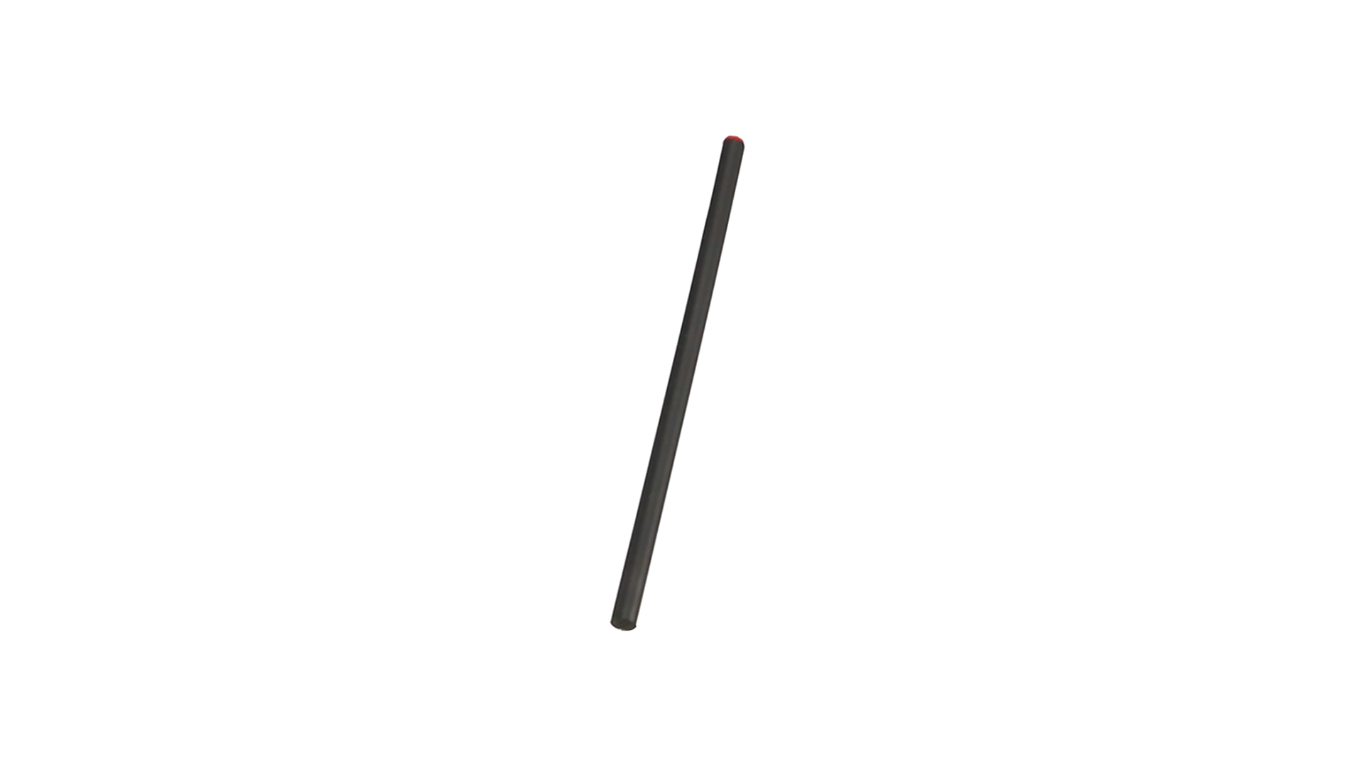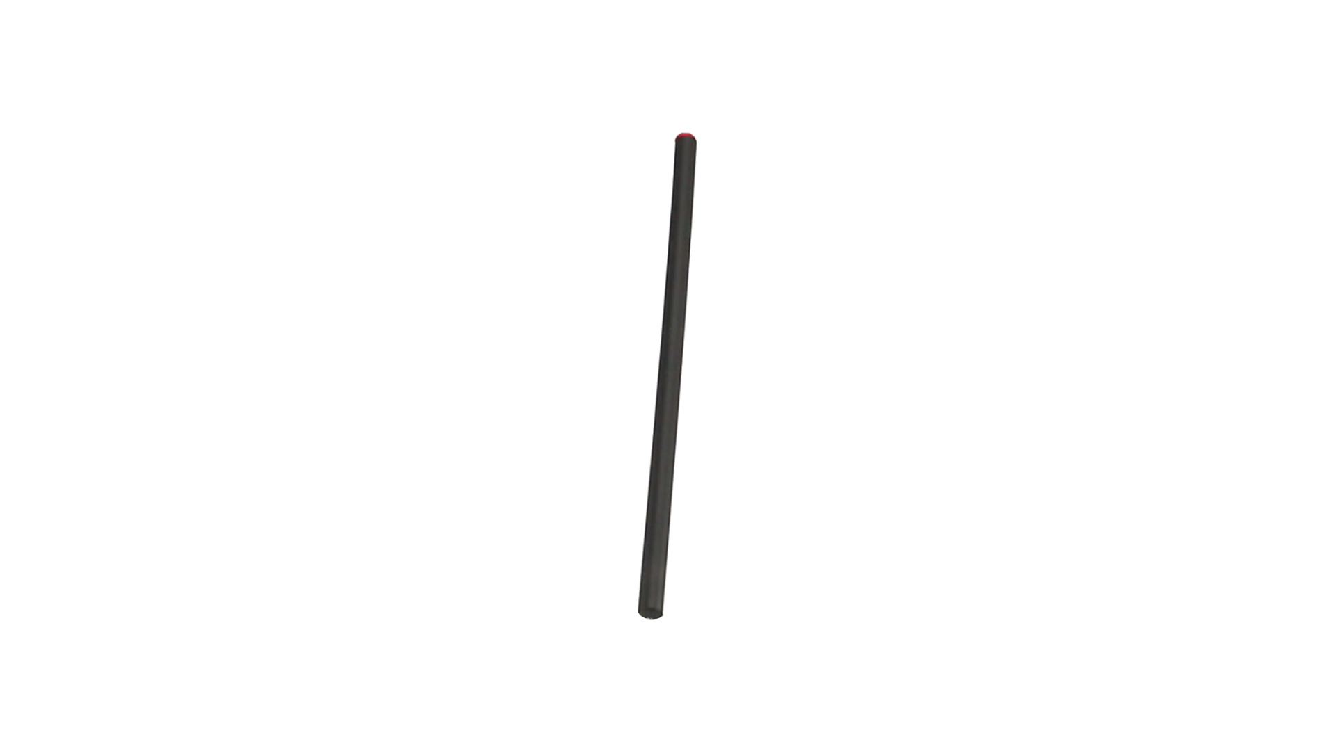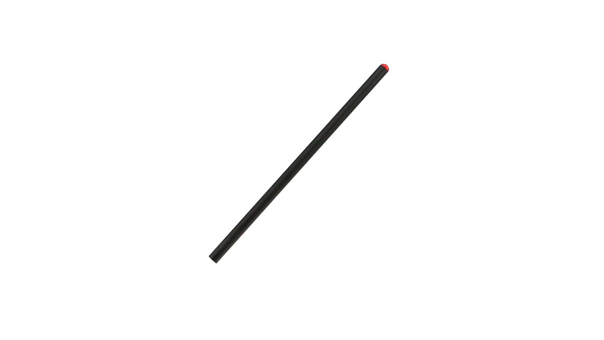 Eleganter schwarzer Holzstift mit passender Farbmine und bunten Accessoires. Ungeschliffene Spitze.