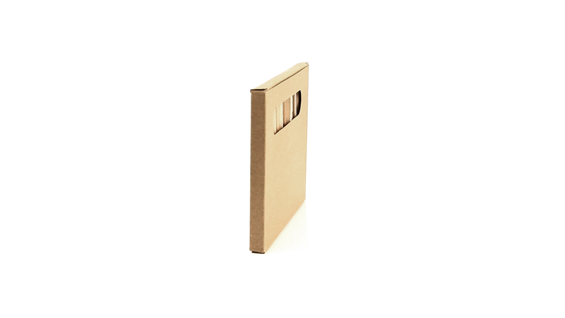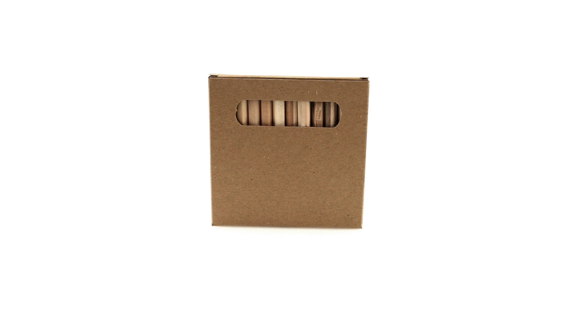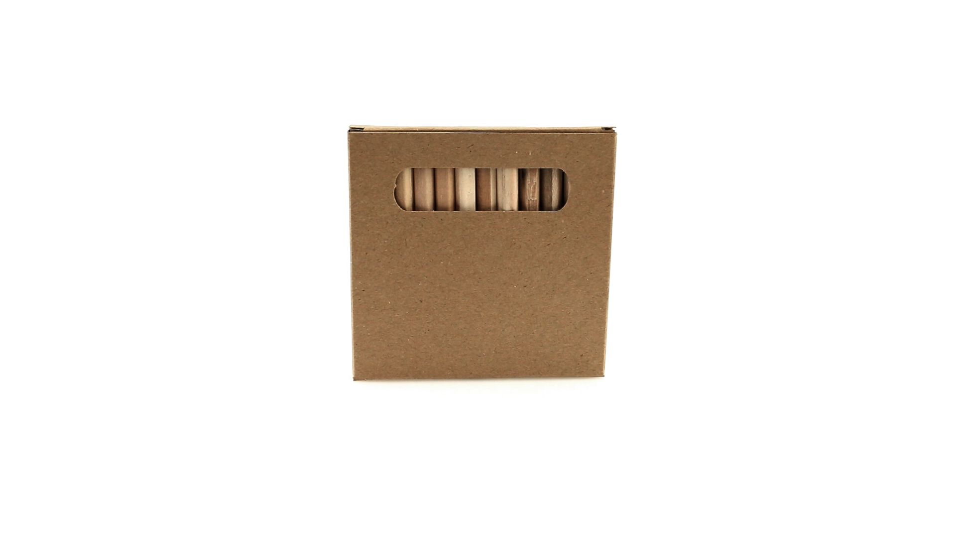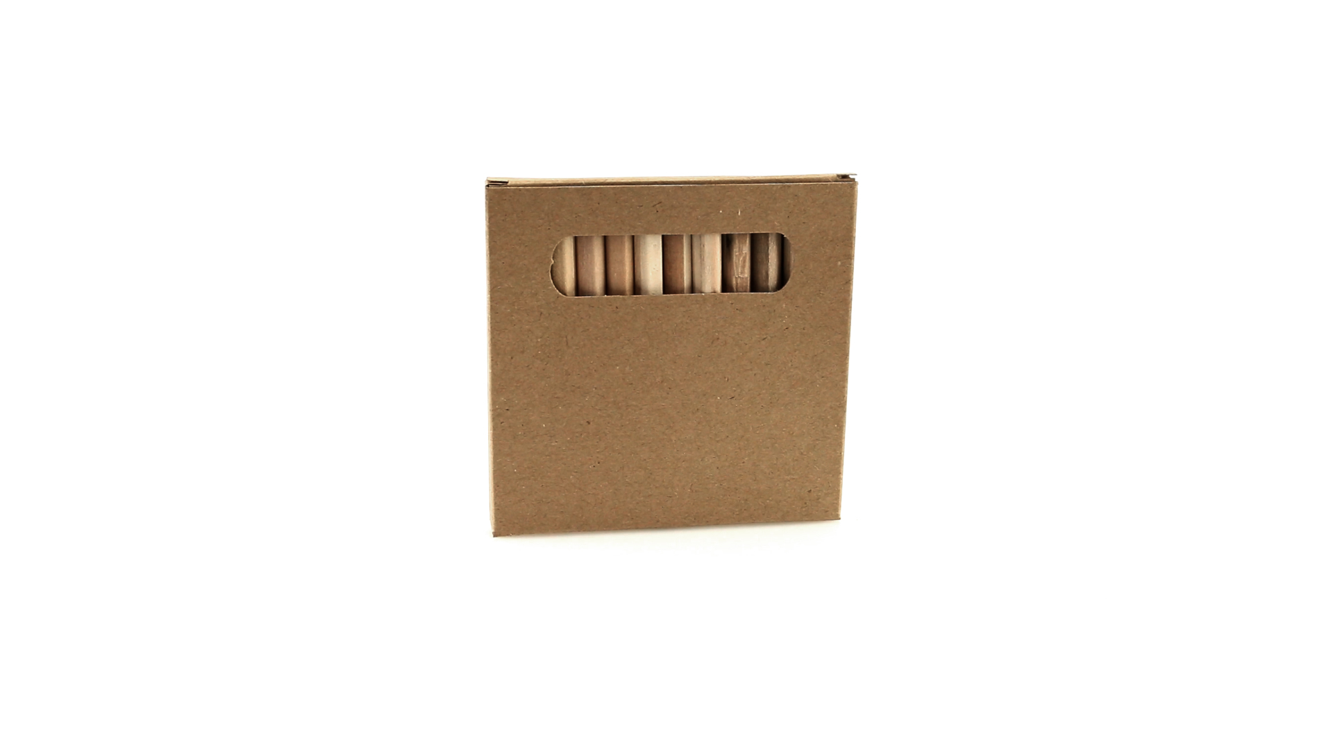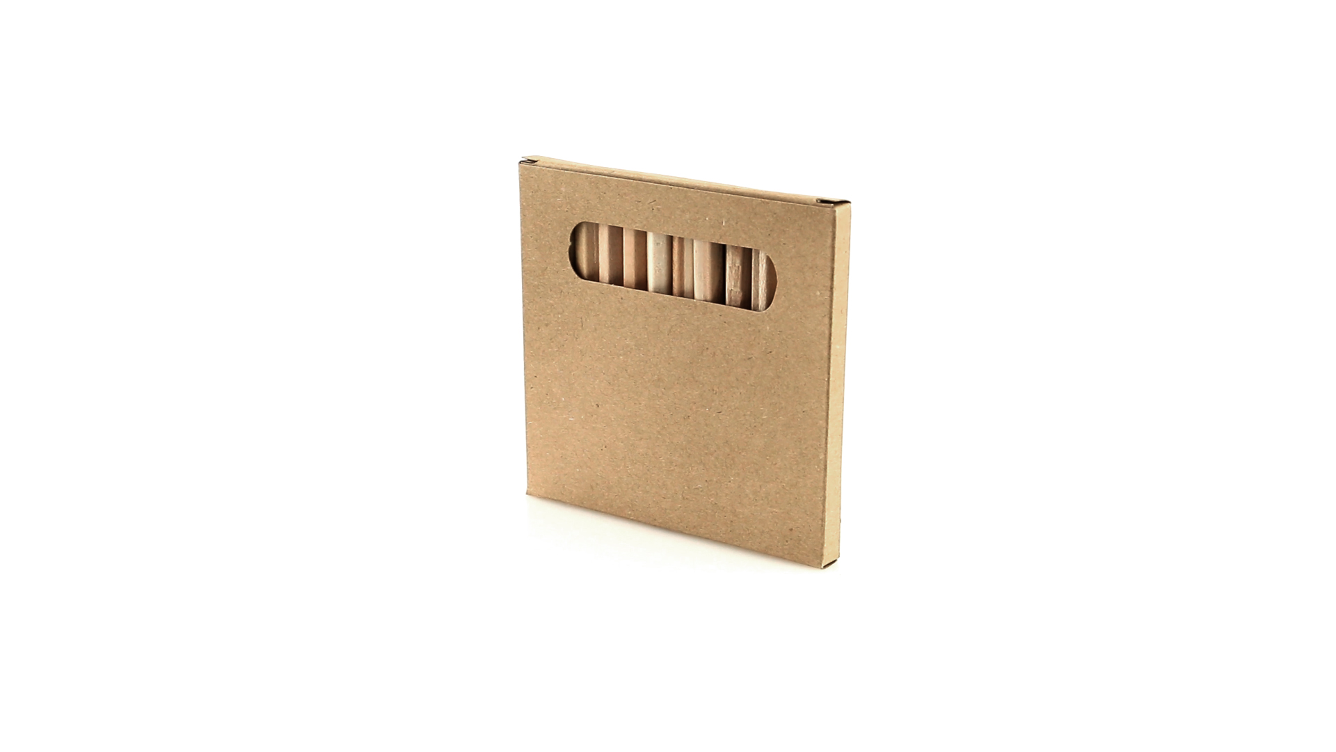 Set aus 12 Buntstiften in einer Schachtel aus Naturkarton mit Fenster. Mit sechseckigem Schaft in Naturfarbe und Minen in verschiedenen Farben.