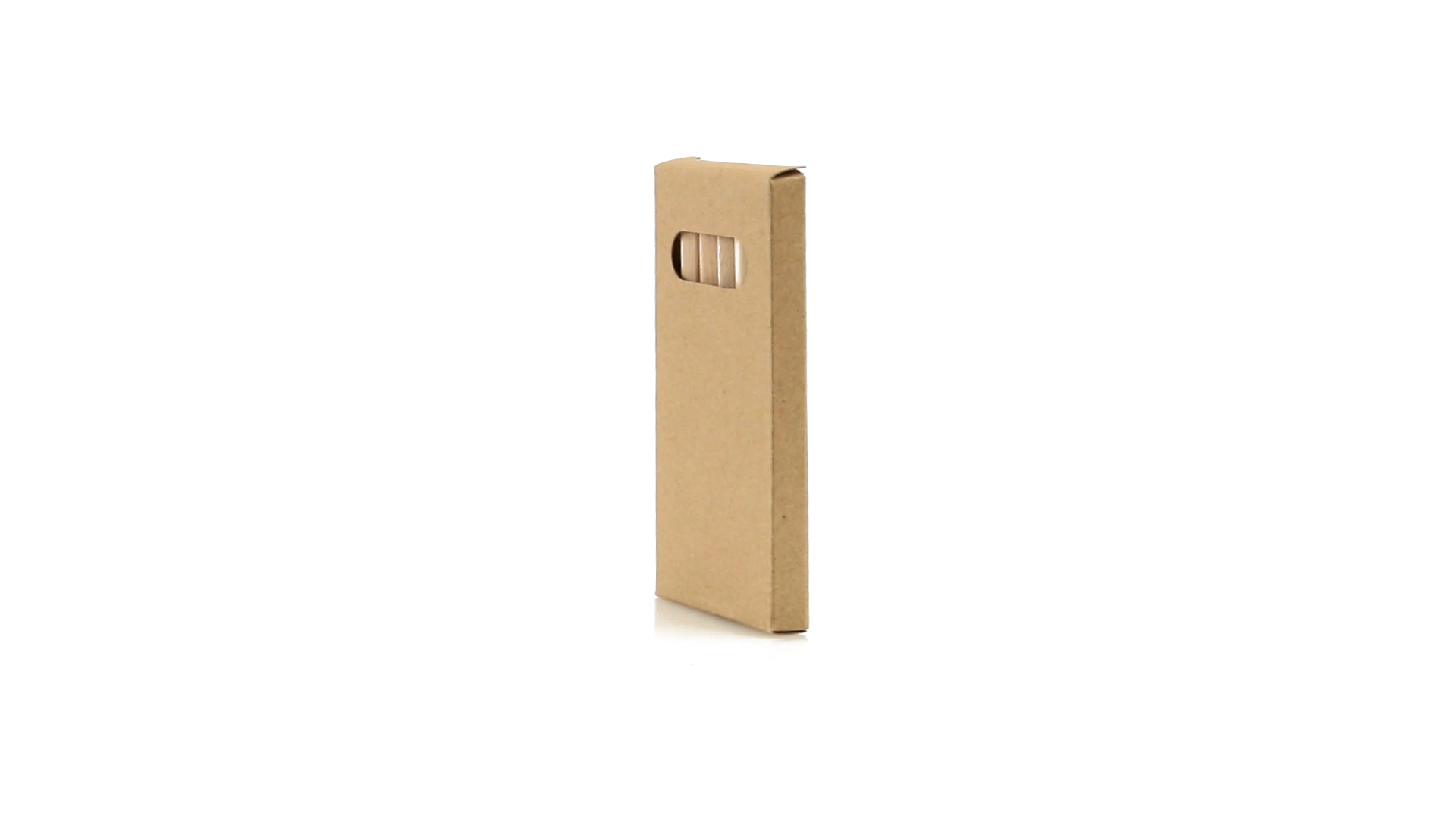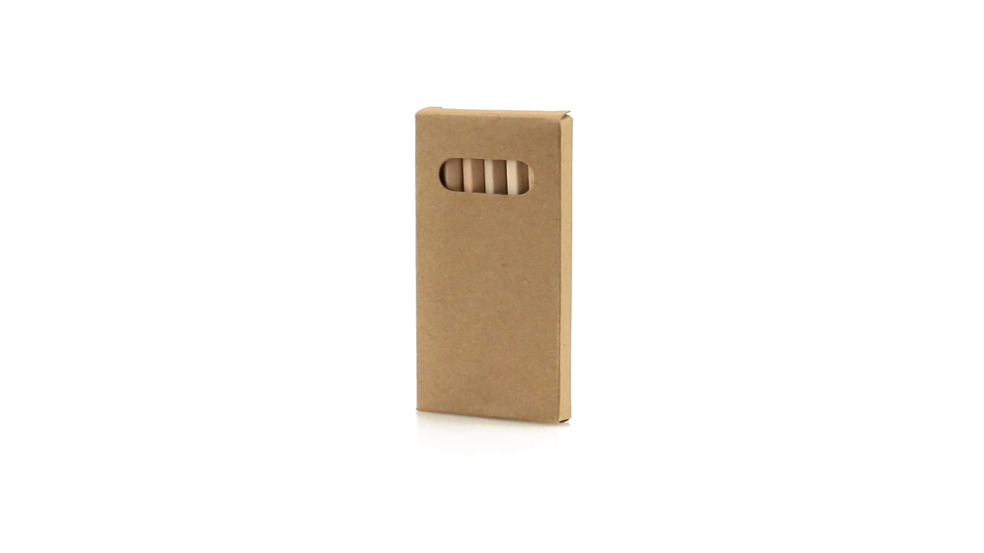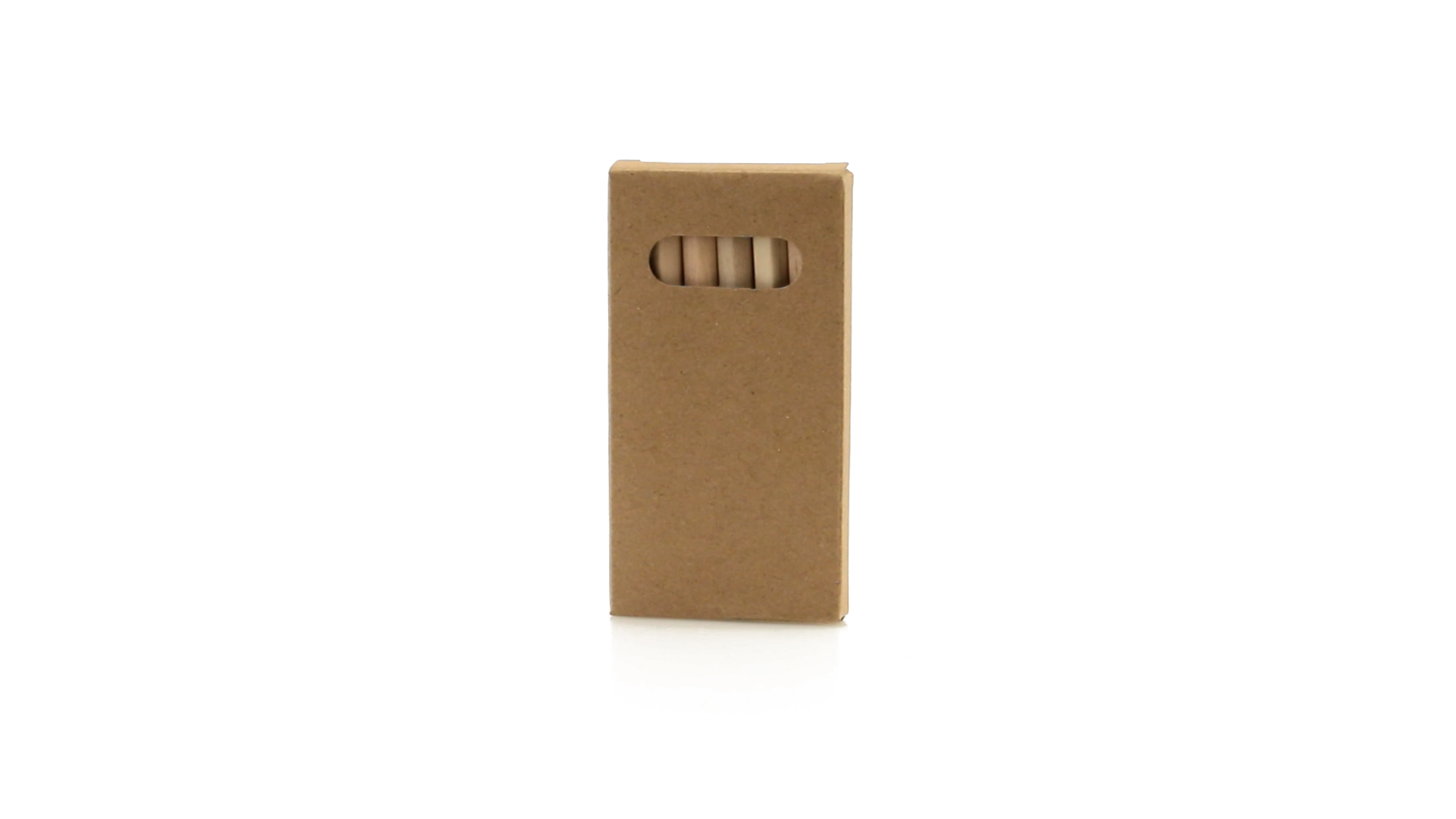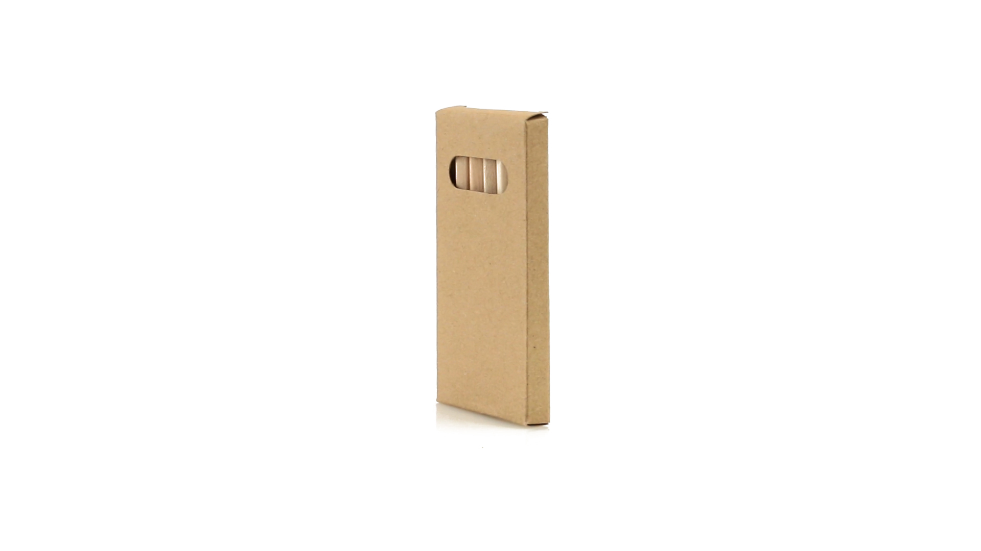 Set aus 6 Buntstiften in einer Schachtel aus Naturkarton mit Fenster. Mit sechseckigem Schaft in Naturfarbe und Minen in verschiedenen Farben.