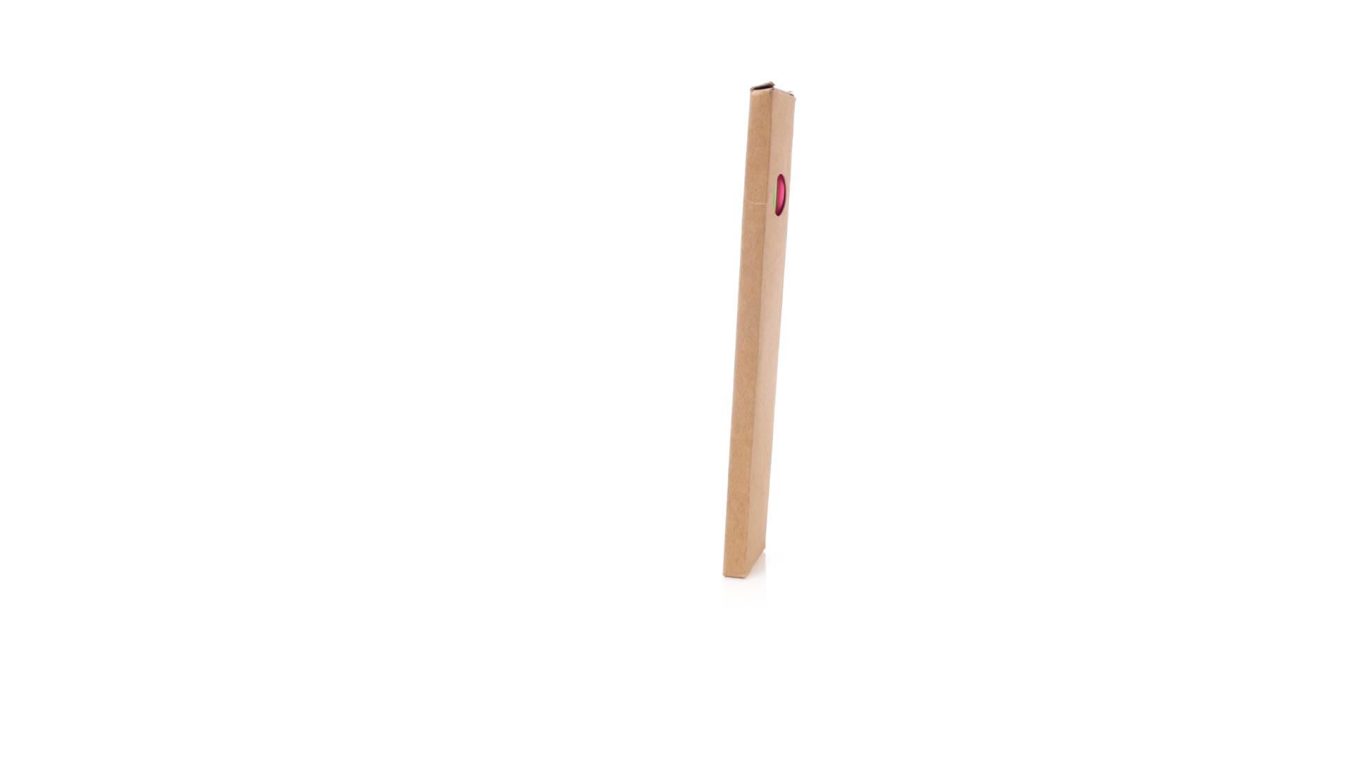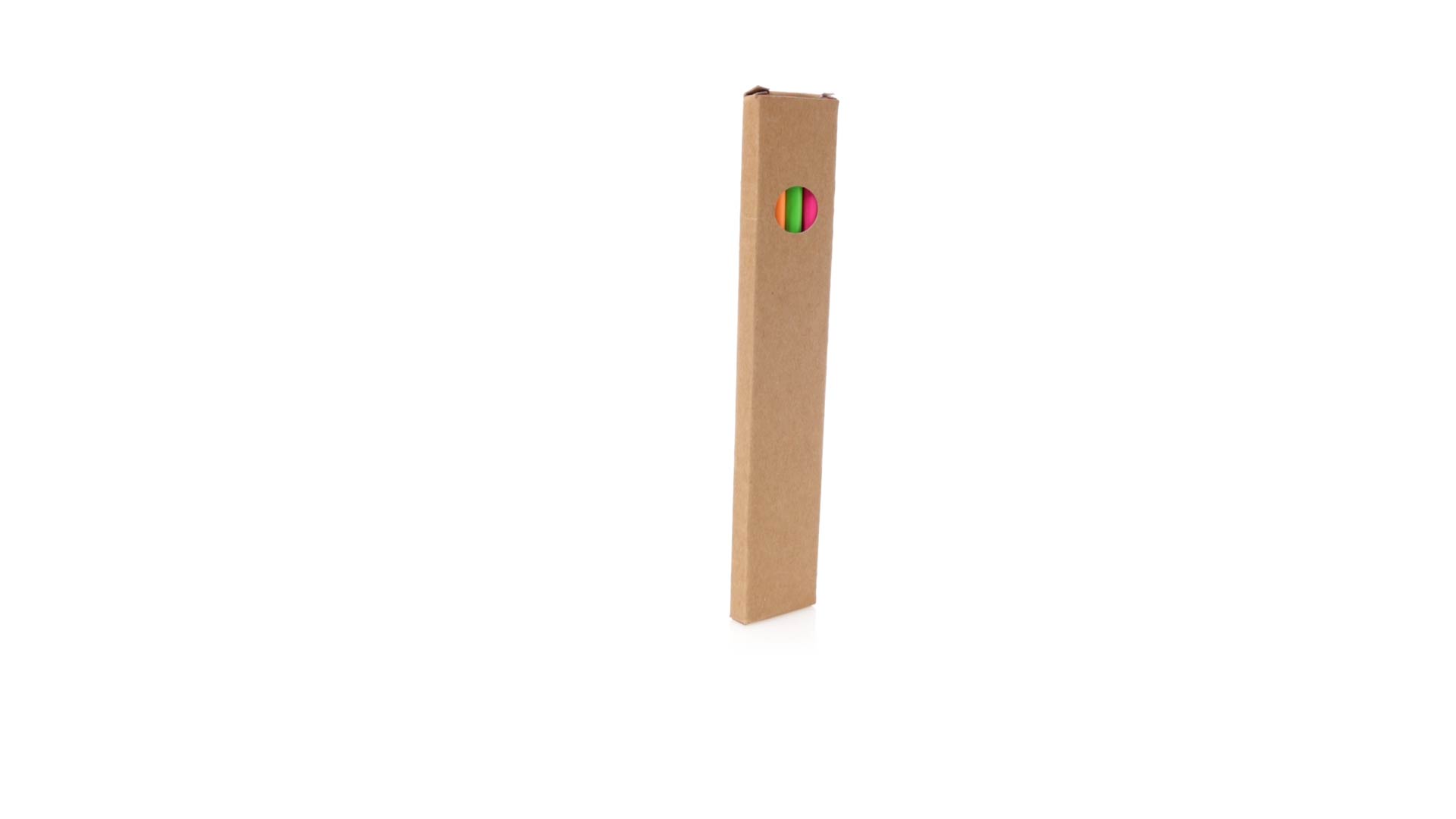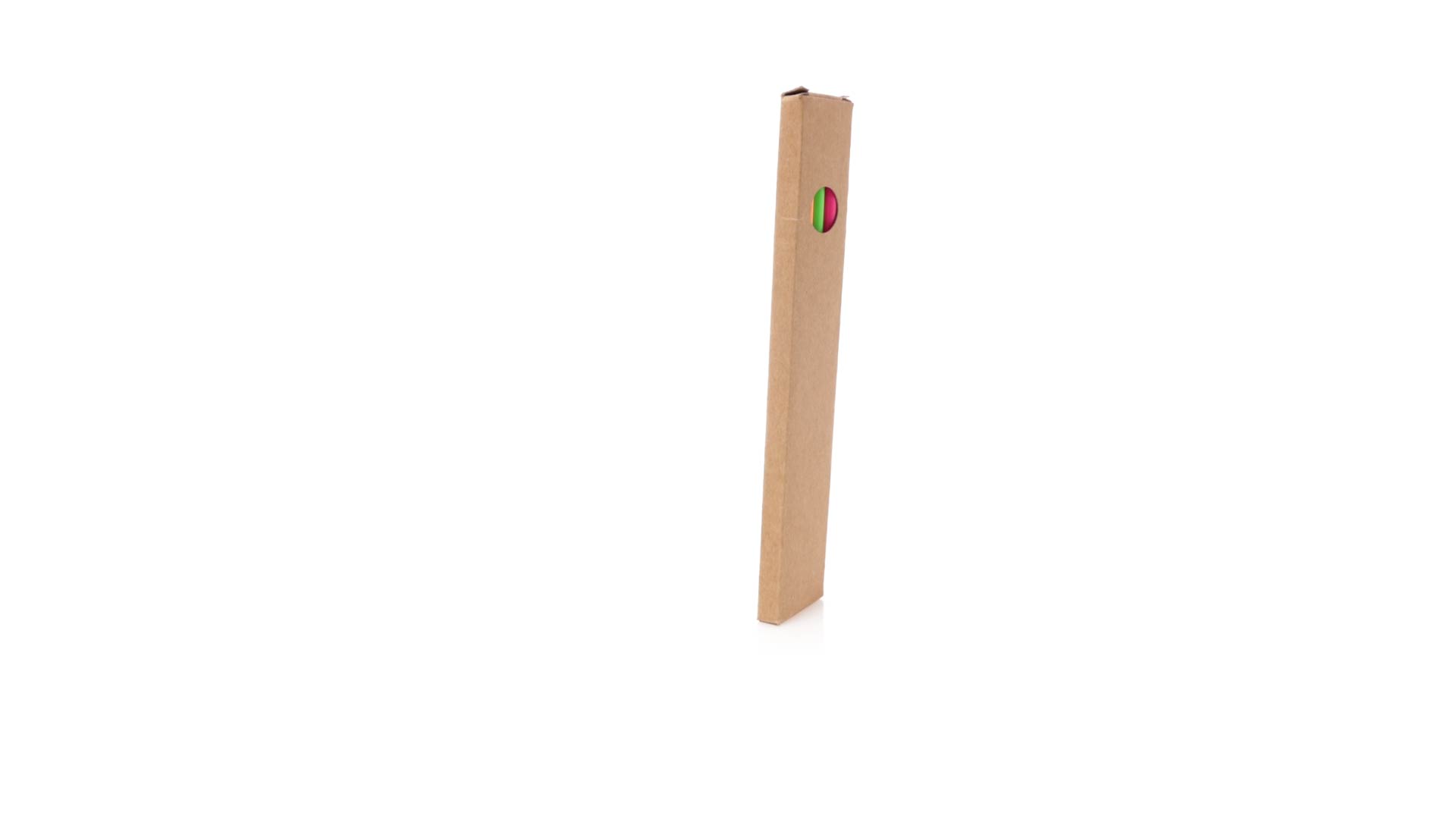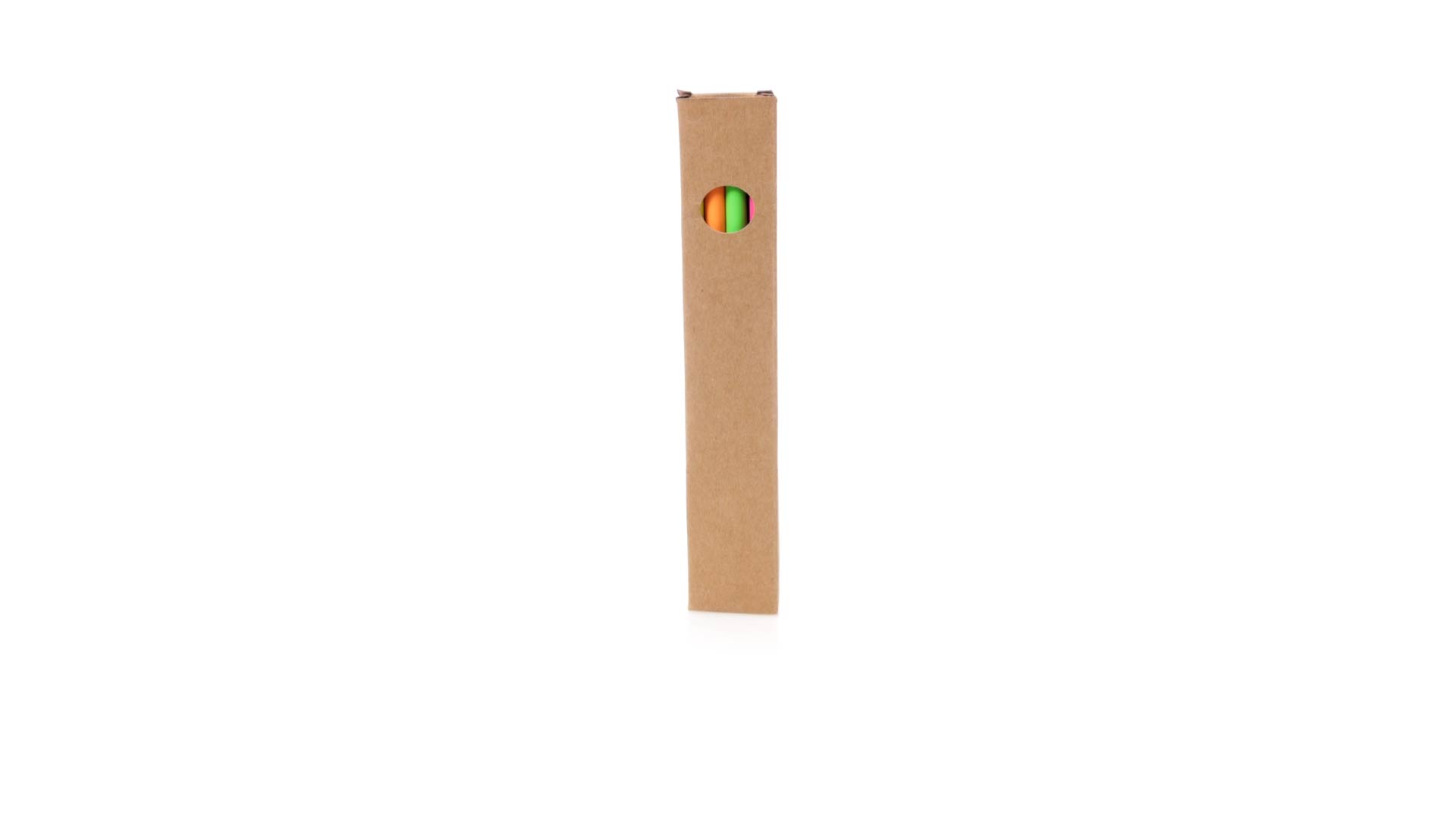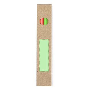 Set mit 4 Bleistiften in einer Schachtel aus recyceltem Karton mit Fenster. Holzstifte mit zylindrischem Körper in verschiedenen fluoreszierenden Farben und Minen in lustigen Farben.