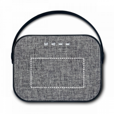 Tragbarer Lautsprecher mit schlichtem Design, gummierter Oberfläche und Stoff-Frontgitter. Ausgestattet mit einem Tragegriff zum einfachen Aufhängen oder Mitnehmen sowie rutschfesten Silikonfüssen. Die zwei integrierten Lautsprecher sorgen für einen klareren und intensiveren Klang.Material: ABS, StoffKabellose Übertragung: BT v4'2Kapazität: 1'200 mAhUngefähre Akkulaufzeit: 4 Std.Ungefähre Ladezeit: 5 Std.Eingänge: microUSB-C (5 W), microSD, 3.5 mmLautsprecher: Frequenzbereich: 100 Hz – 20 kHzSignal-Rausch-Verhältnis: > 80 dB– Empfindlichkeit: 80 ±3 dBImpedanz: 4 ΩLautsprecher-Durchmesser: Ø 40 mmAusgangsleistung: 6 W (2 x 3 W)Mikrofon: Empfindlichkeit: -38 ±3 dBV/PaFunktionen: Freisprechfunktion, FM-RadioLieferumfang: USB-A-/microUSB-Kabel, 3.5 mm-AudiokabelVerpackung: Schwarze GeschenkschachtelAbmessungen: 160 x 120 x 50 mm | Schachtel: 180 x 180 x 66 mm