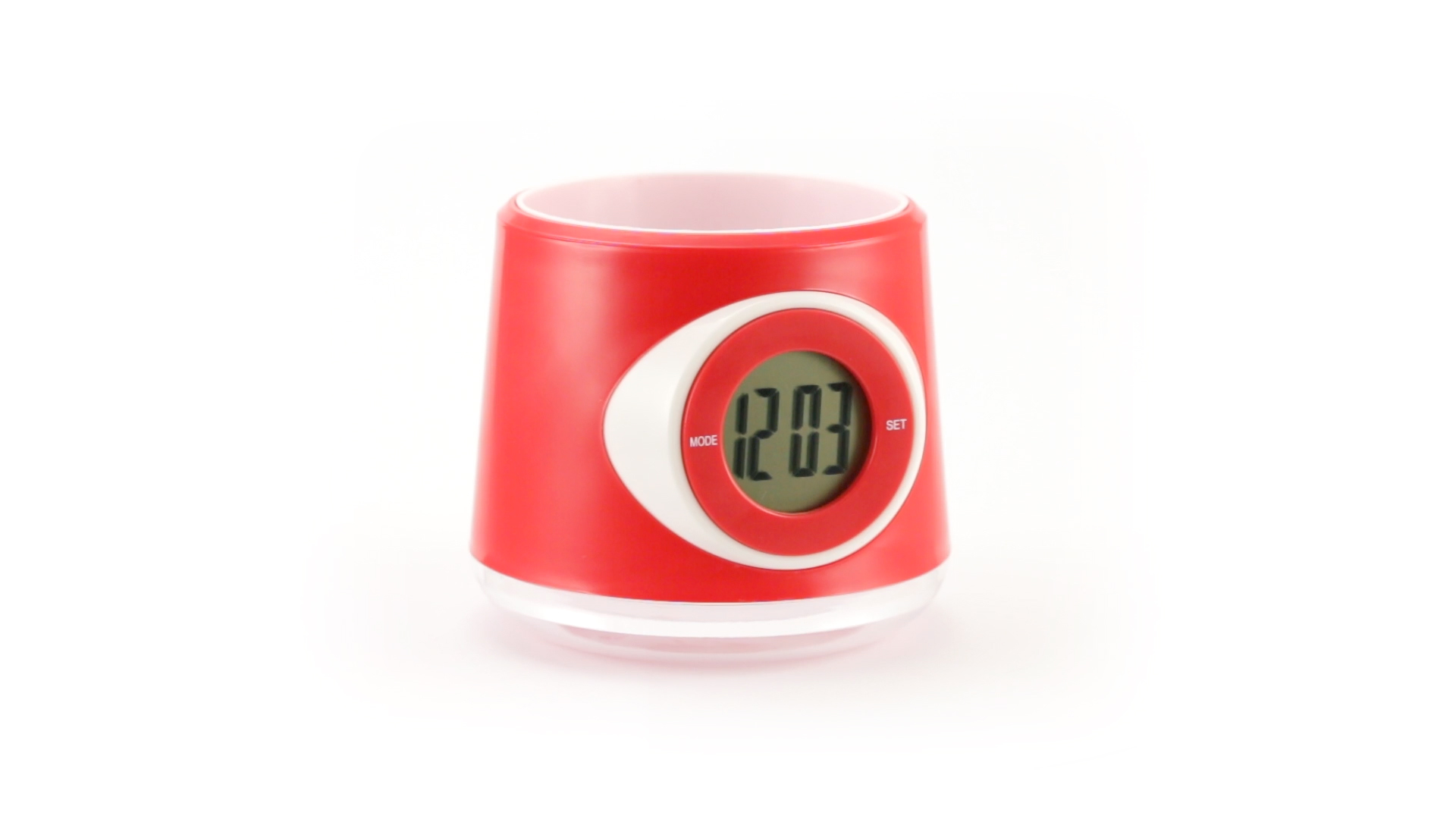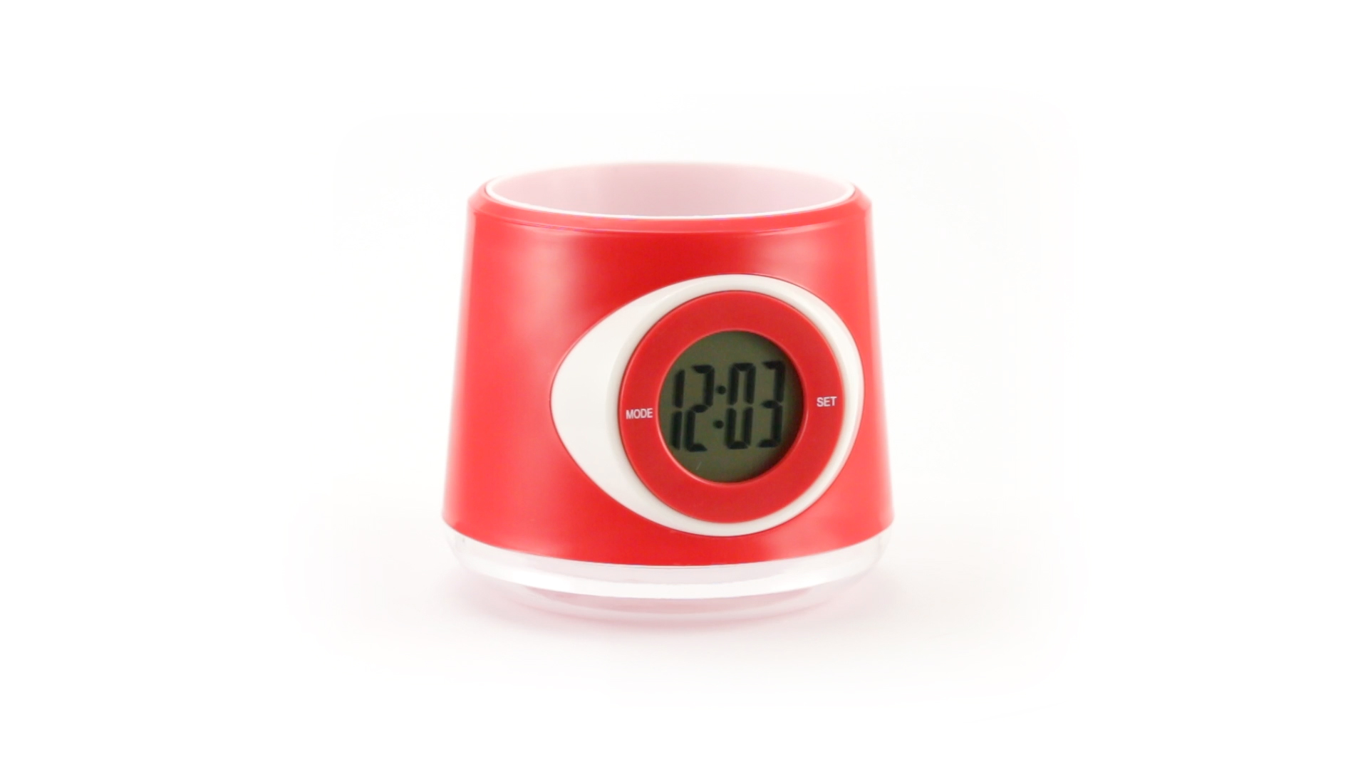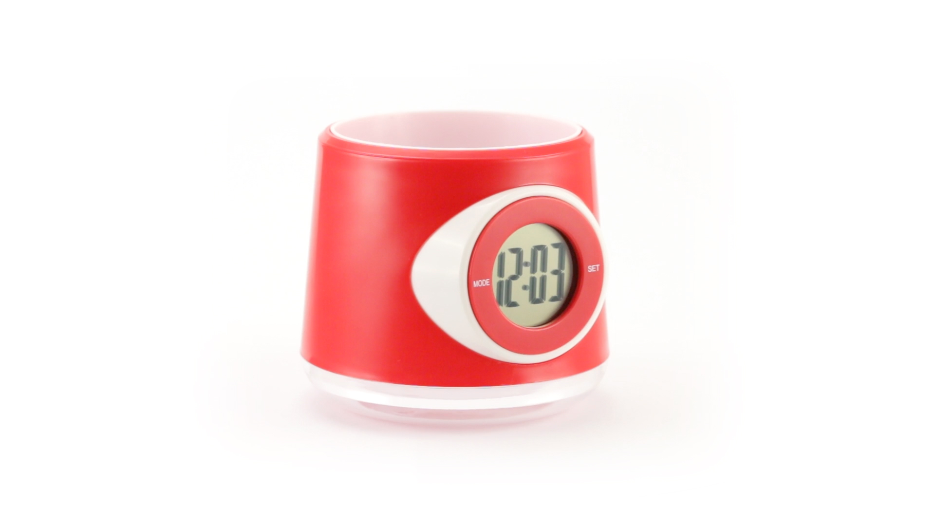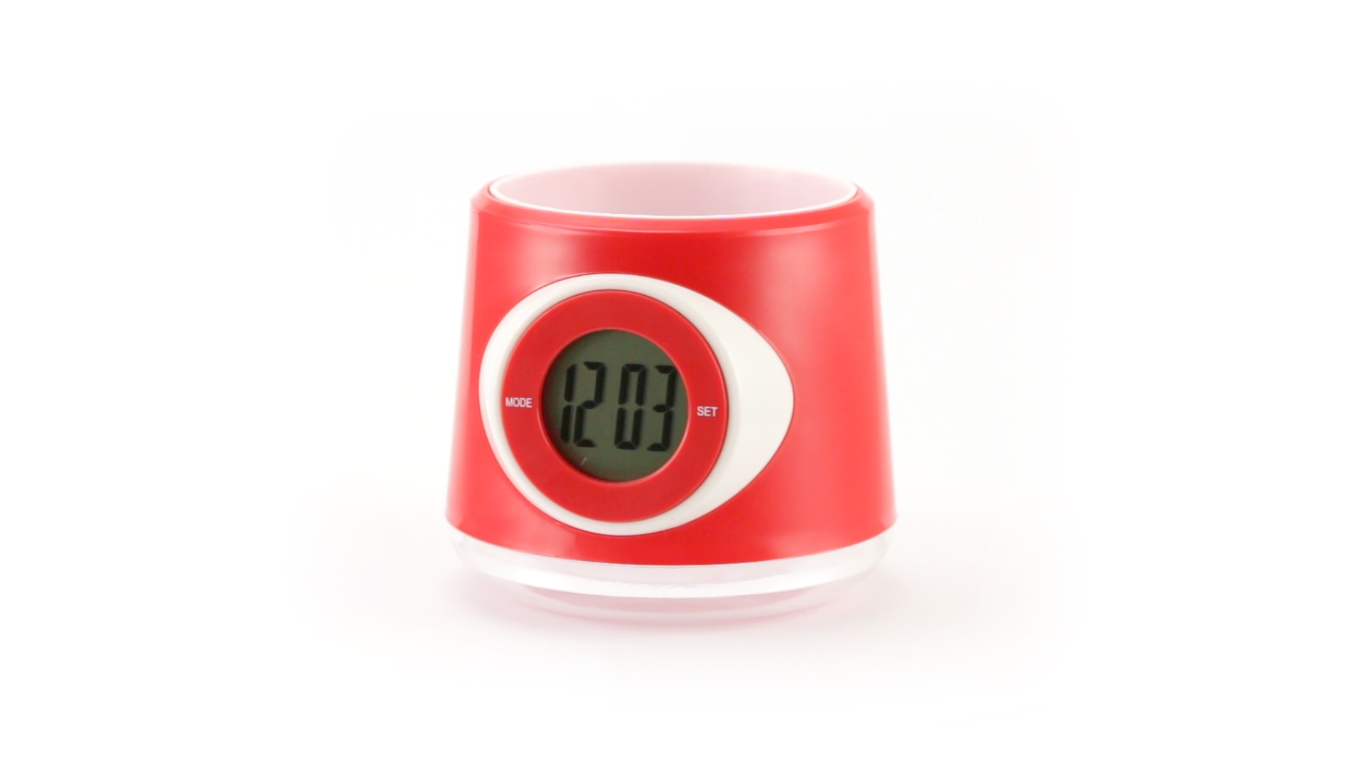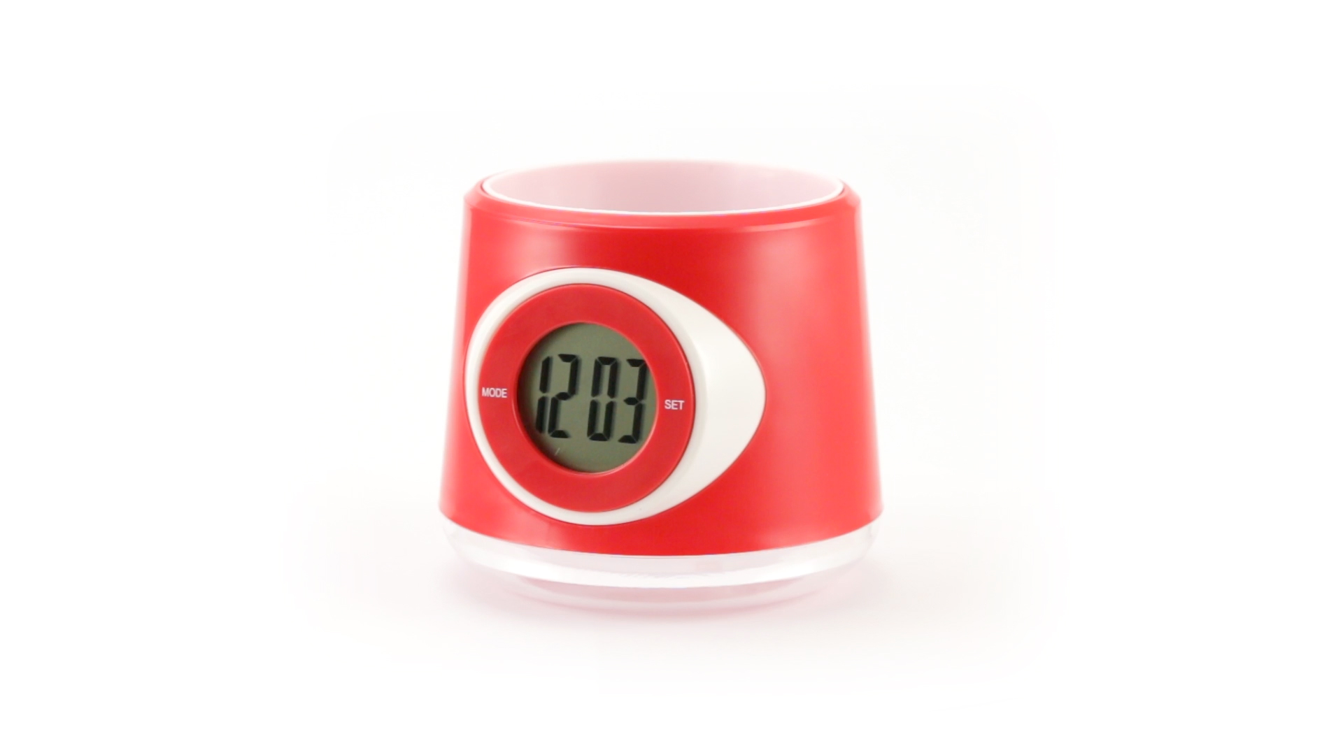 Digitale Tischuhr mit integriertem Blumentopf und originellem zweifarbigem Design. Knopfzellen mit Schutzfolie inklusive. Präsentiert in einer individuellen Box.