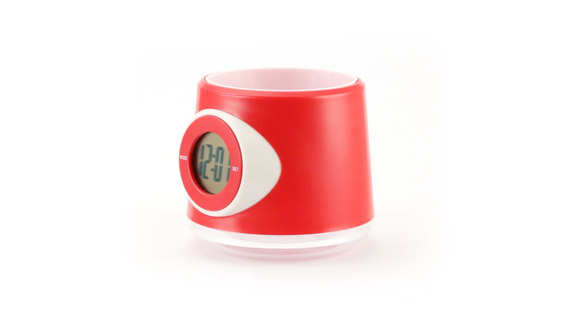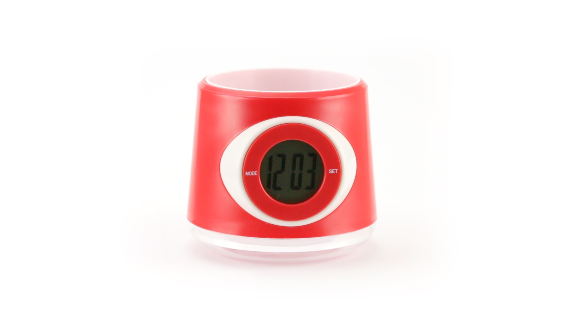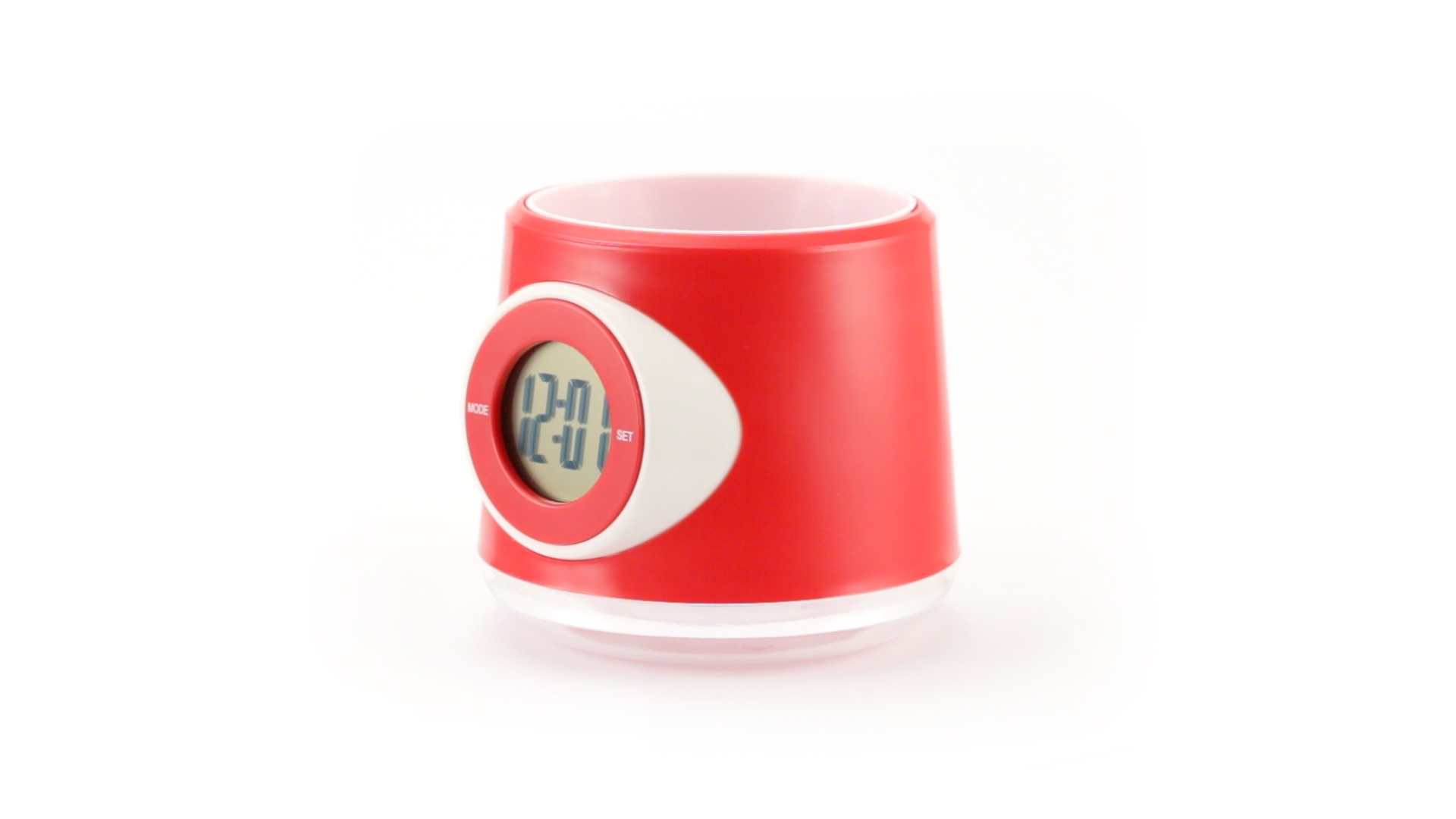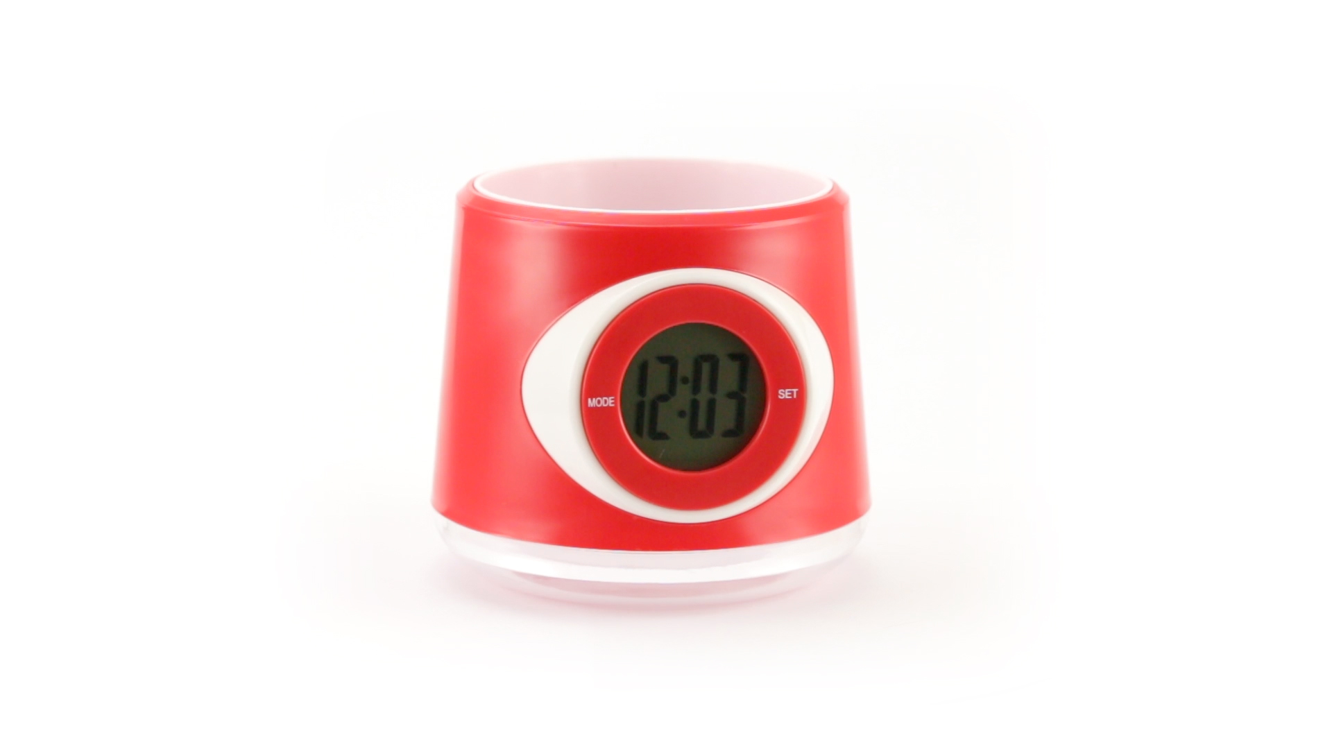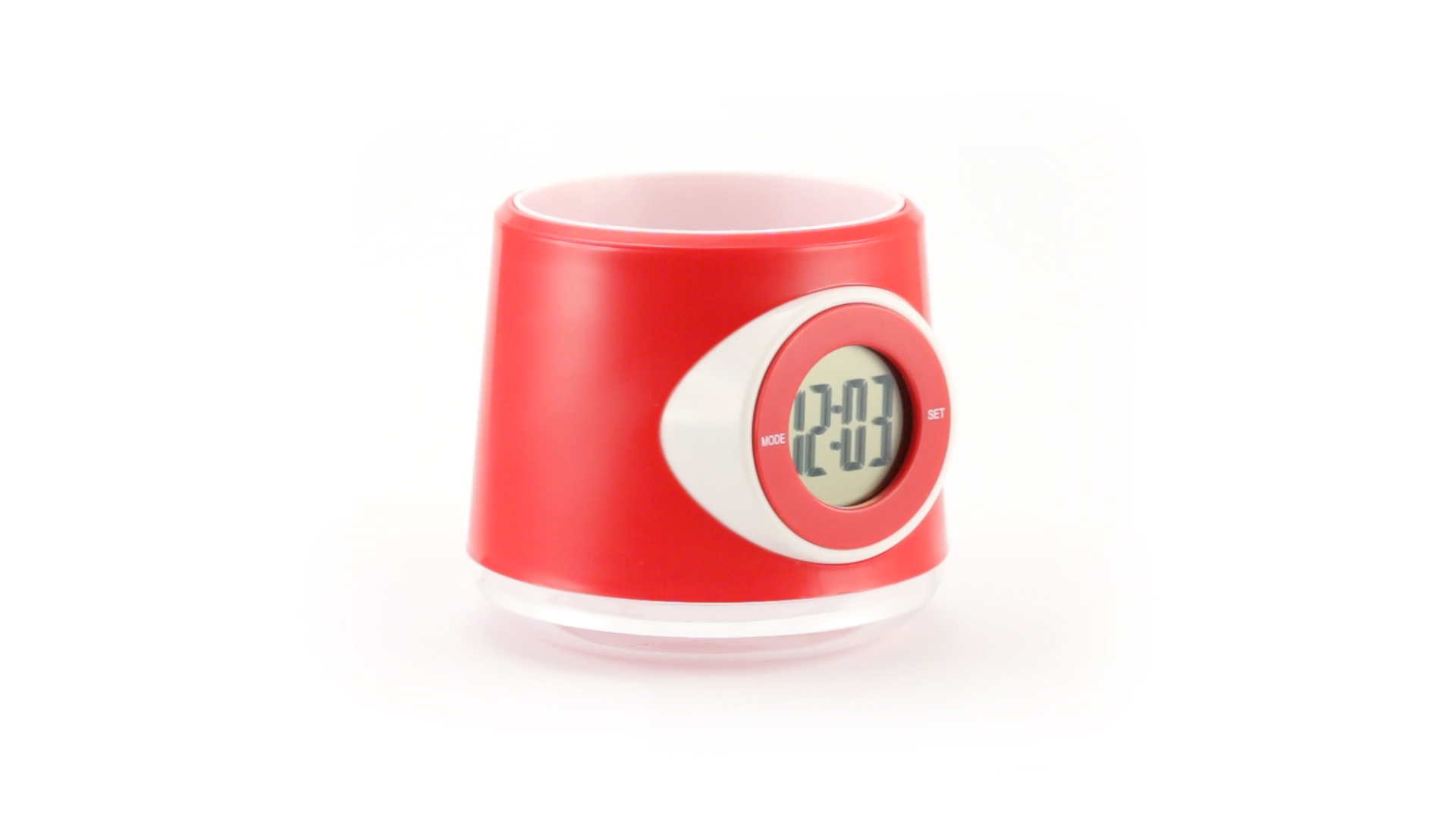 Digitale Tischuhr mit integriertem Blumentopf und originellem zweifarbigem Design. Knopfzellen mit Schutzfolie inklusive. Präsentiert in einer individuellen Box.