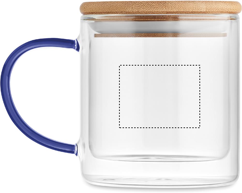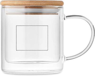 Doppelwandiges Borosilikatglas mit bunten Henkeln. Deckel aus Bambus. Füllmenge: 300 ml.