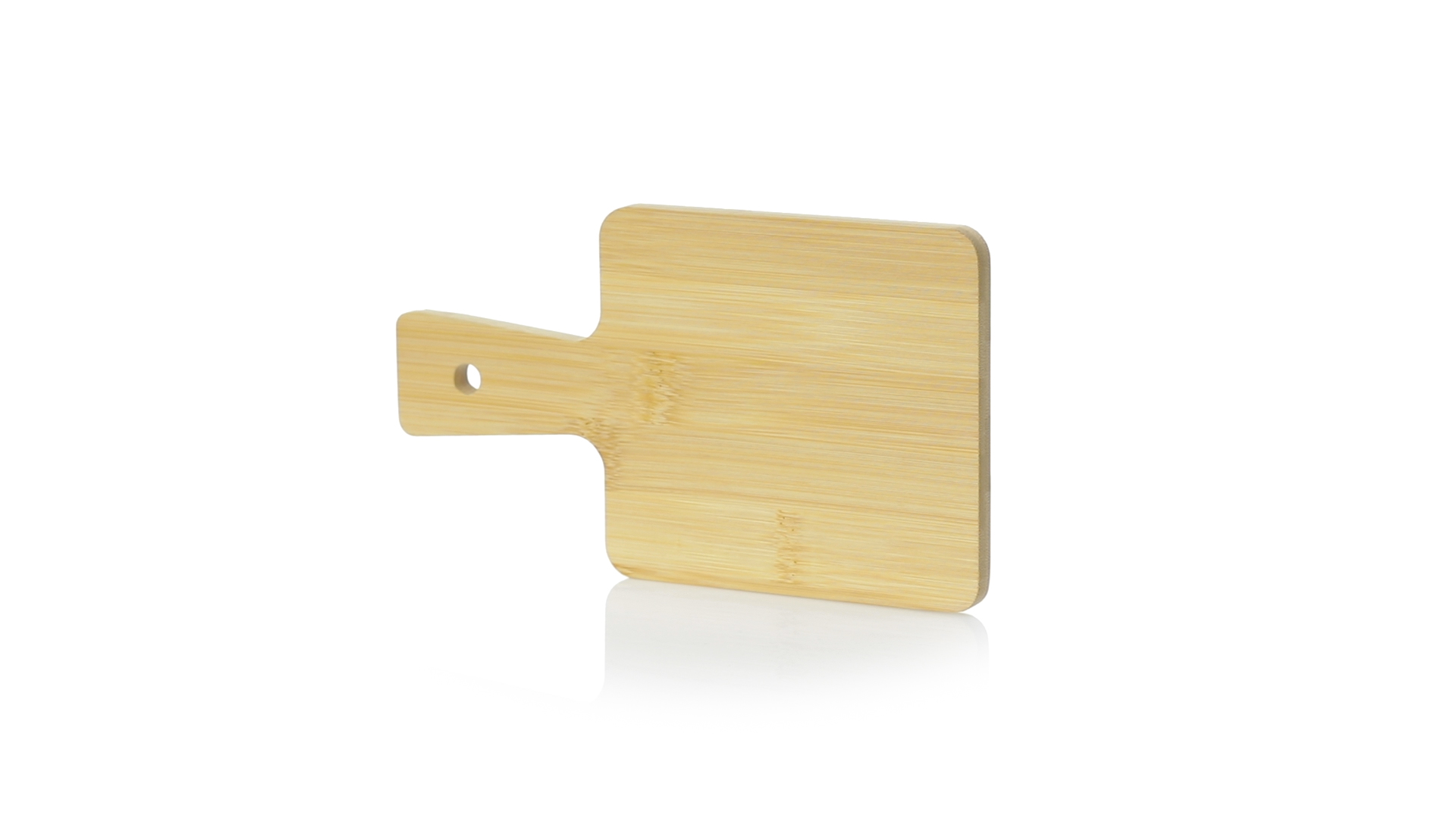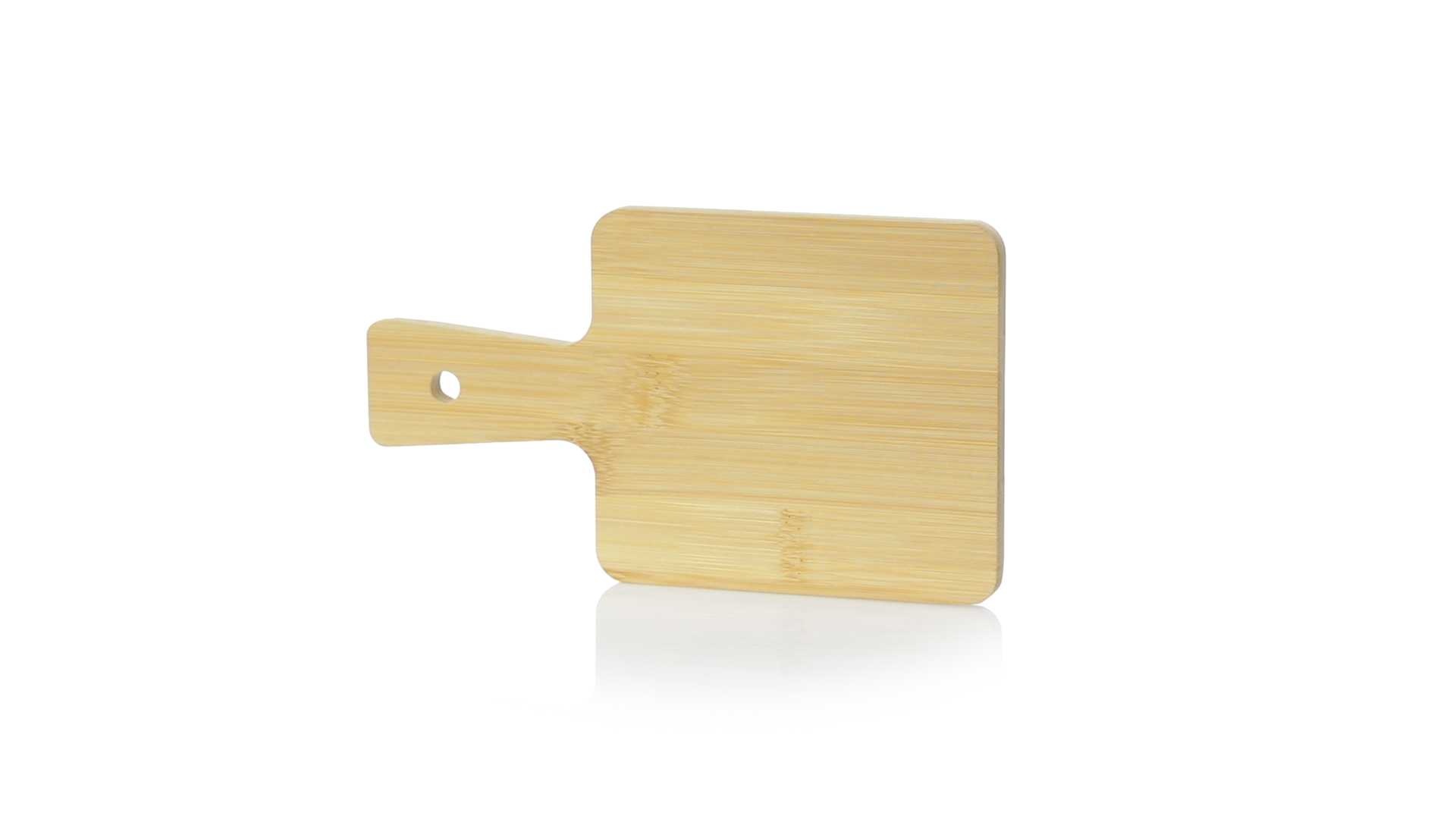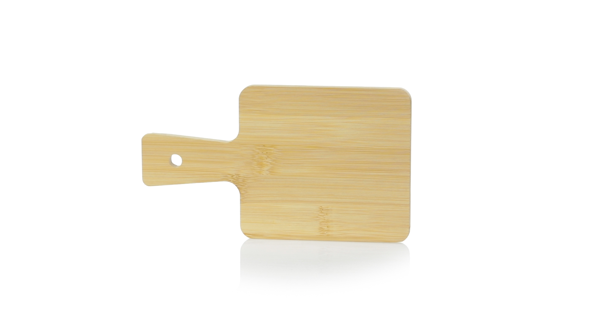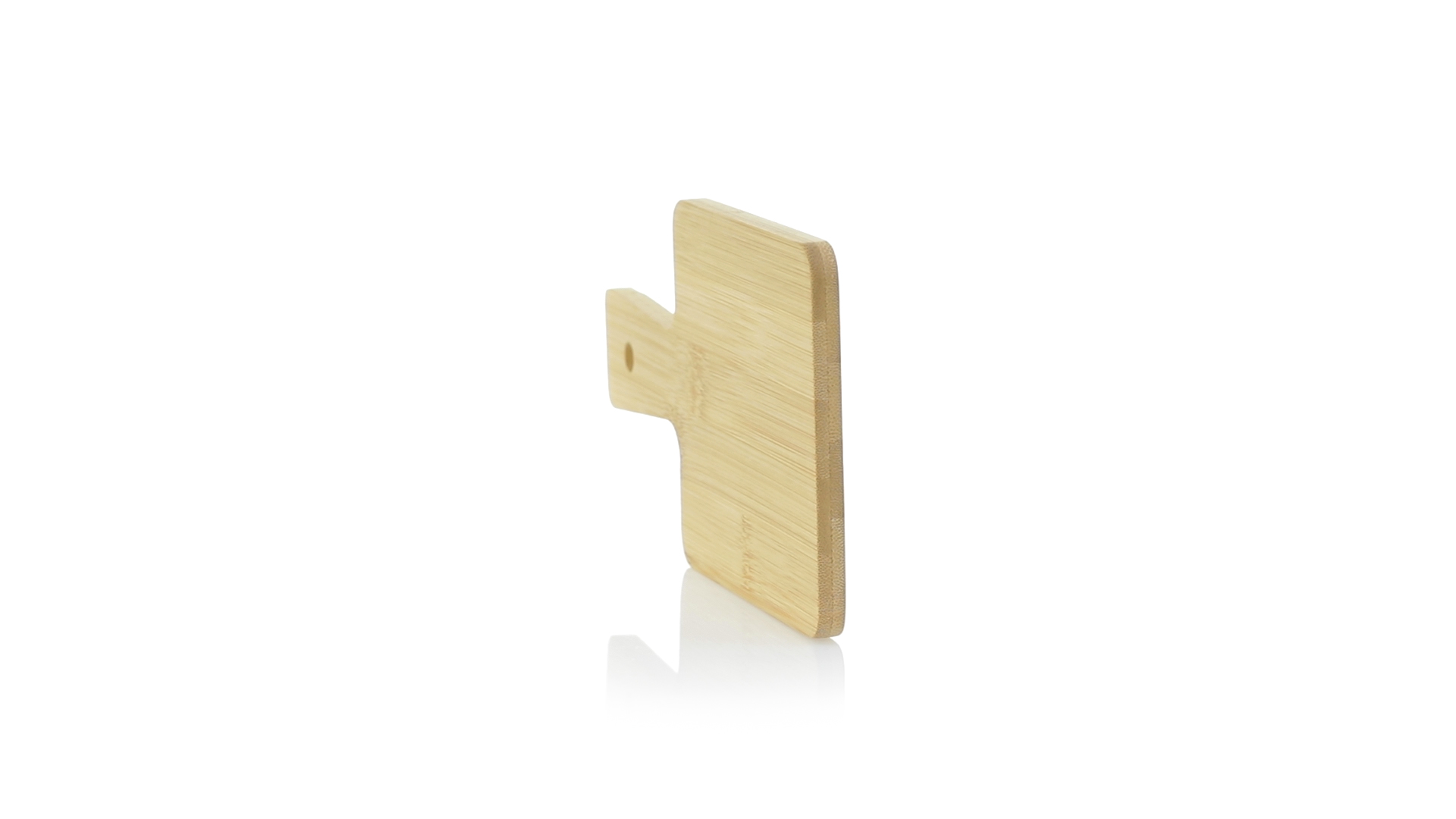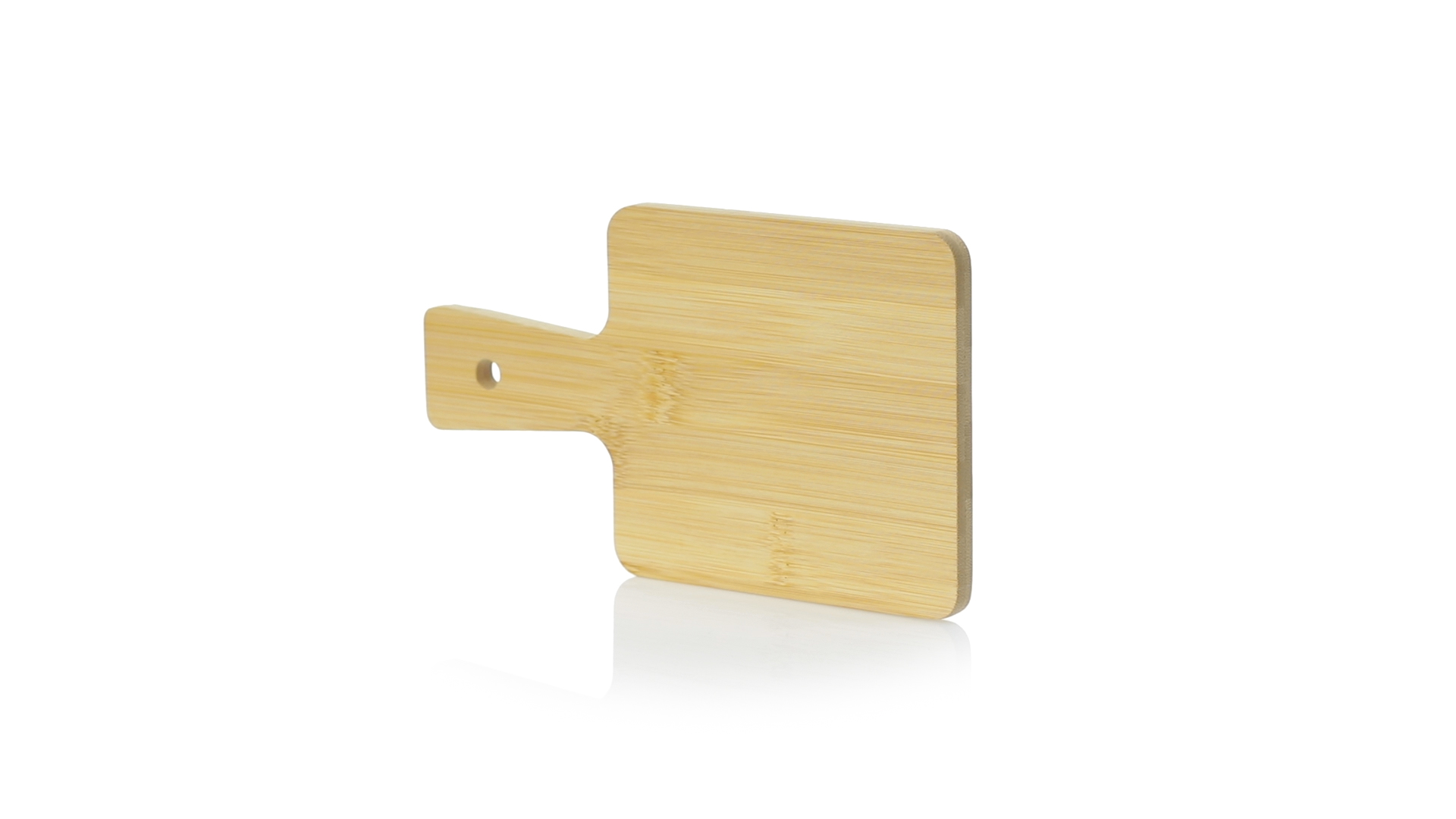 Linie "Natur" Brett aus Bambus, ideal für die Präsentation. Mit Griff zur einfachen Handhabung und Loch zum Aufhängen.