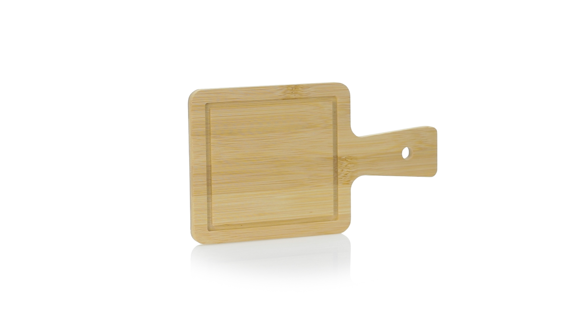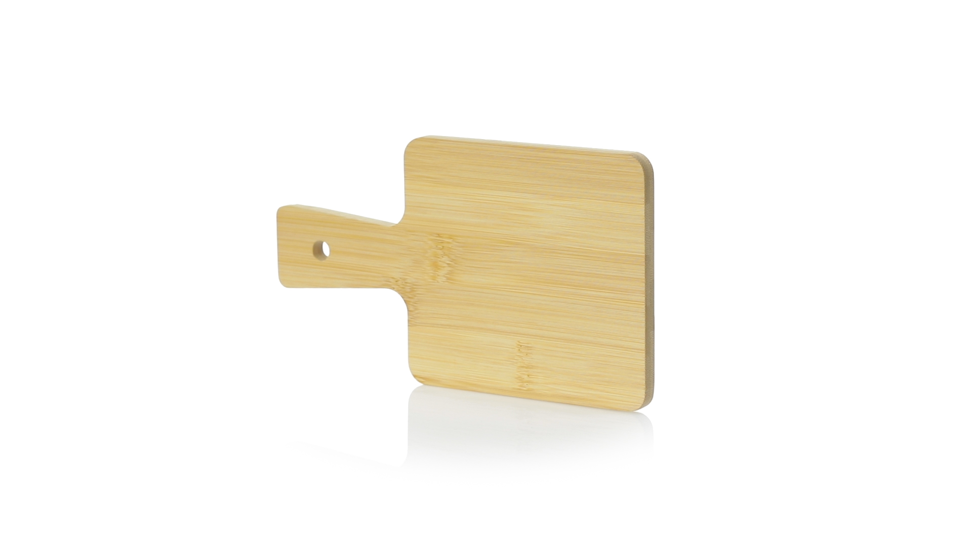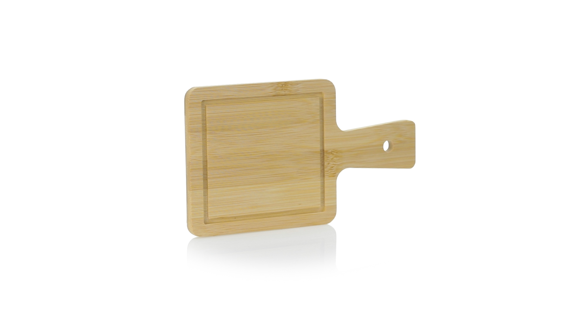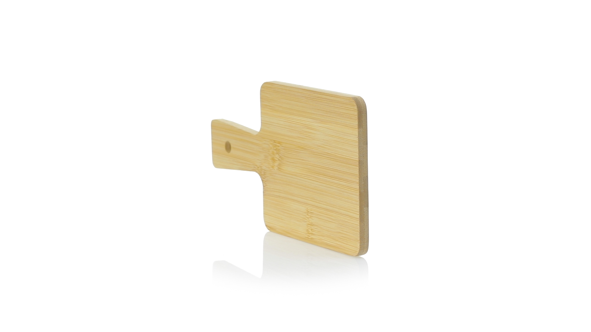 Linie "Natur" Brett aus Bambus, ideal für die Präsentation. Mit Griff zur einfachen Handhabung und Loch zum Aufhängen.