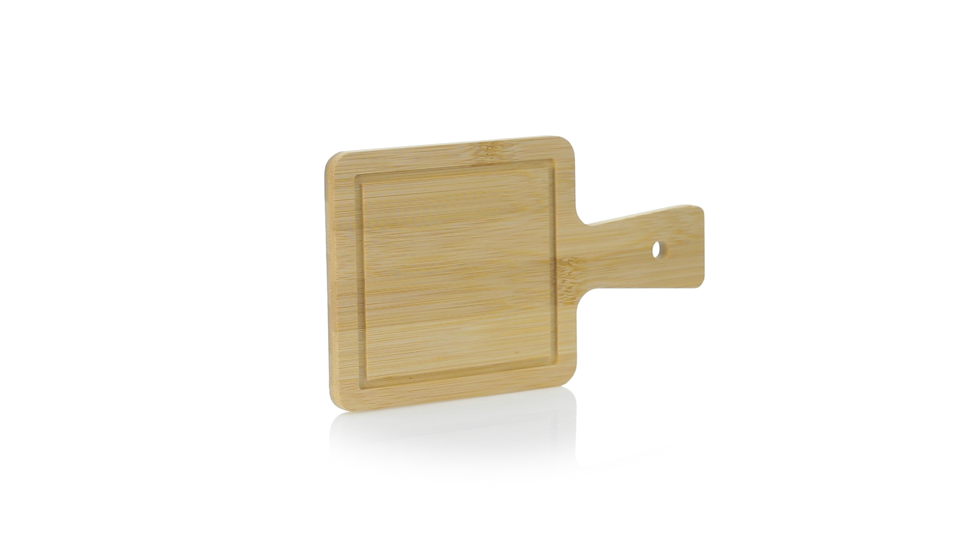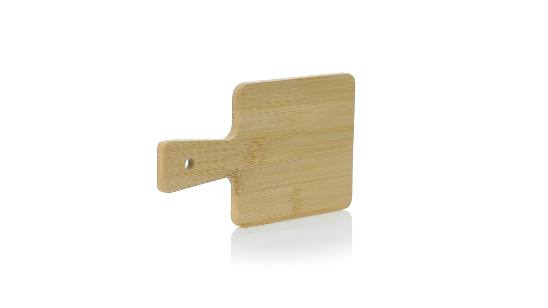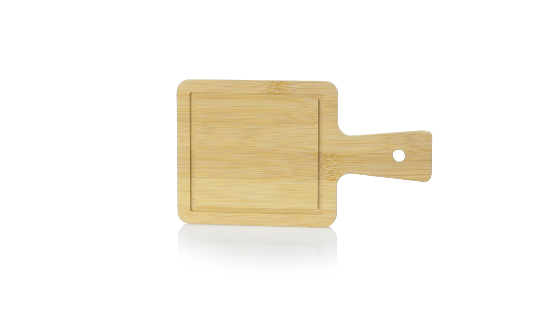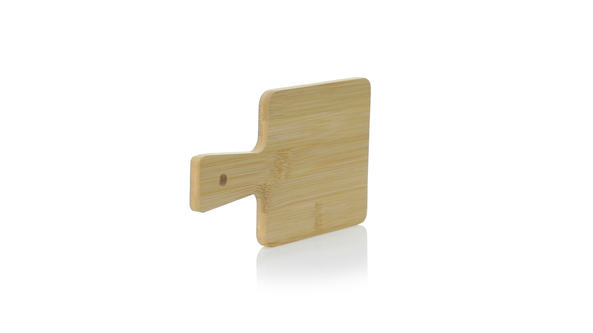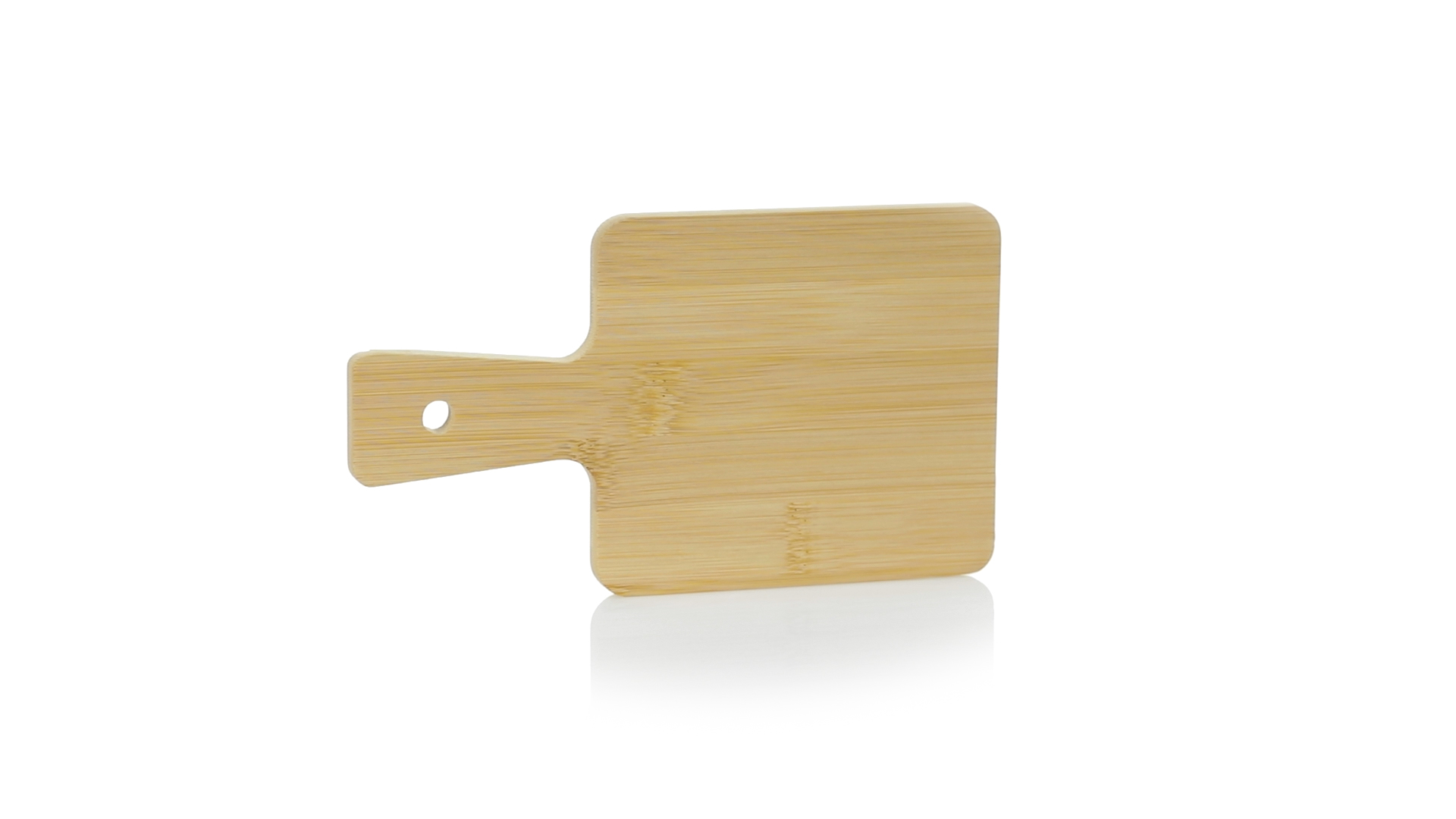 Linie "Natur" Brett aus Bambus, ideal für die Präsentation. Mit Griff zur einfachen Handhabung und Loch zum Aufhängen.