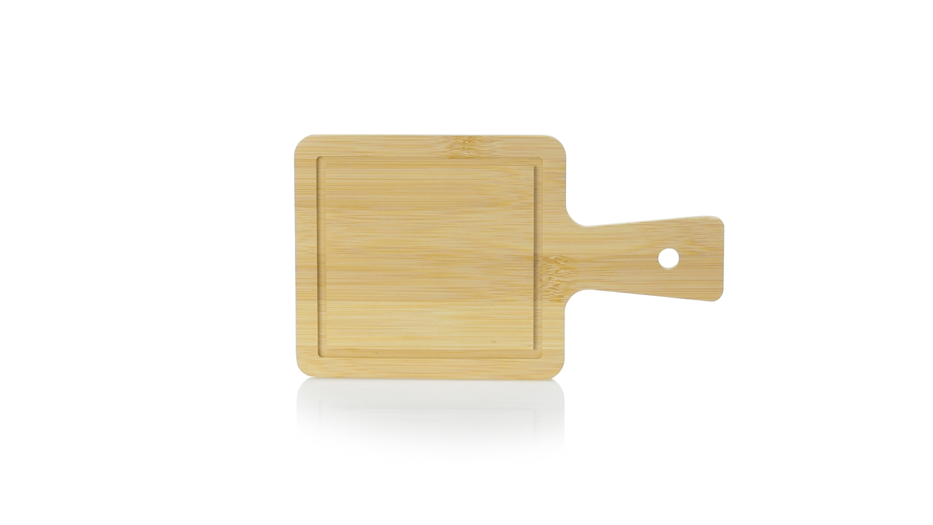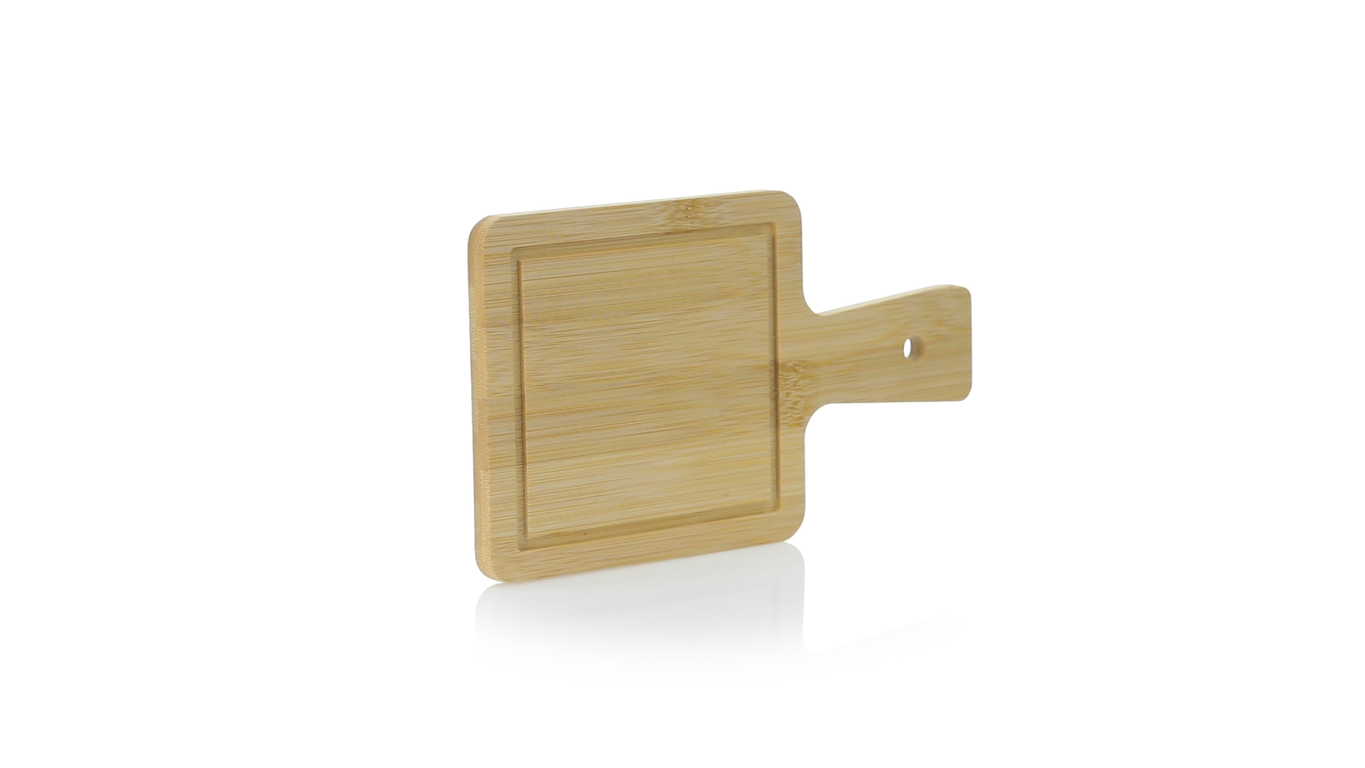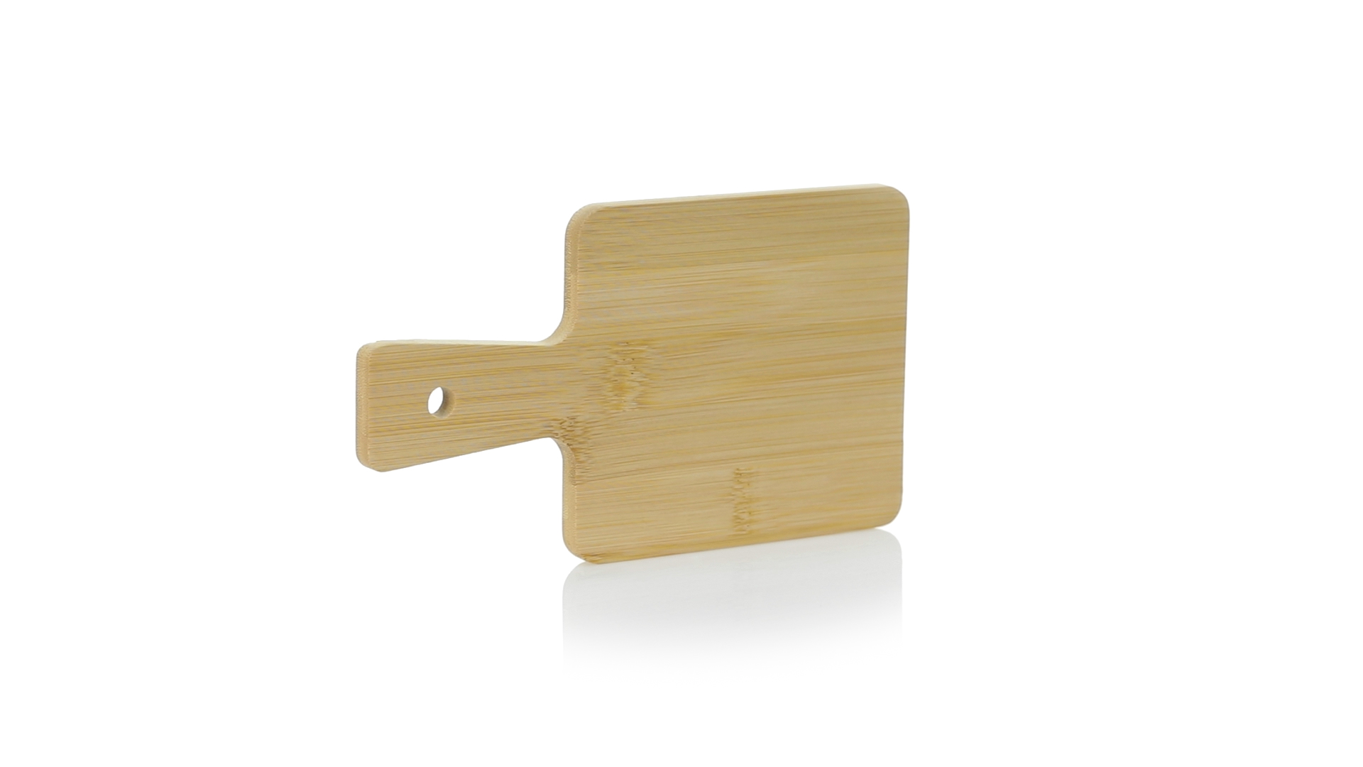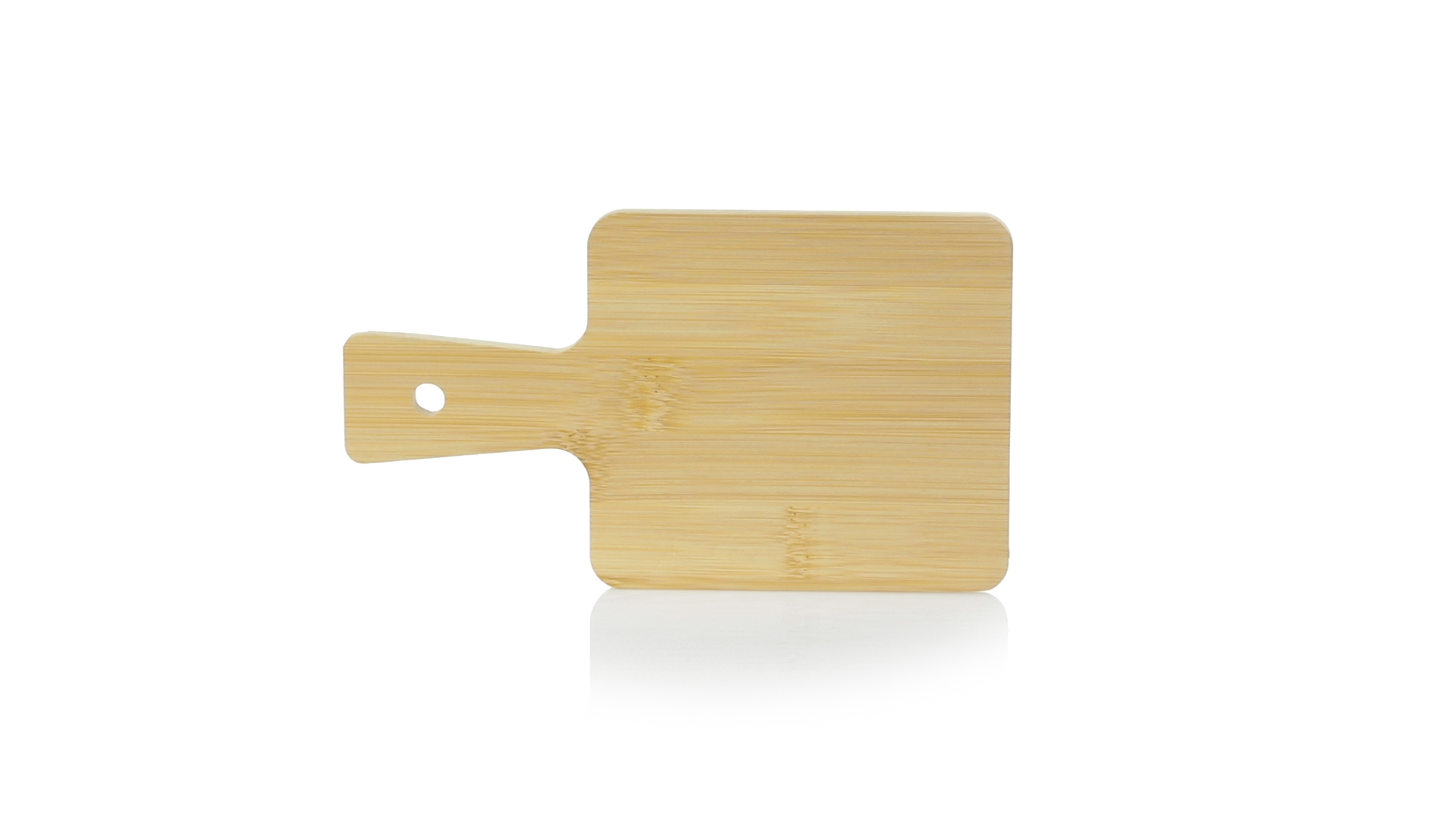 Linie "Natur" Brett aus Bambus, ideal für die Präsentation. Mit Griff zur einfachen Handhabung und Loch zum Aufhängen.