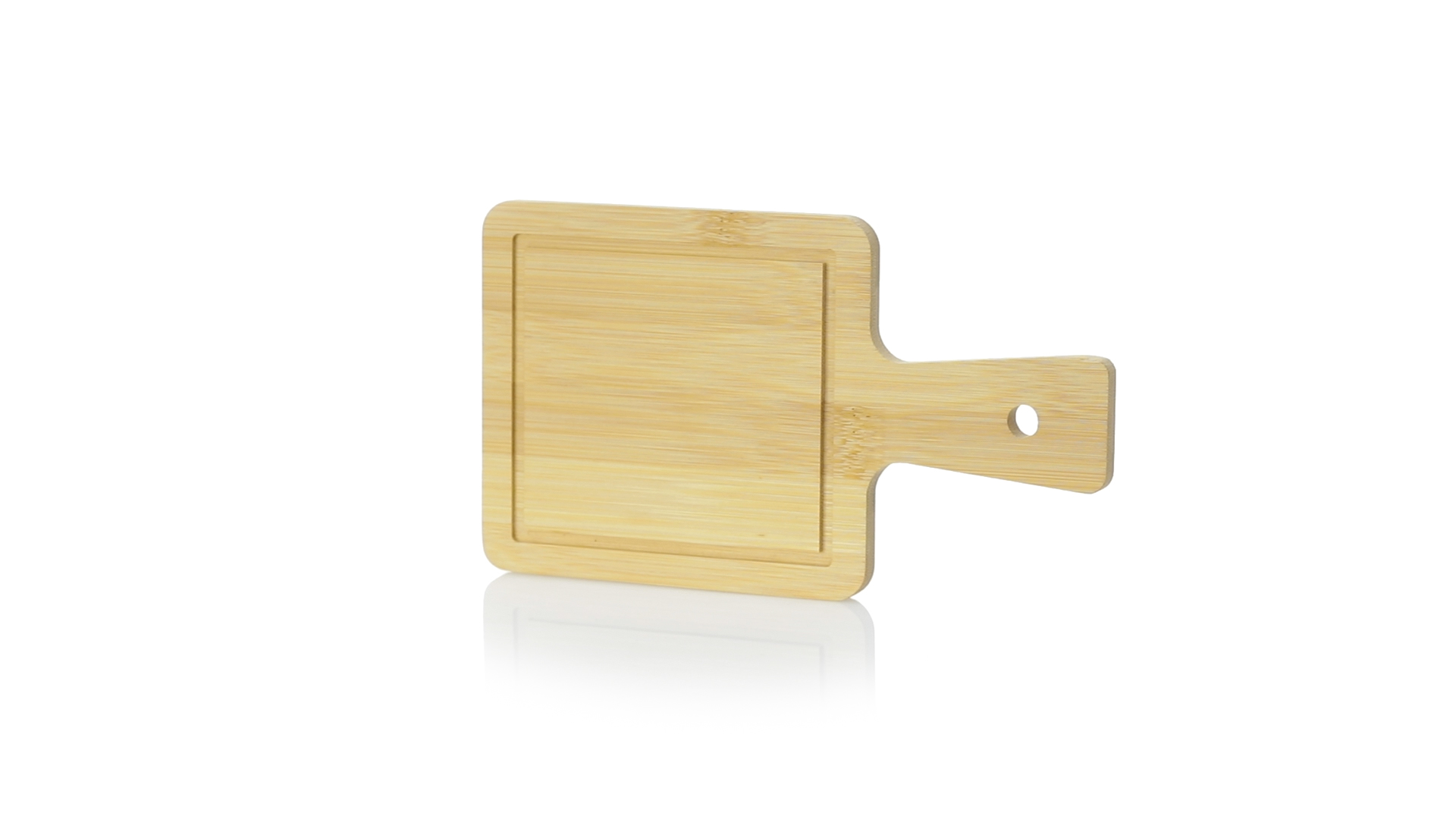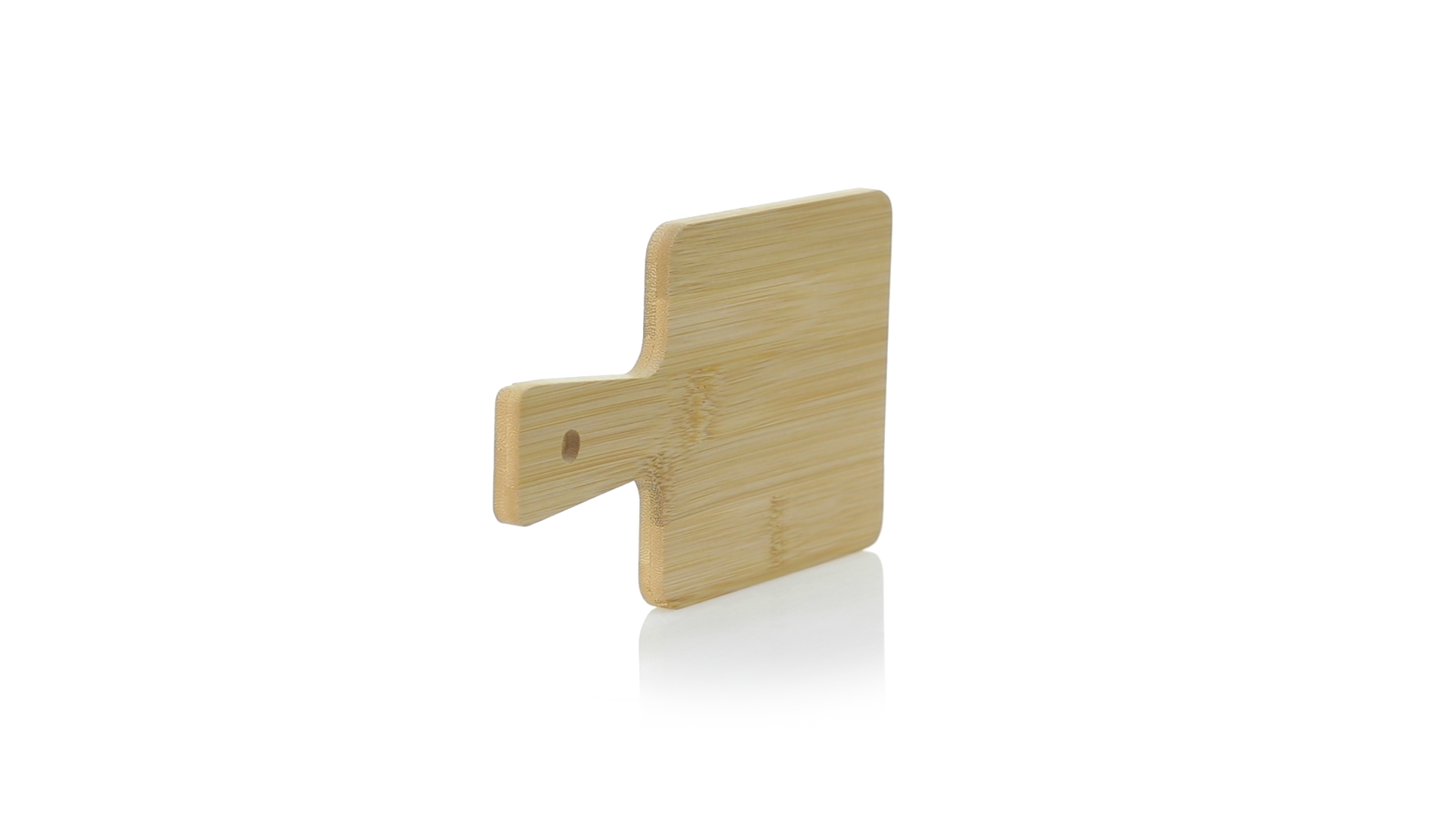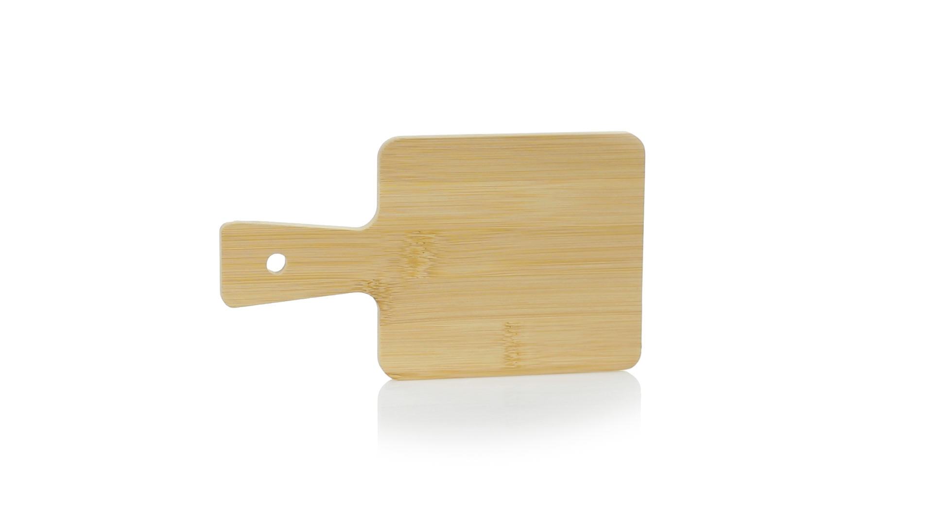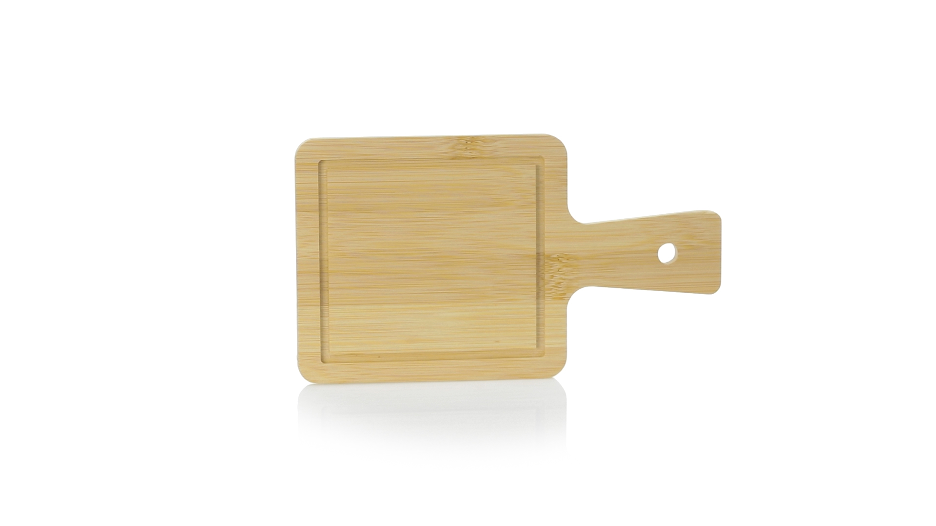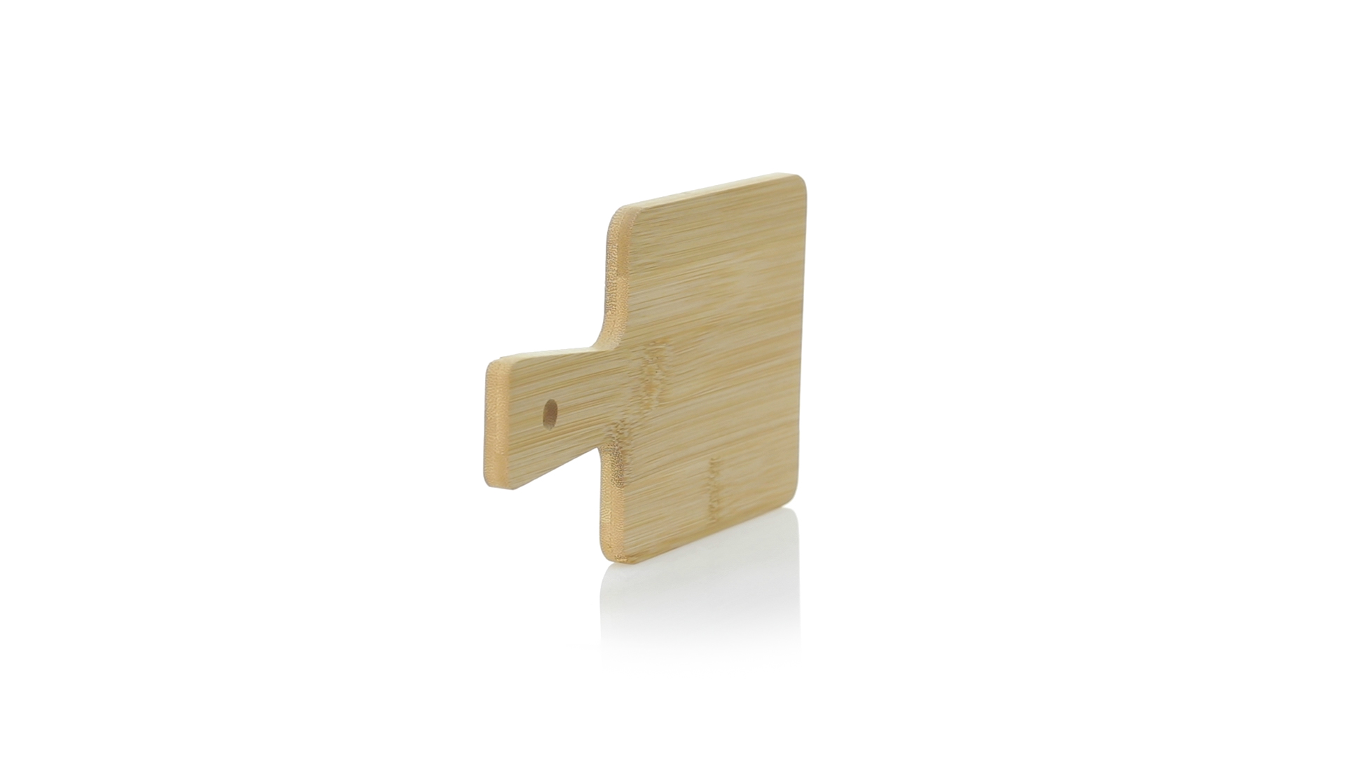 Linie "Natur" Brett aus Bambus, ideal für die Präsentation. Mit Griff zur einfachen Handhabung und Loch zum Aufhängen.