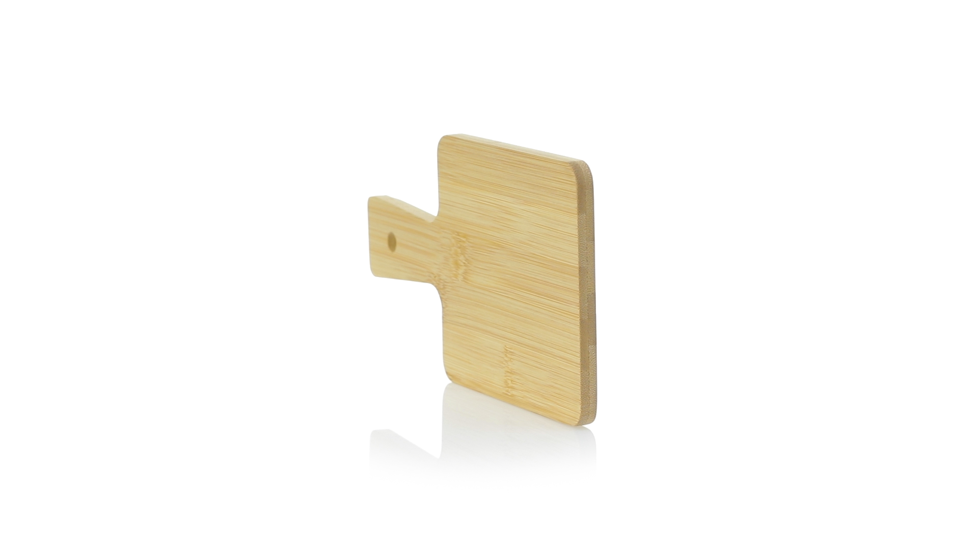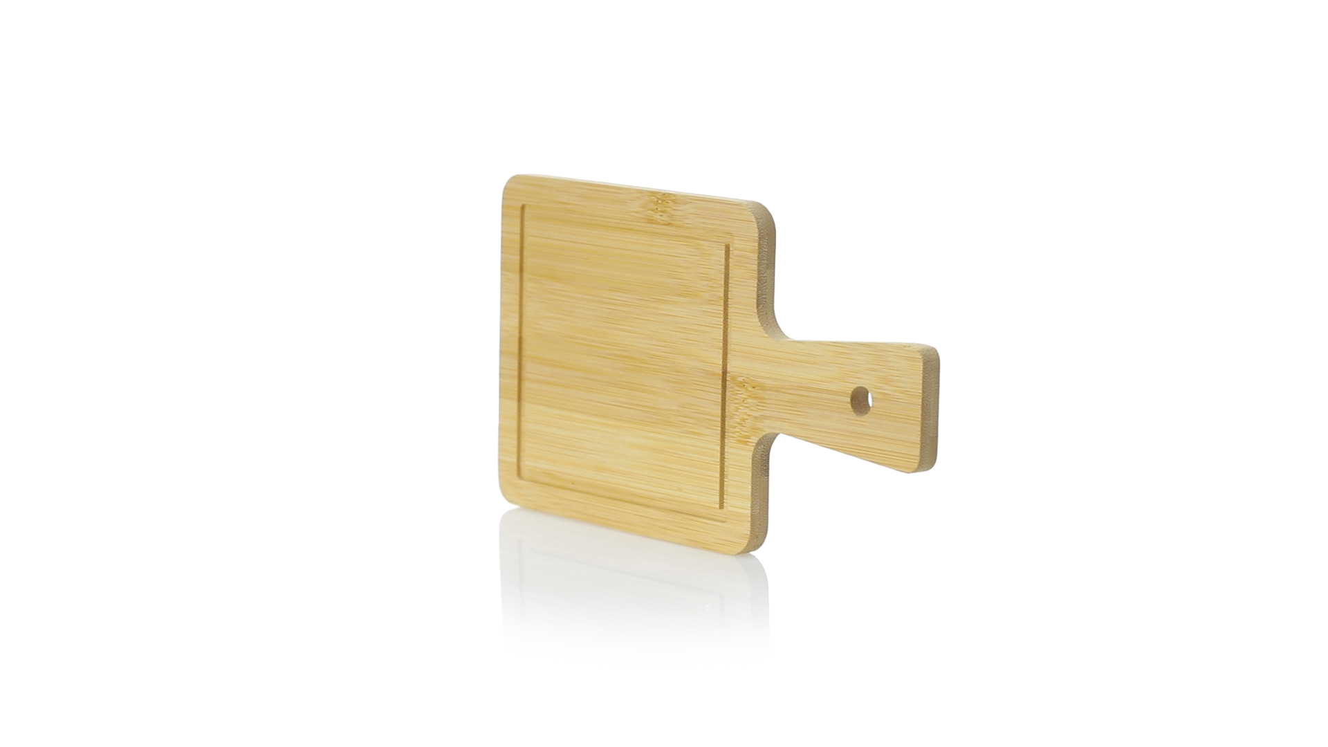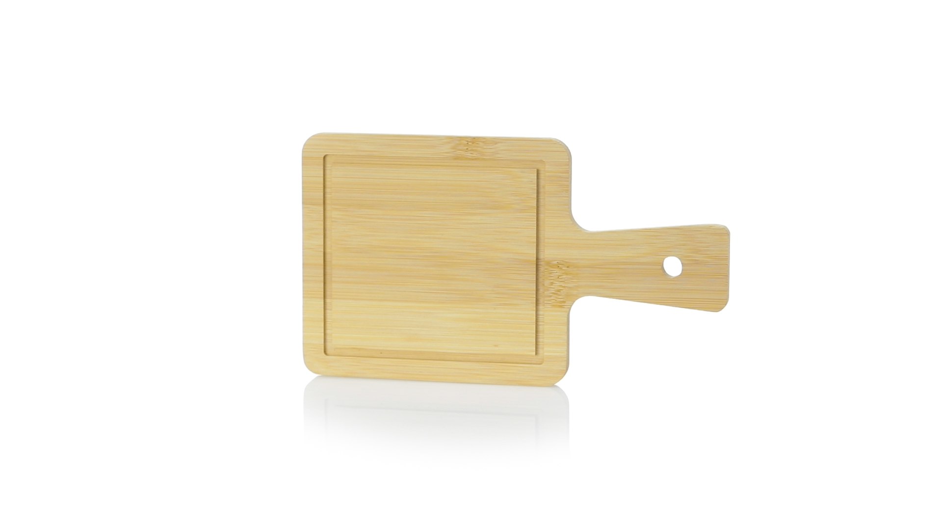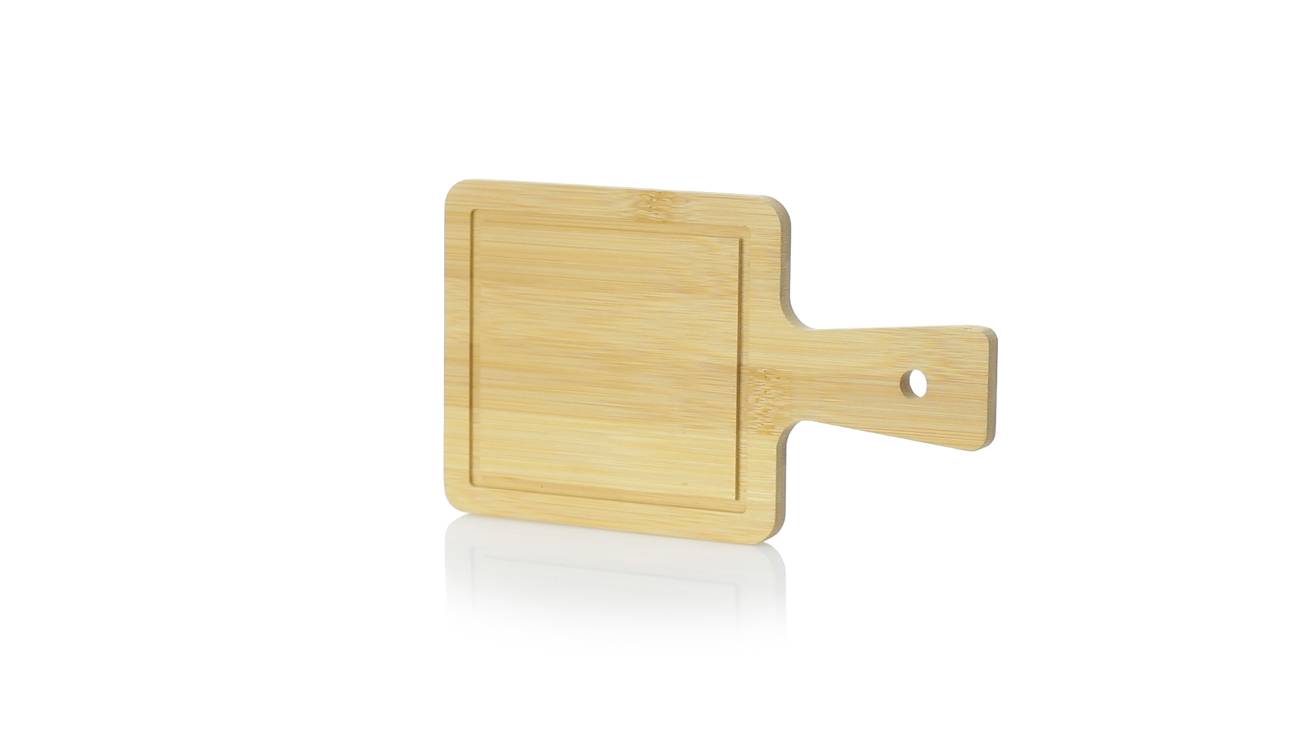 Linie "Natur" Brett aus Bambus, ideal für die Präsentation. Mit Griff zur einfachen Handhabung und Loch zum Aufhängen.
