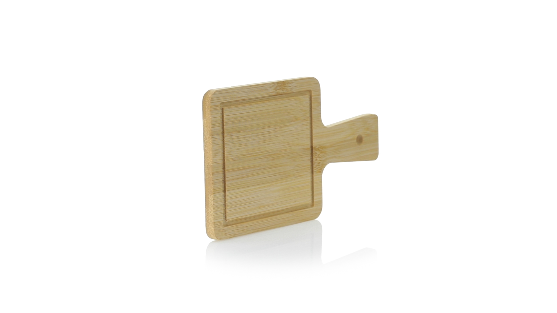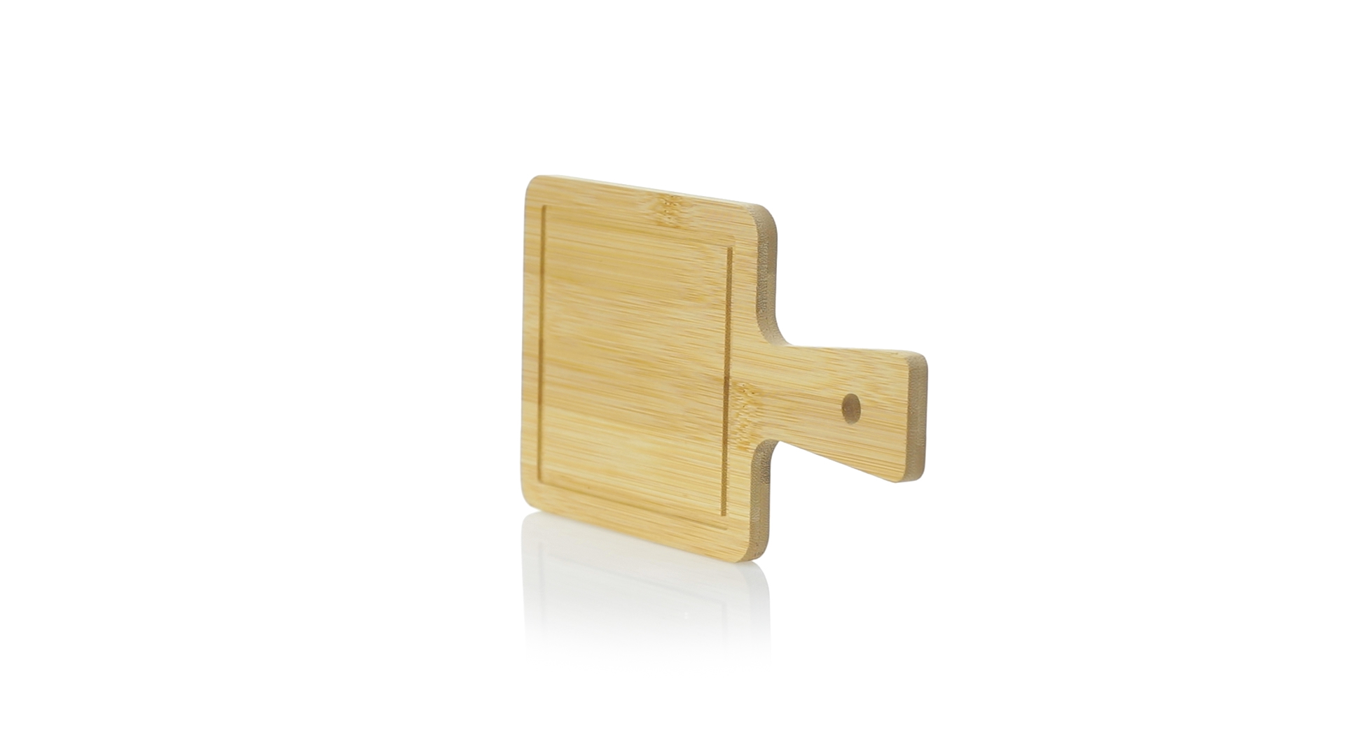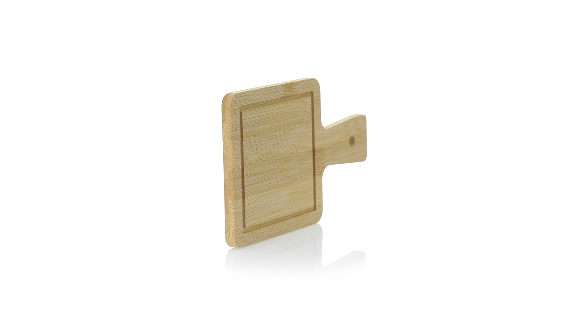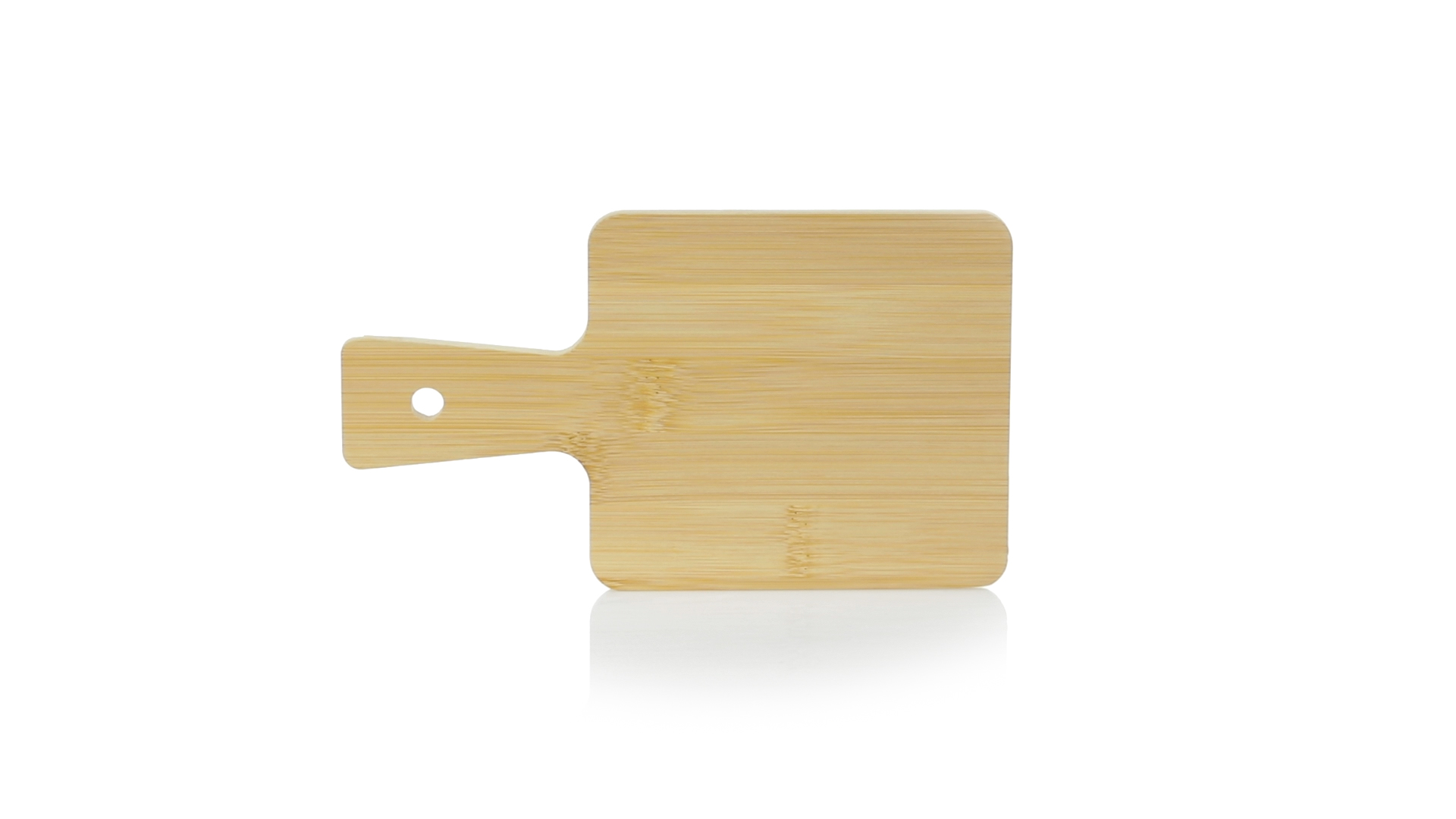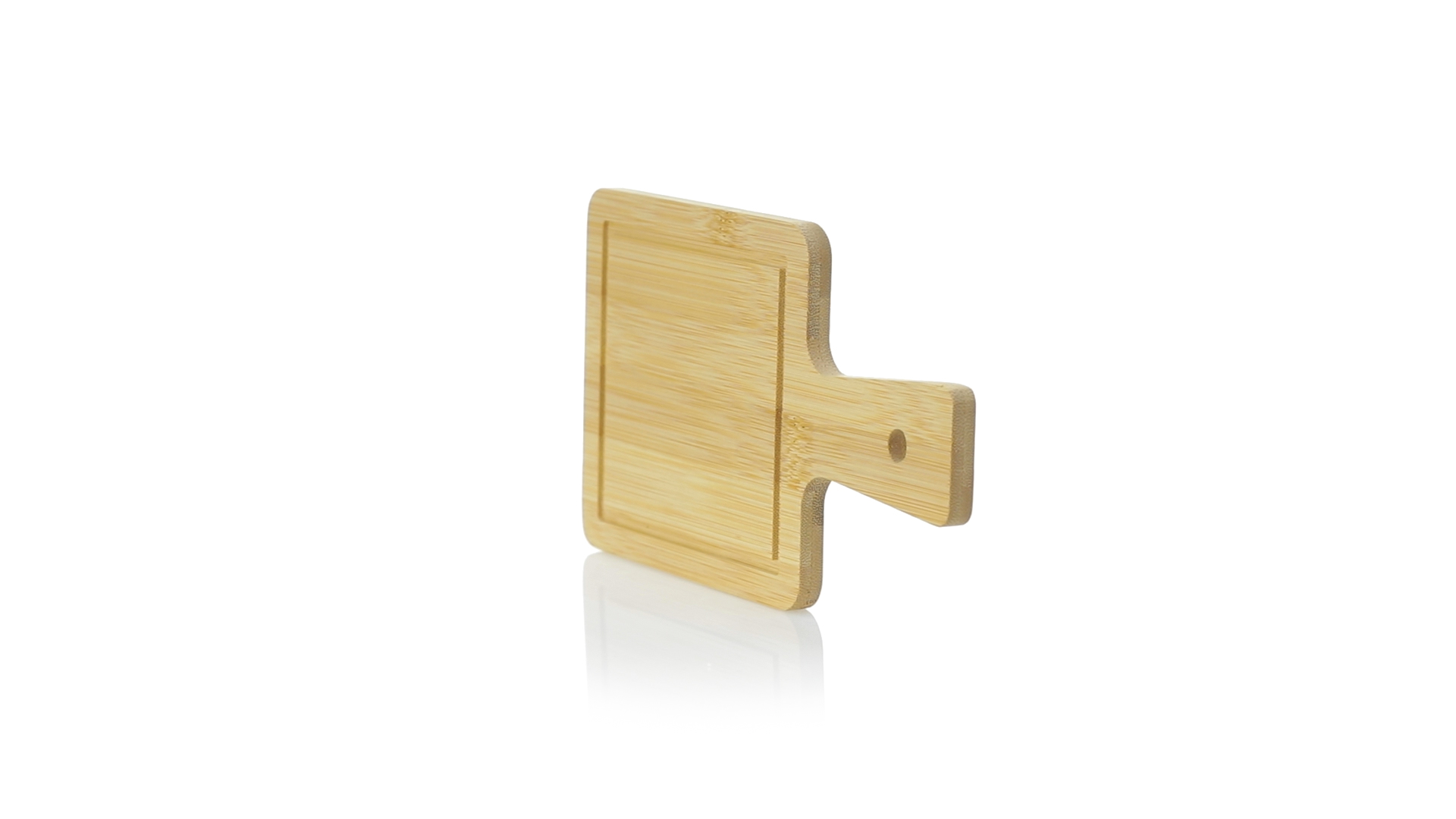 Linie "Natur" Brett aus Bambus, ideal für die Präsentation. Mit Griff zur einfachen Handhabung und Loch zum Aufhängen.