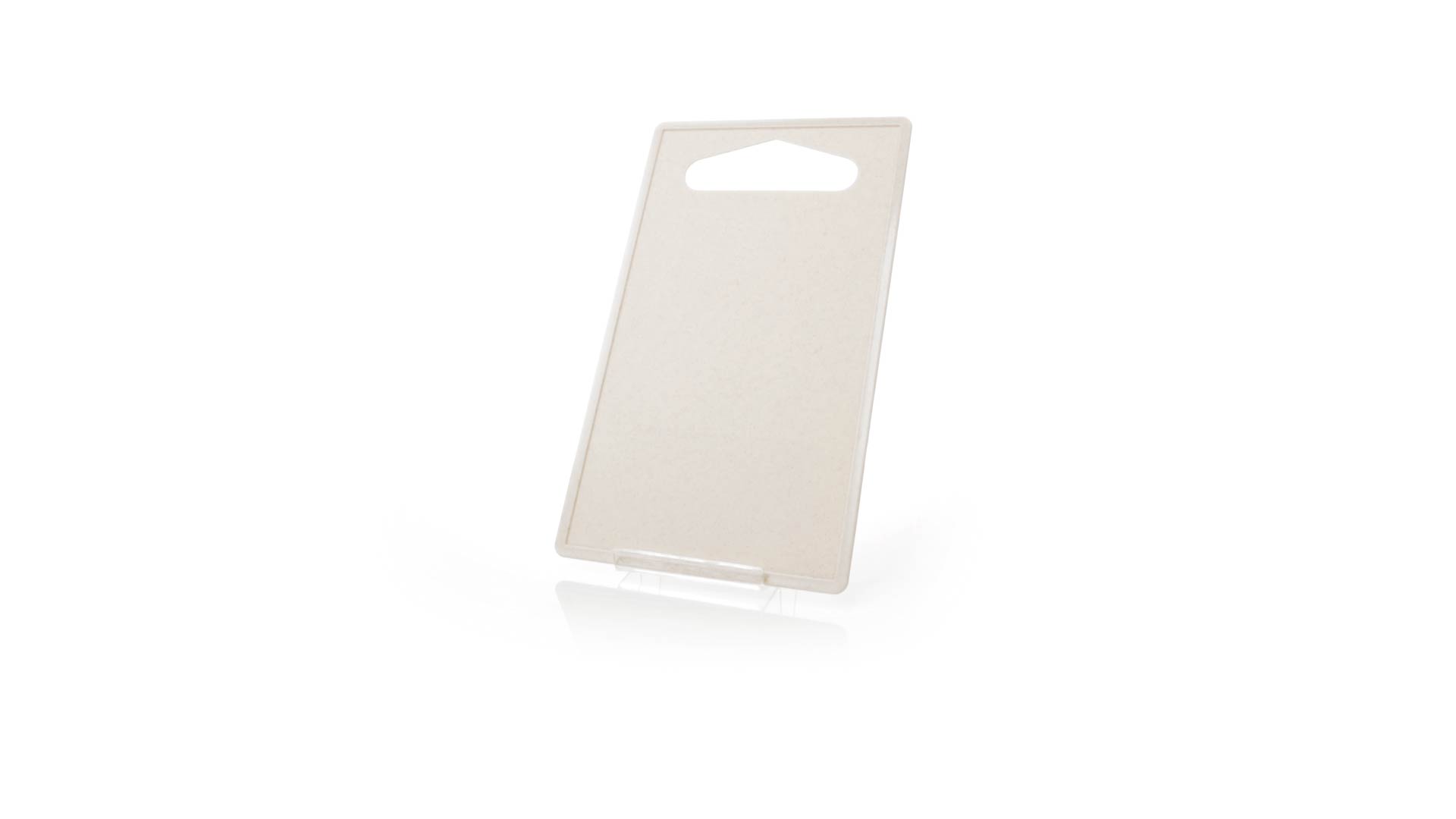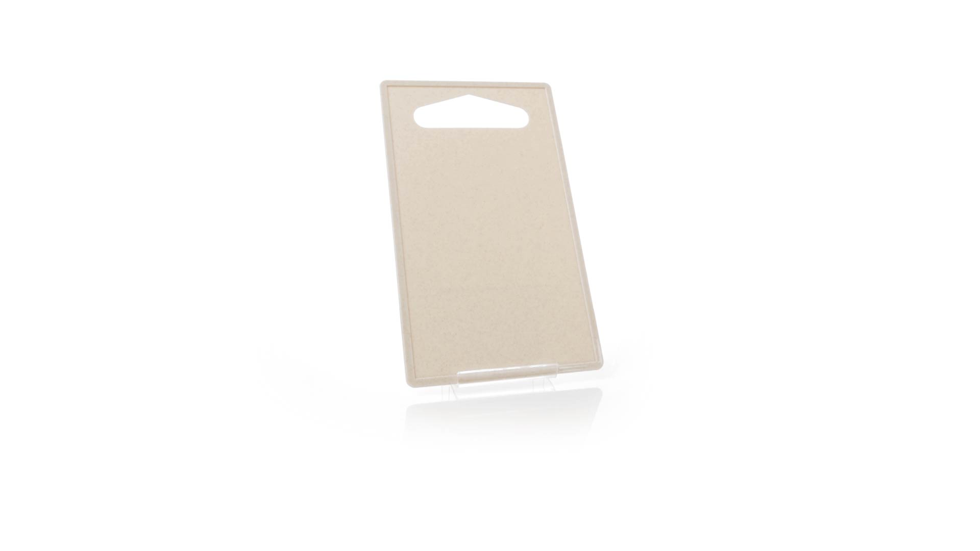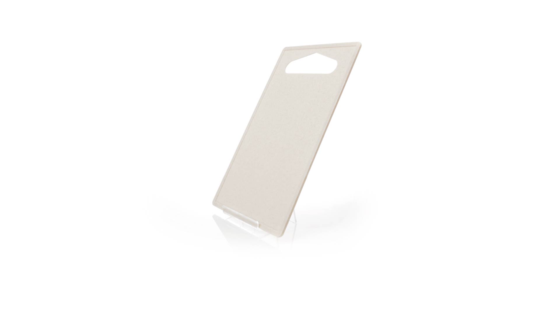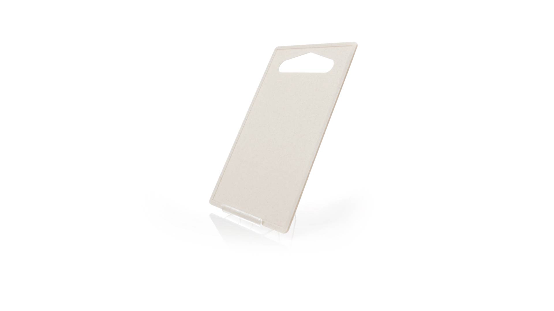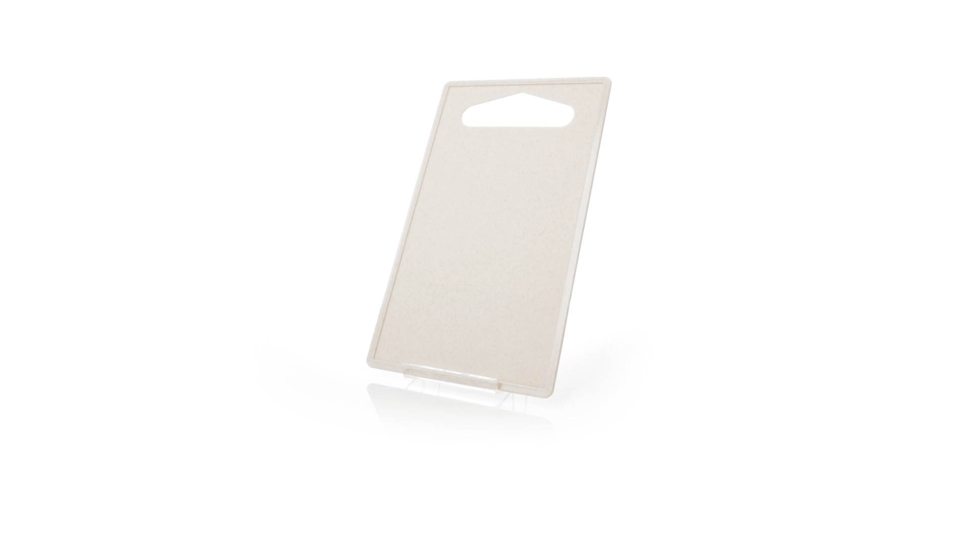 Küchenschneidebrett aus PP. Mit Griff für festen Halt, leicht zu reinigen und aufzubewahren. Präsentiert in einer einzelnen recycelten Tasche.
