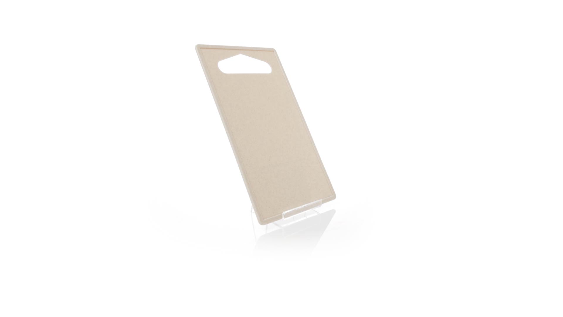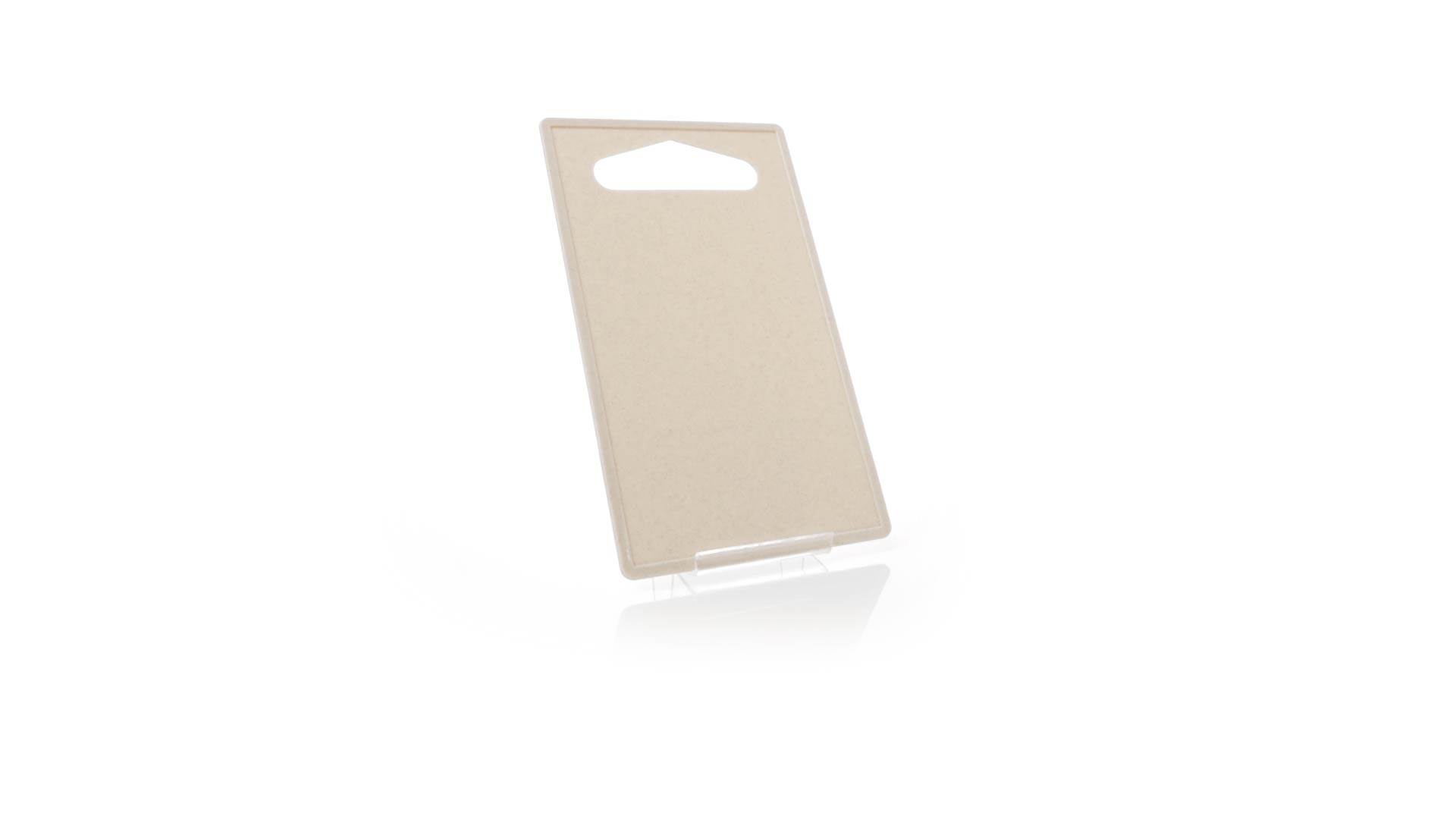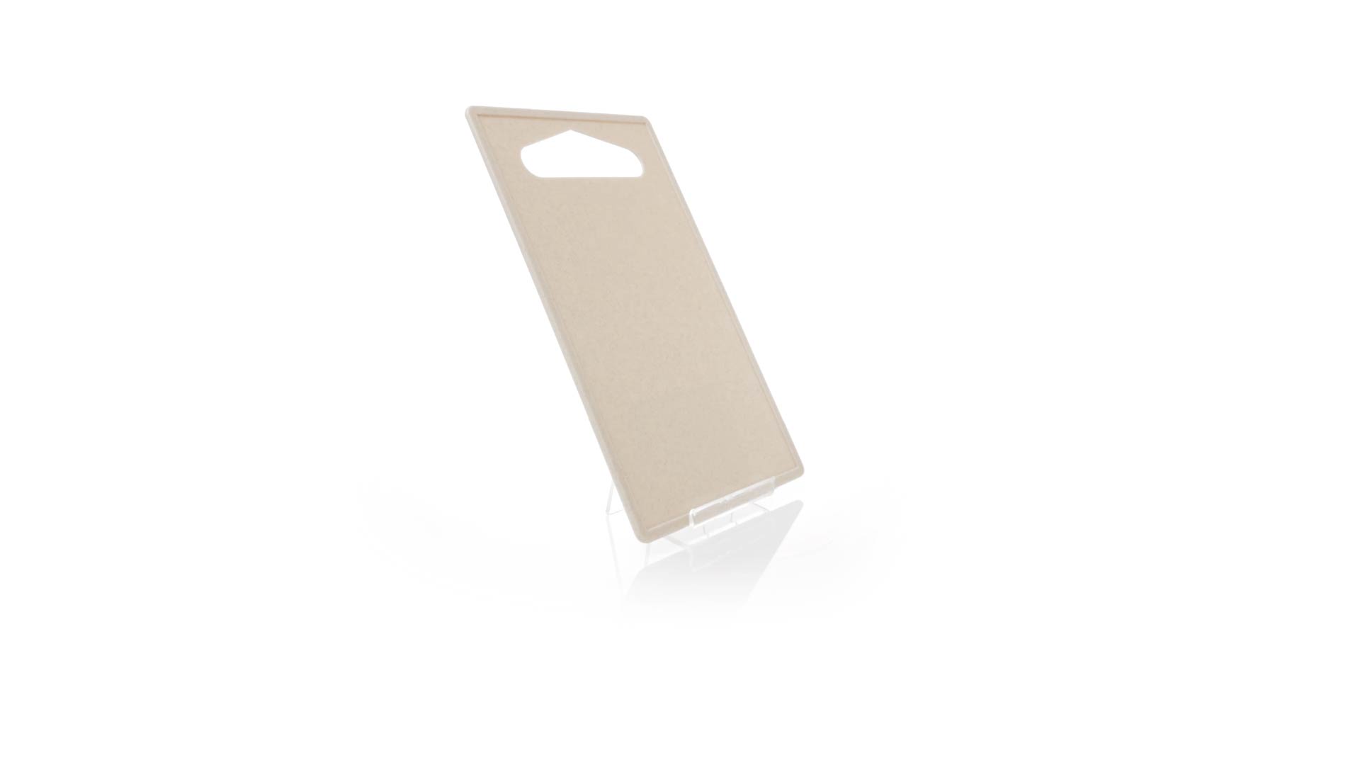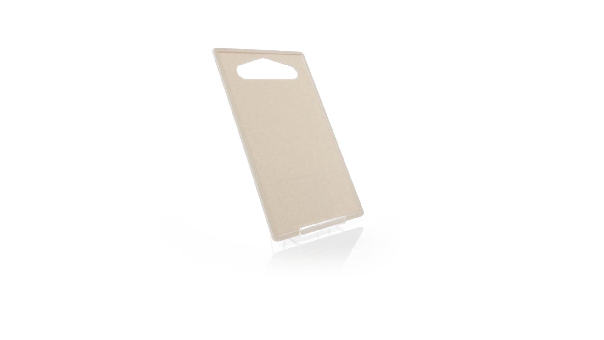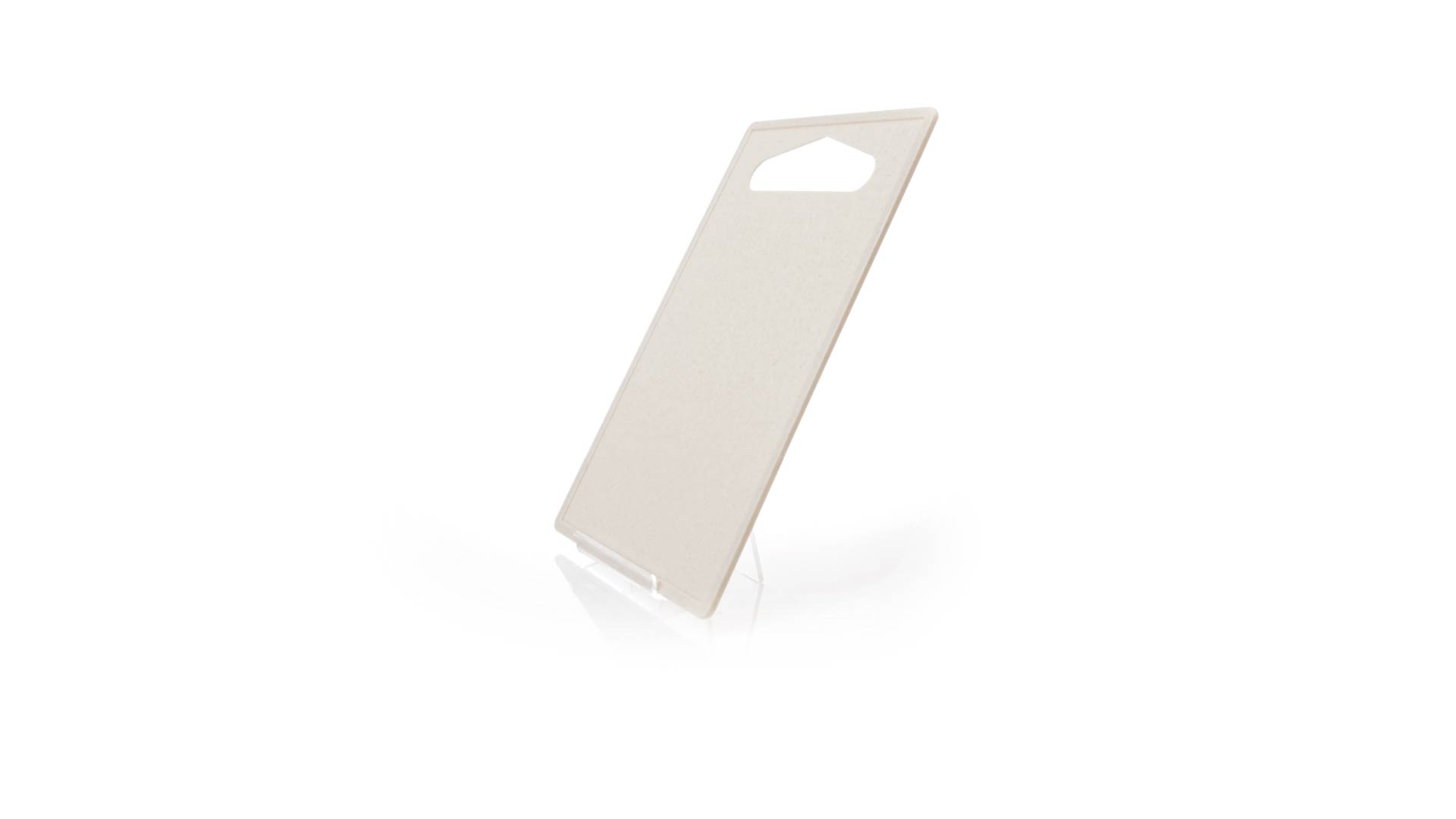 Küchenschneidebrett aus PP. Mit Griff für festen Halt, leicht zu reinigen und aufzubewahren. Präsentiert in einer einzelnen recycelten Tasche.
