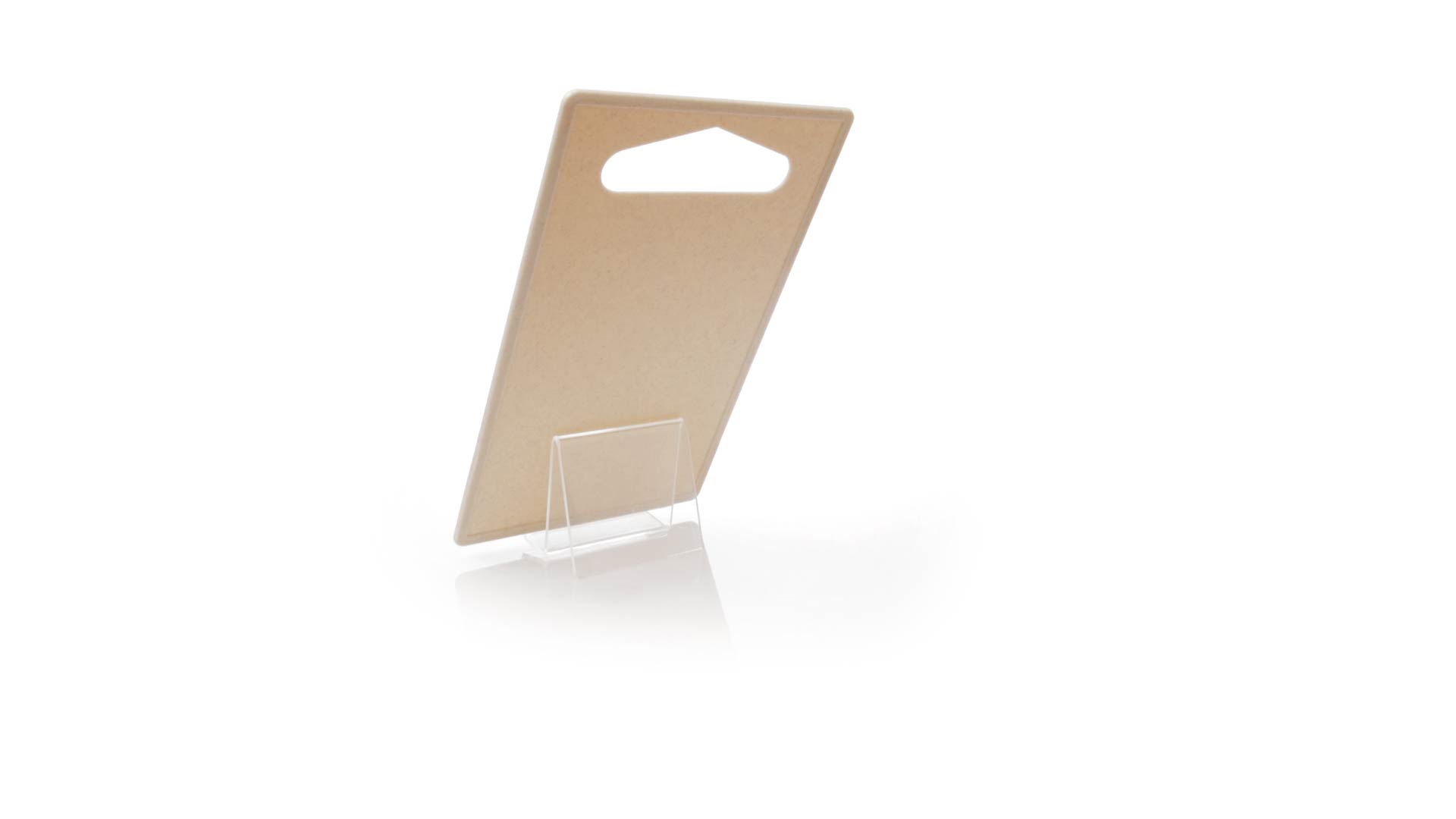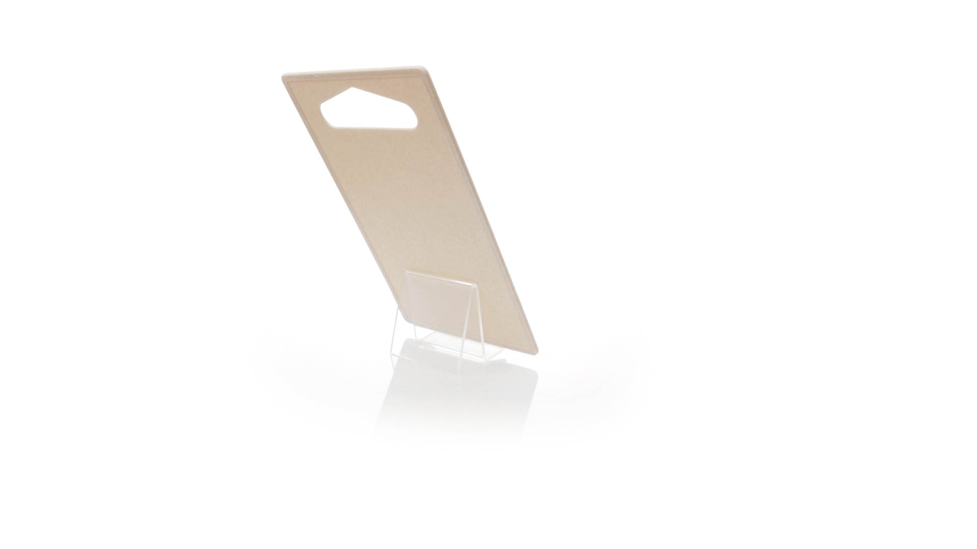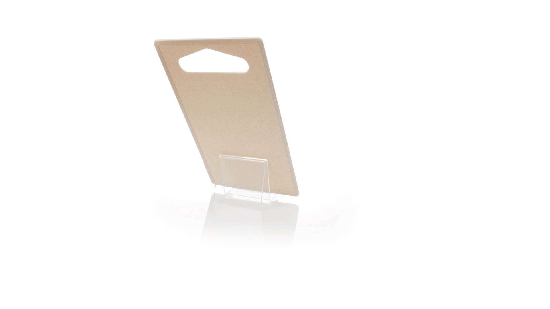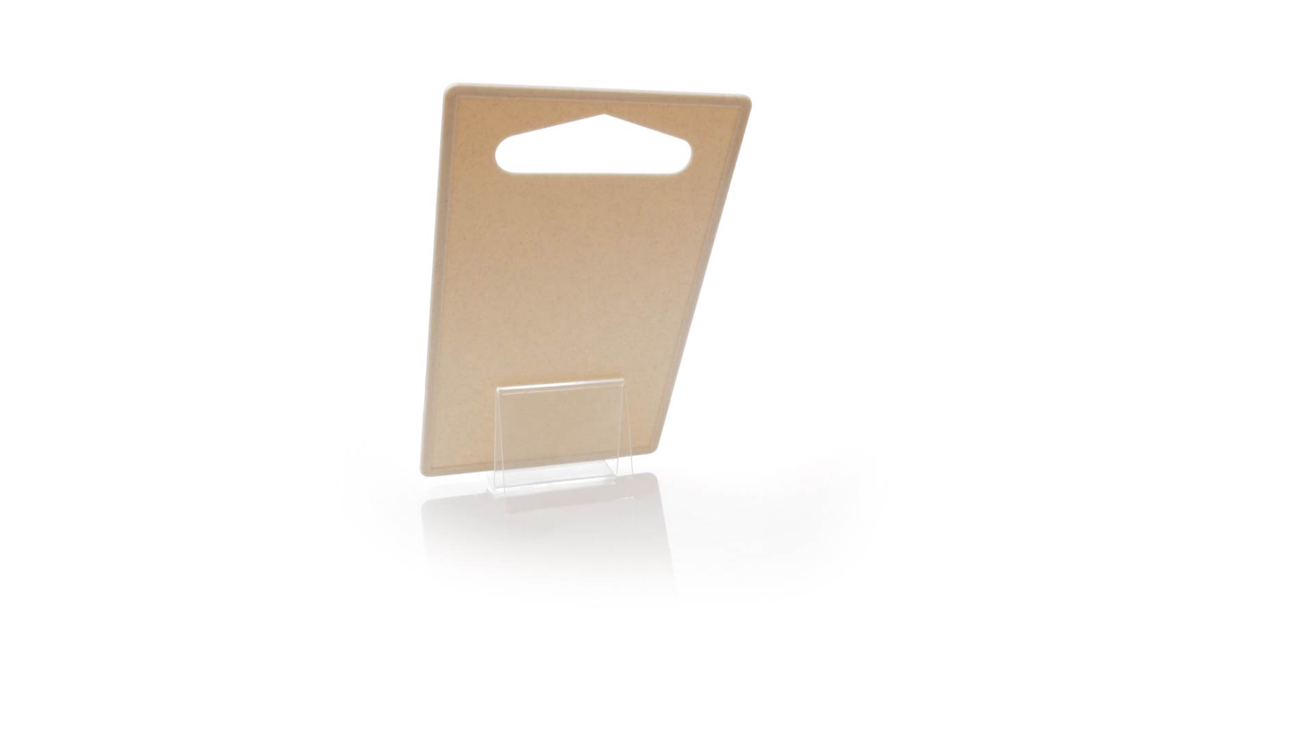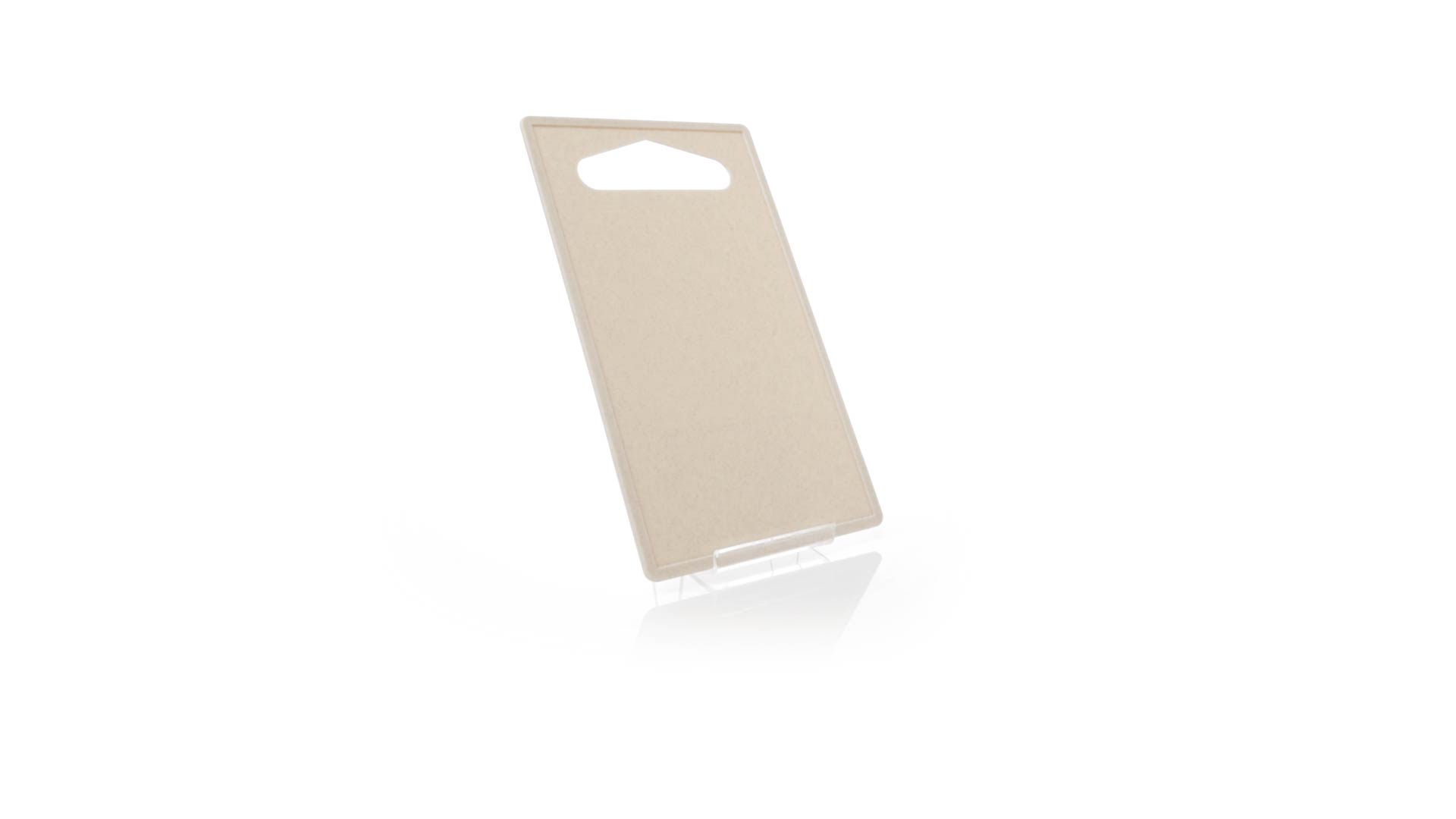Küchenschneidebrett aus PP. Mit Griff für festen Halt, leicht zu reinigen und aufzubewahren. Präsentiert in einer einzelnen recycelten Tasche.