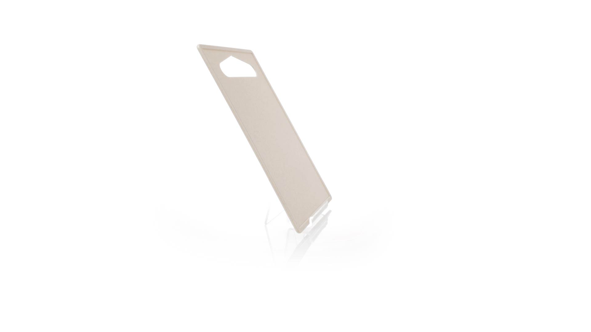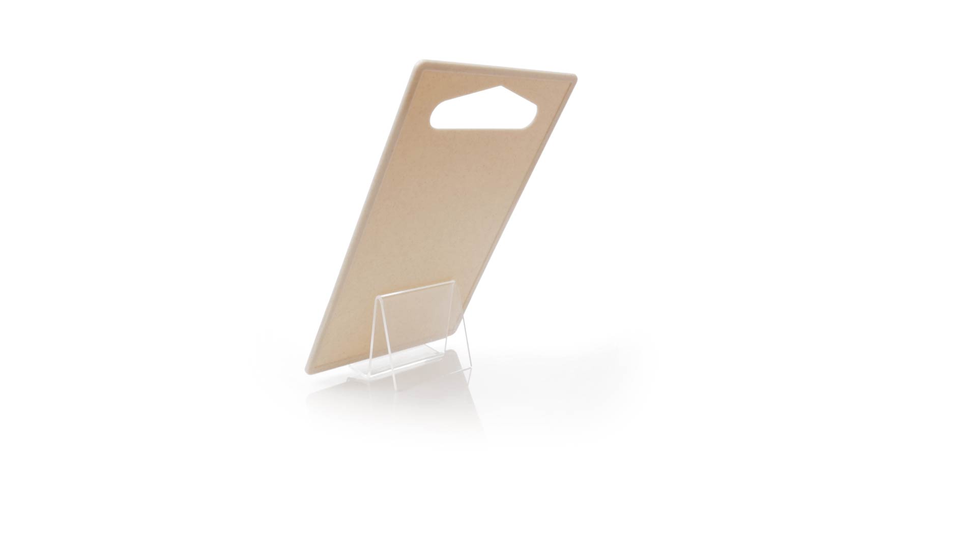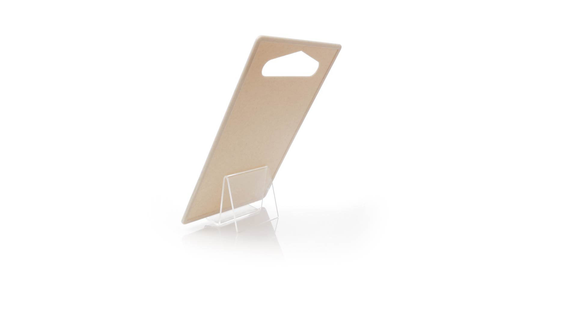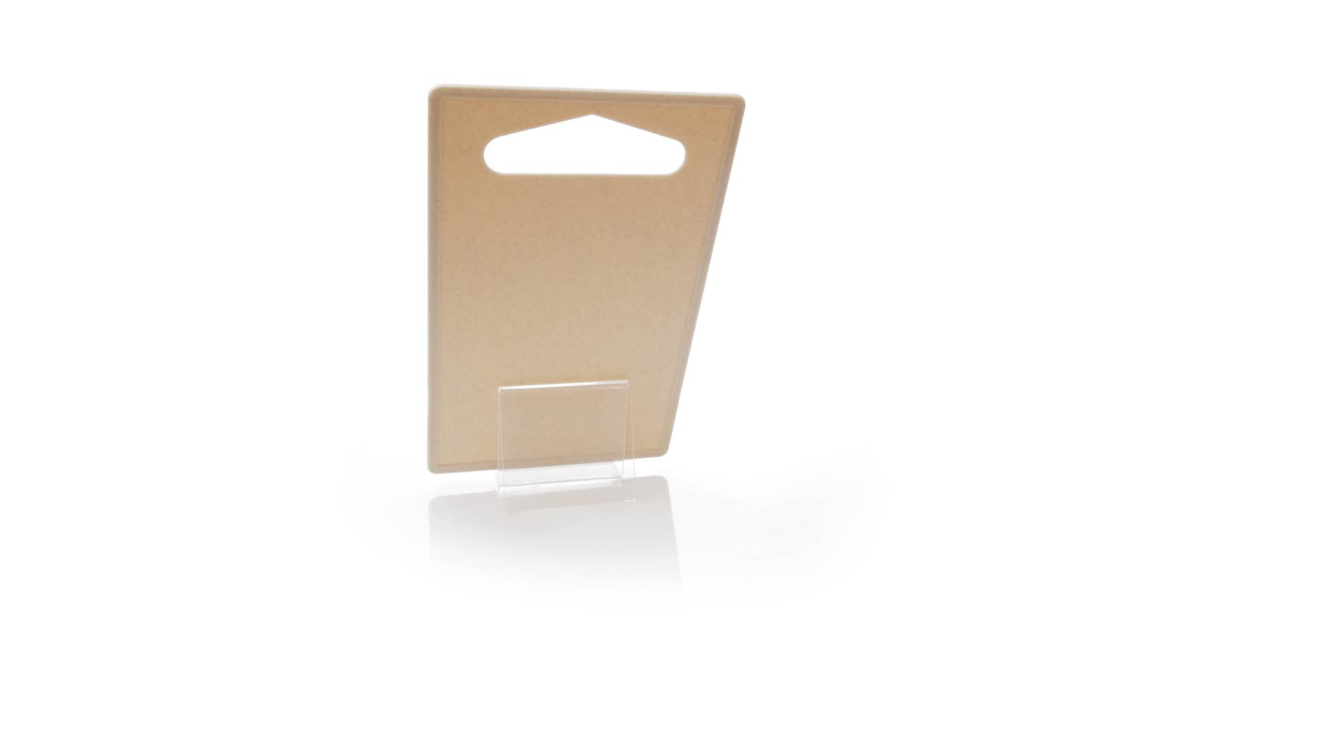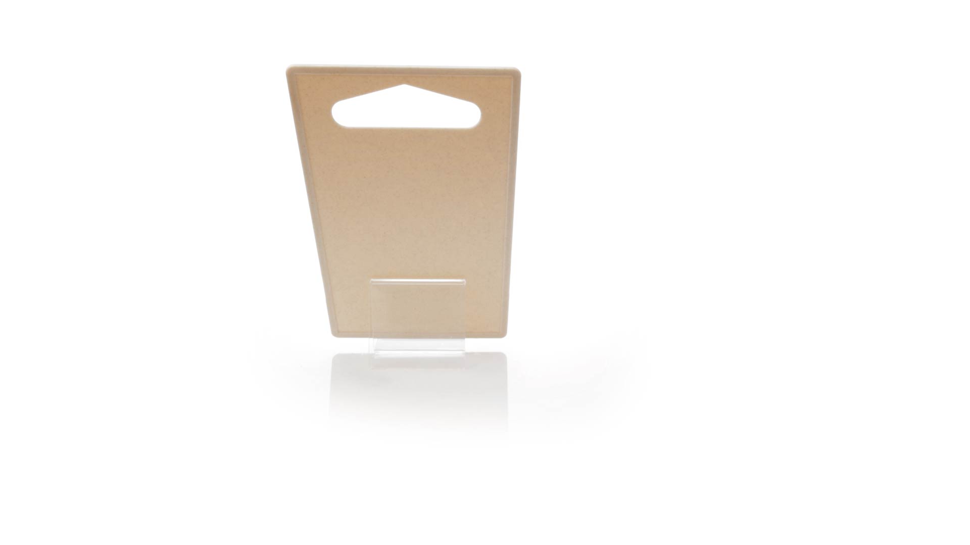 Küchenschneidebrett aus PP. Mit Griff für festen Halt, leicht zu reinigen und aufzubewahren. Präsentiert in einer einzelnen recycelten Tasche.