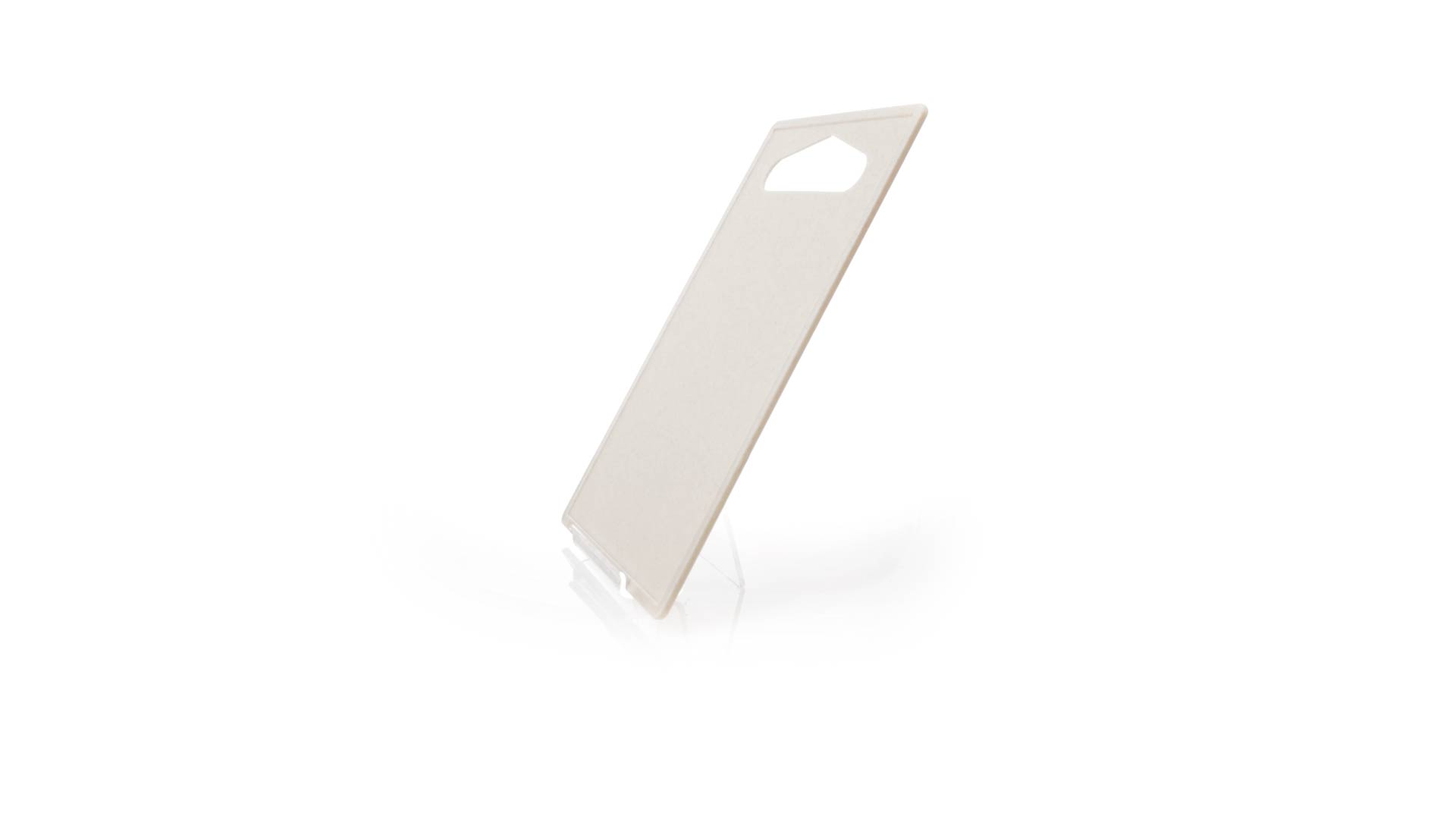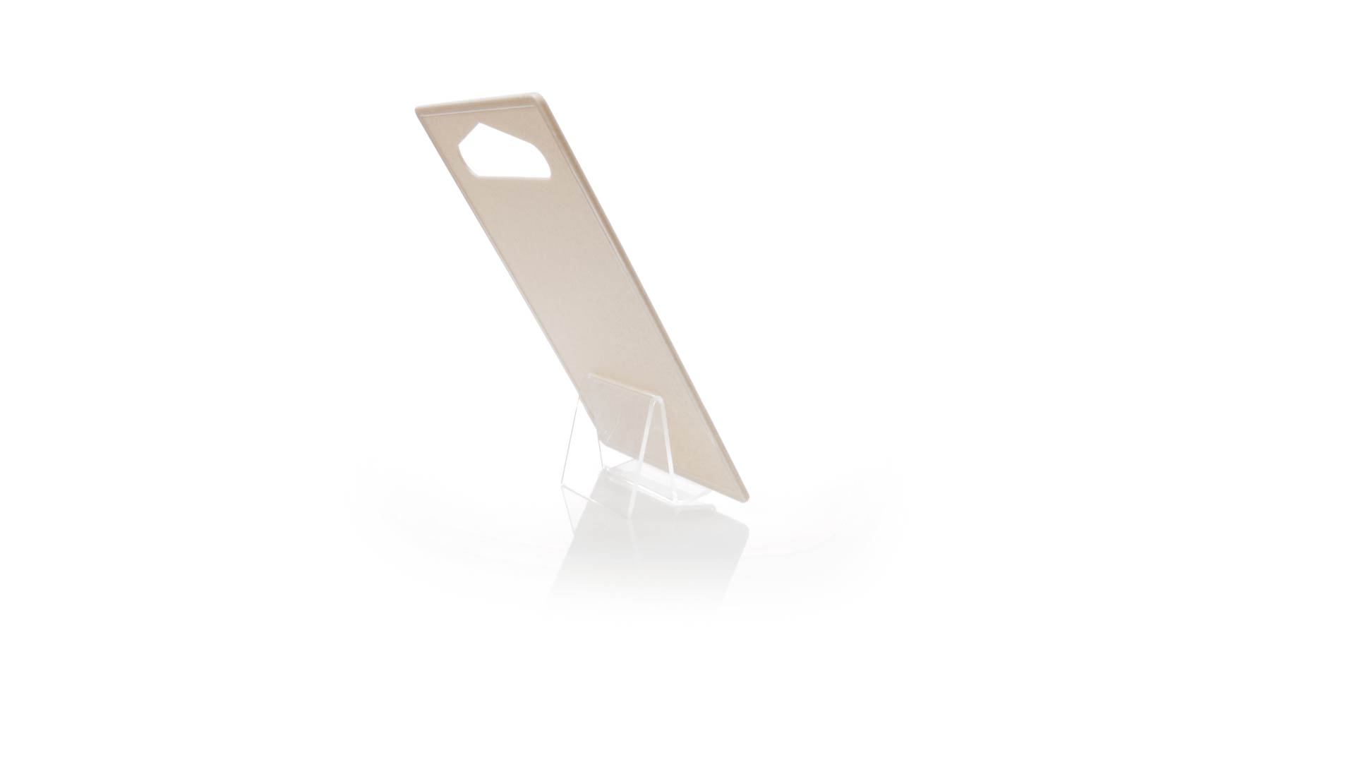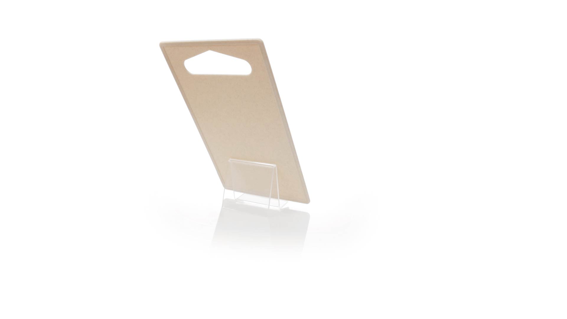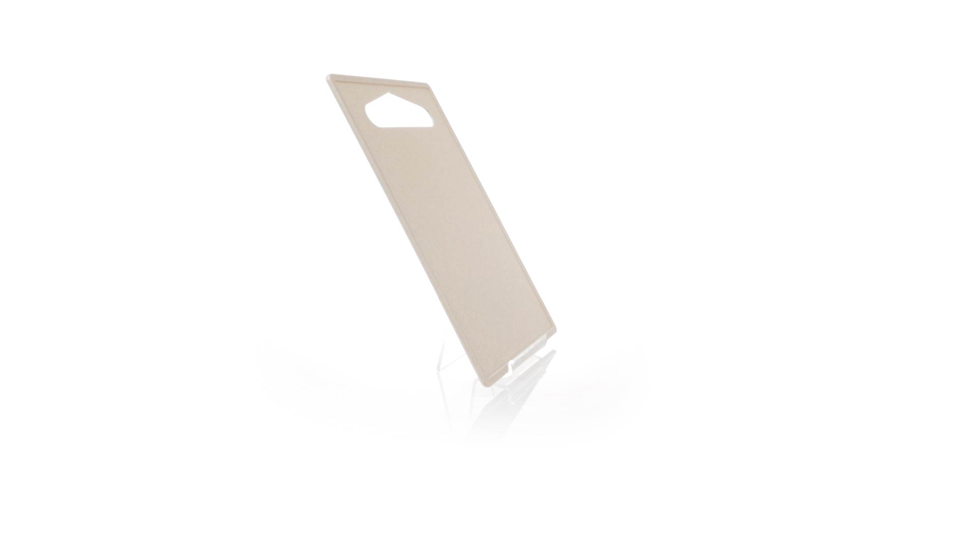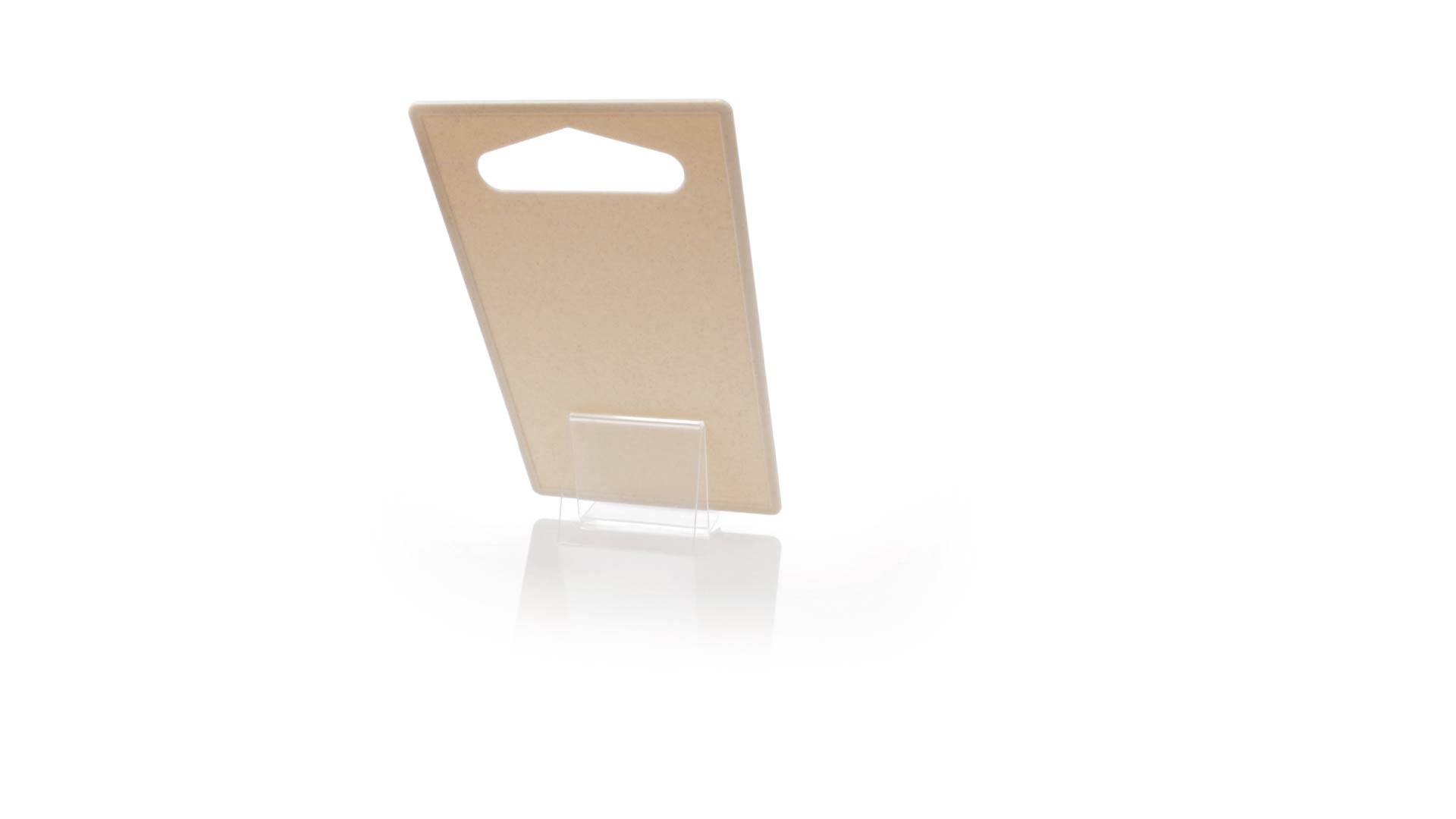 Küchenschneidebrett aus PP. Mit Griff für festen Halt, leicht zu reinigen und aufzubewahren. Präsentiert in einer einzelnen recycelten Tasche.