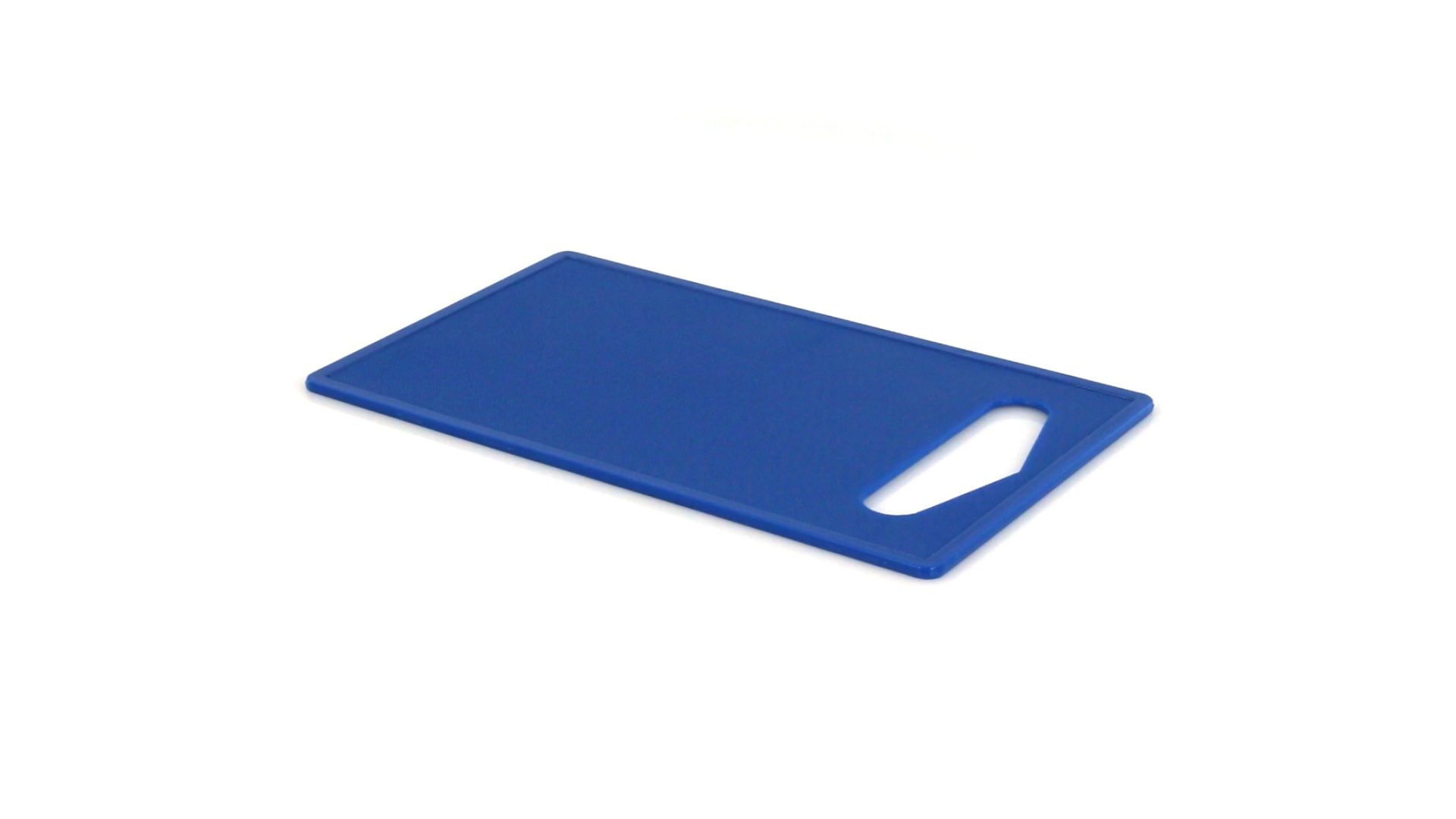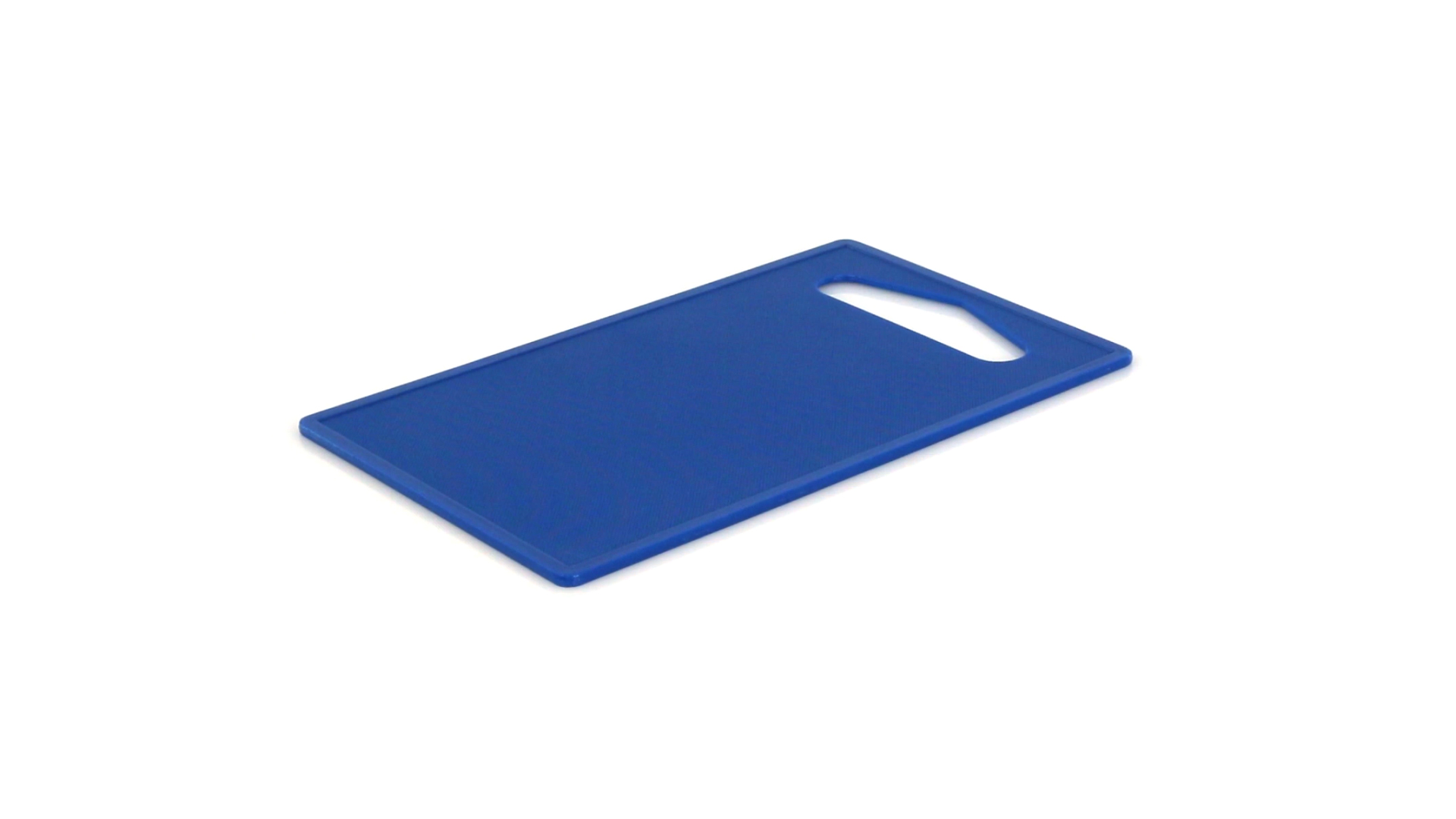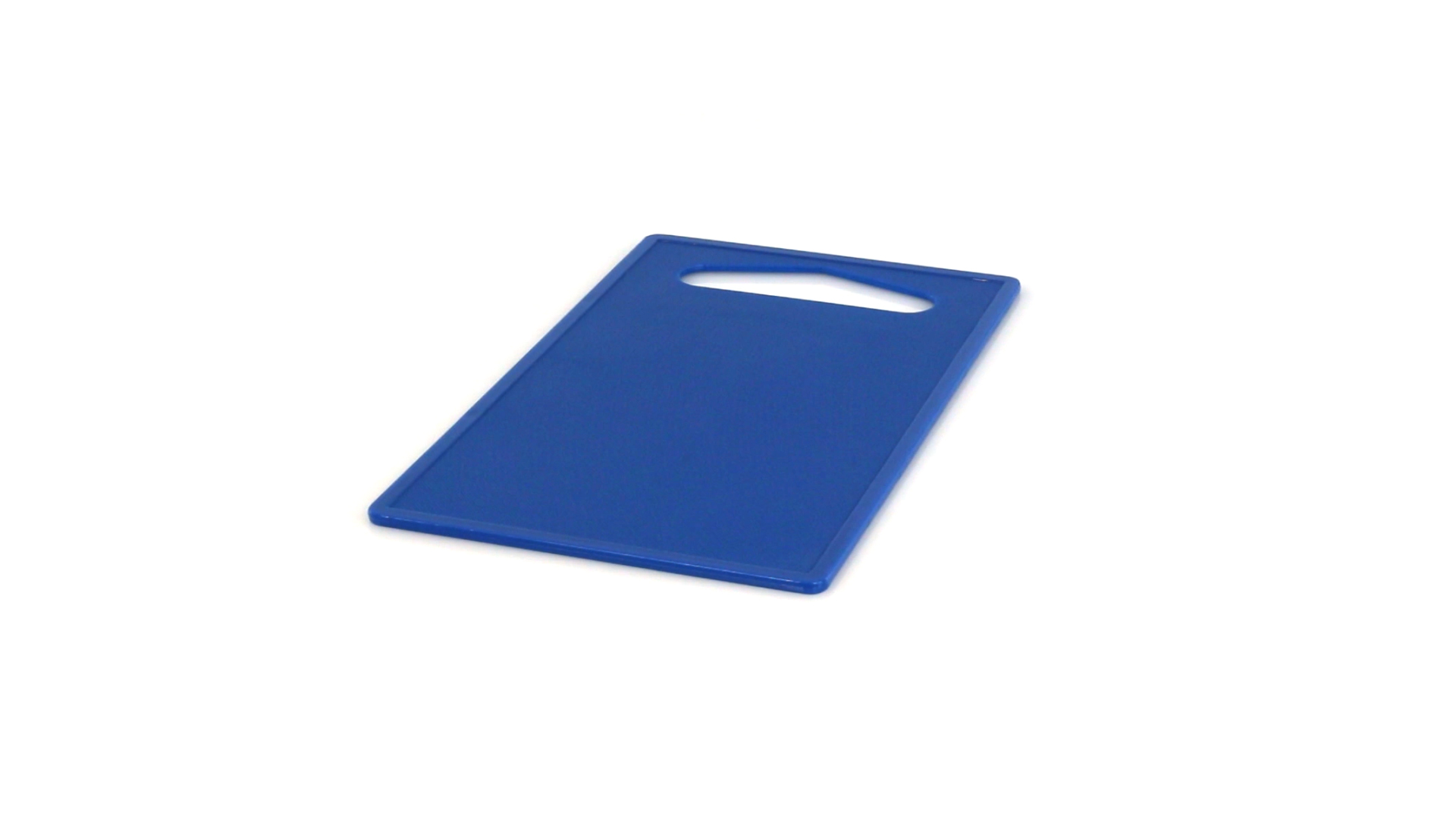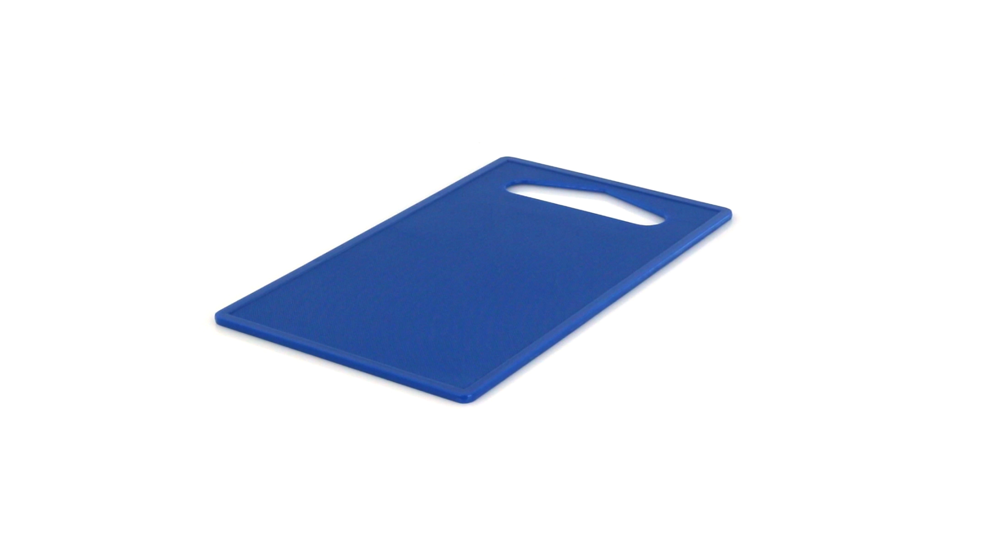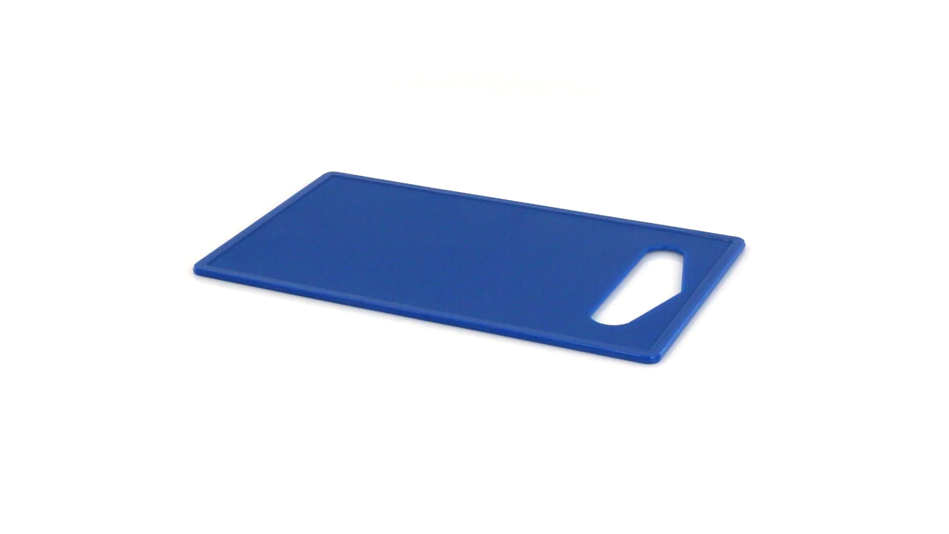 Schneidebrett aus robustem Material in lebendigen Farben. Mit Stanzung für einfache Handhabung und sicherer granulierter Oberfläche.