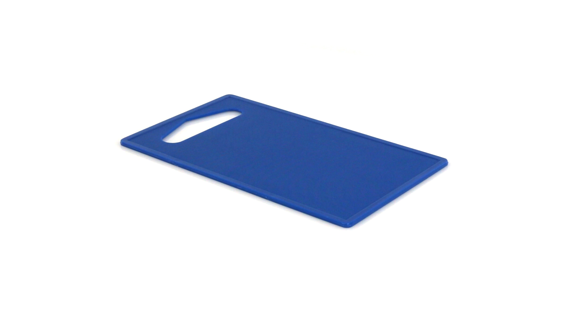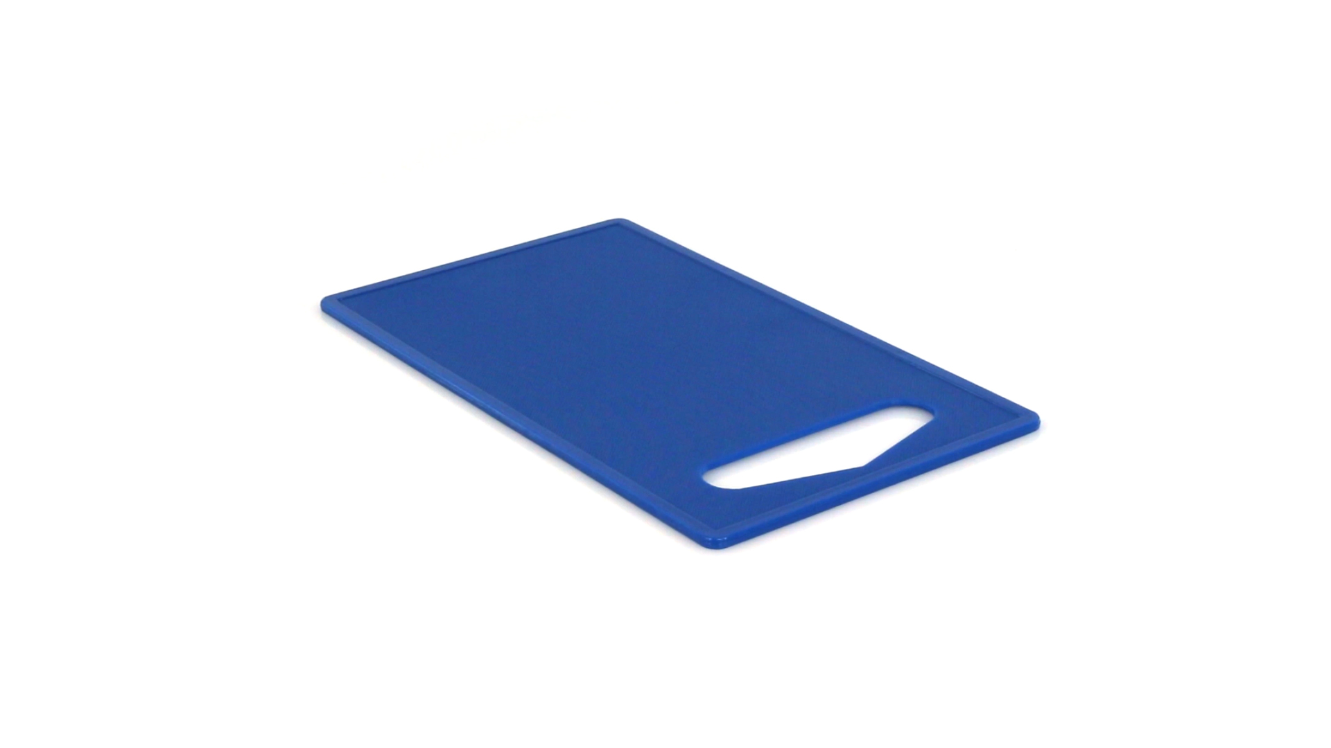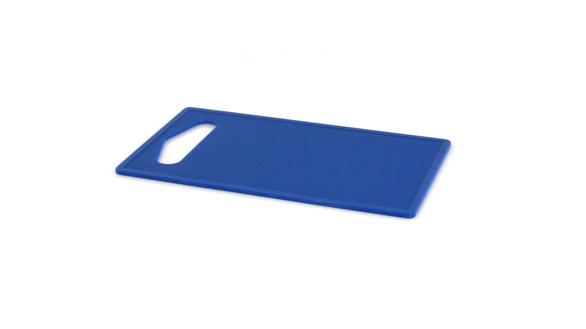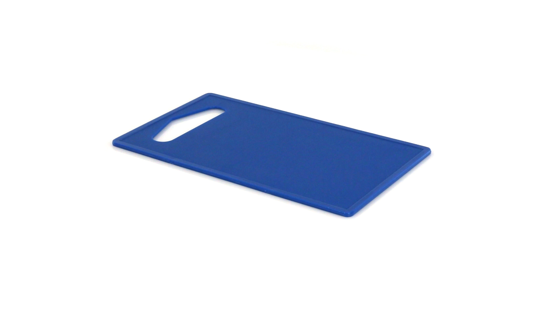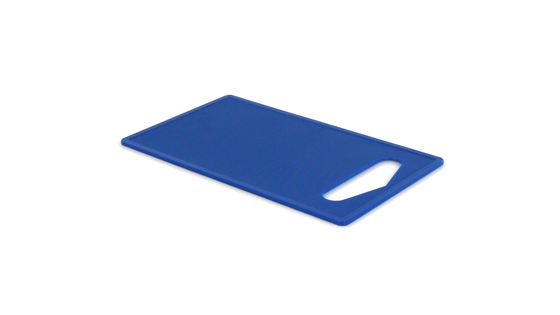 Schneidebrett aus robustem Material in lebendigen Farben. Mit Stanzung für einfache Handhabung und sicherer granulierter Oberfläche.