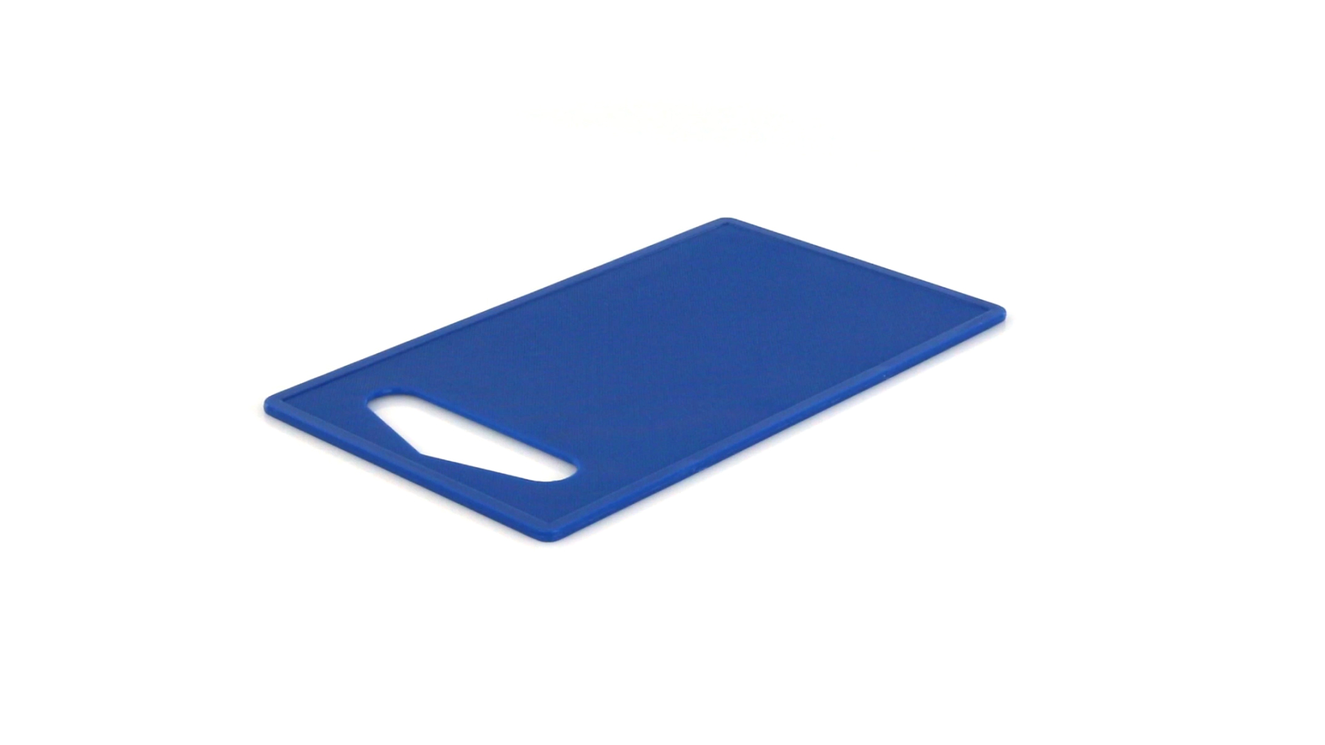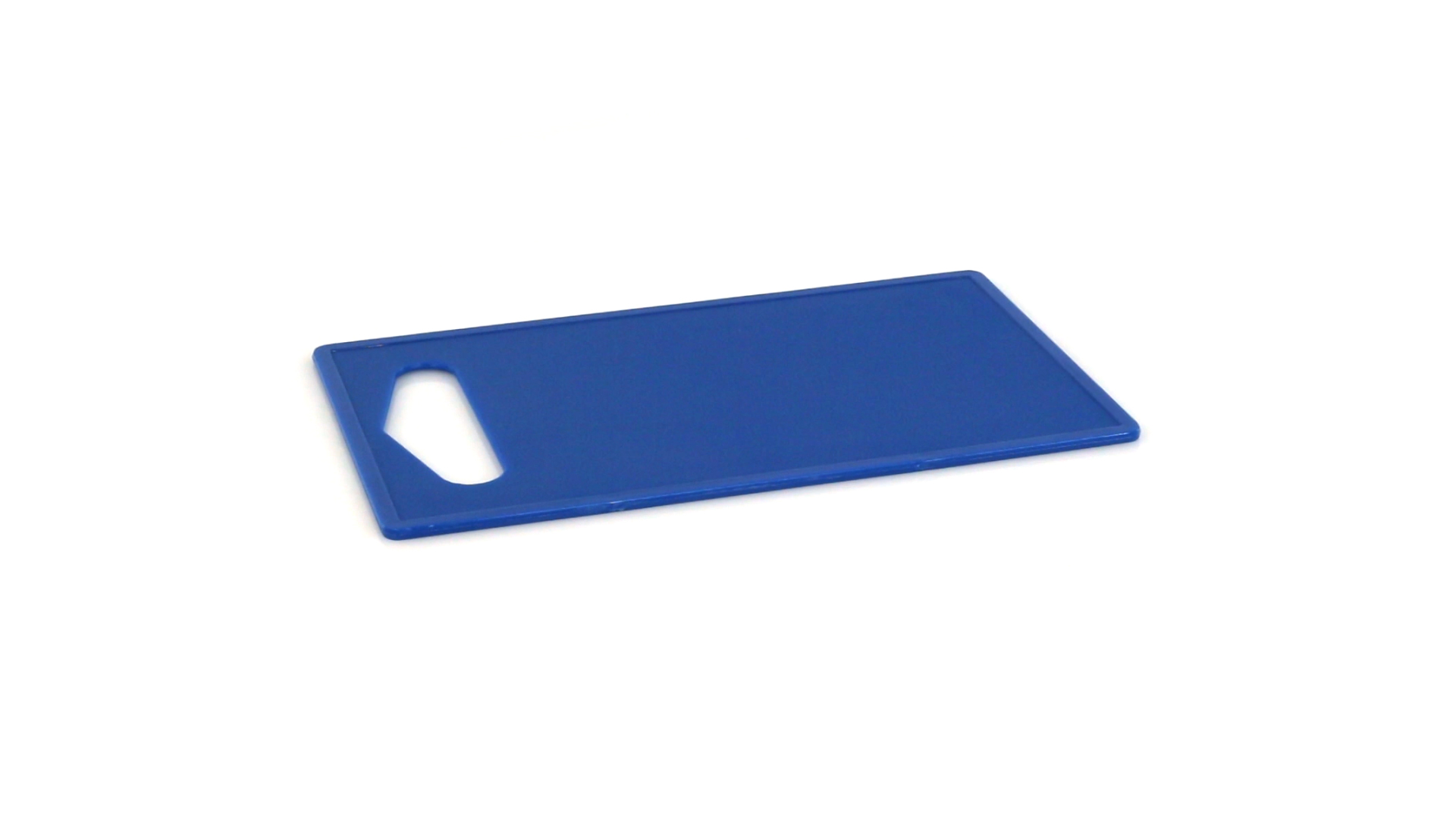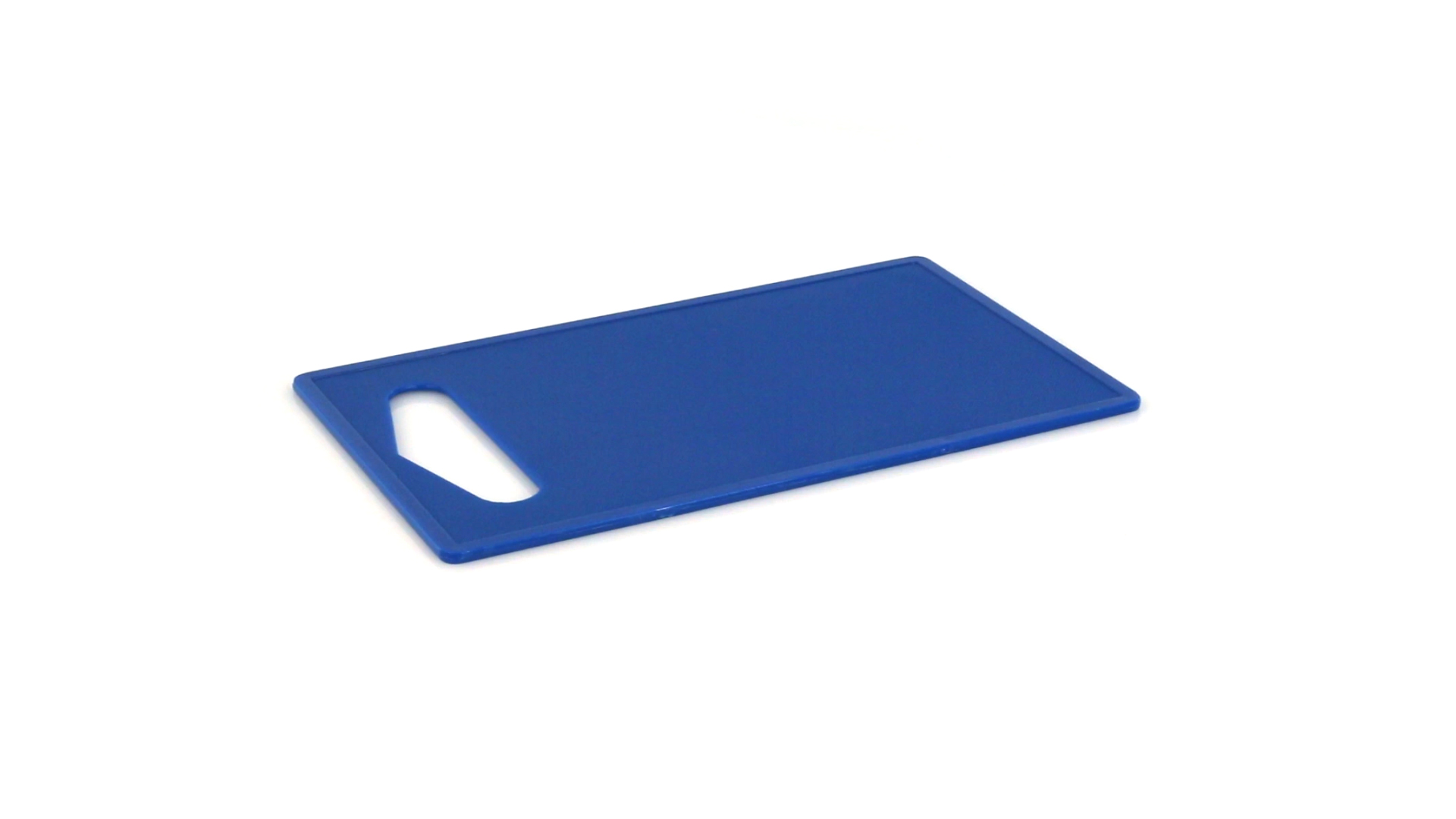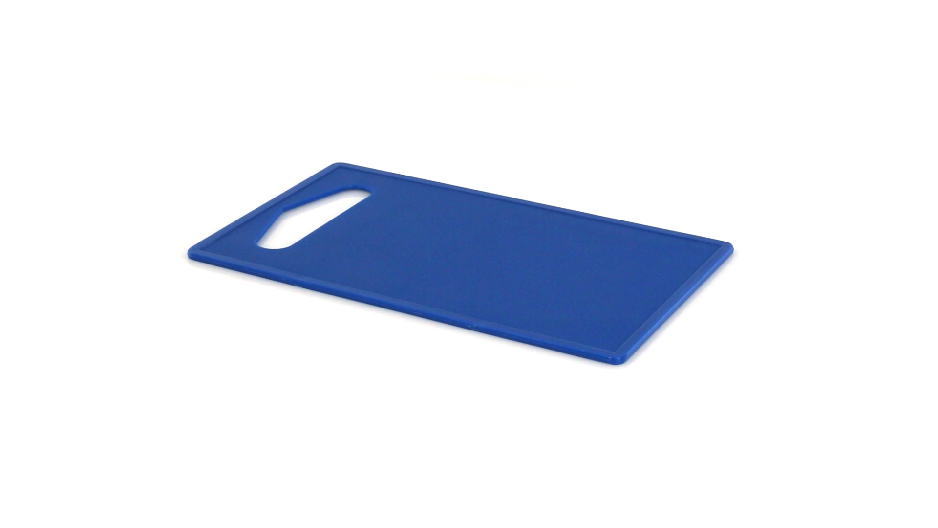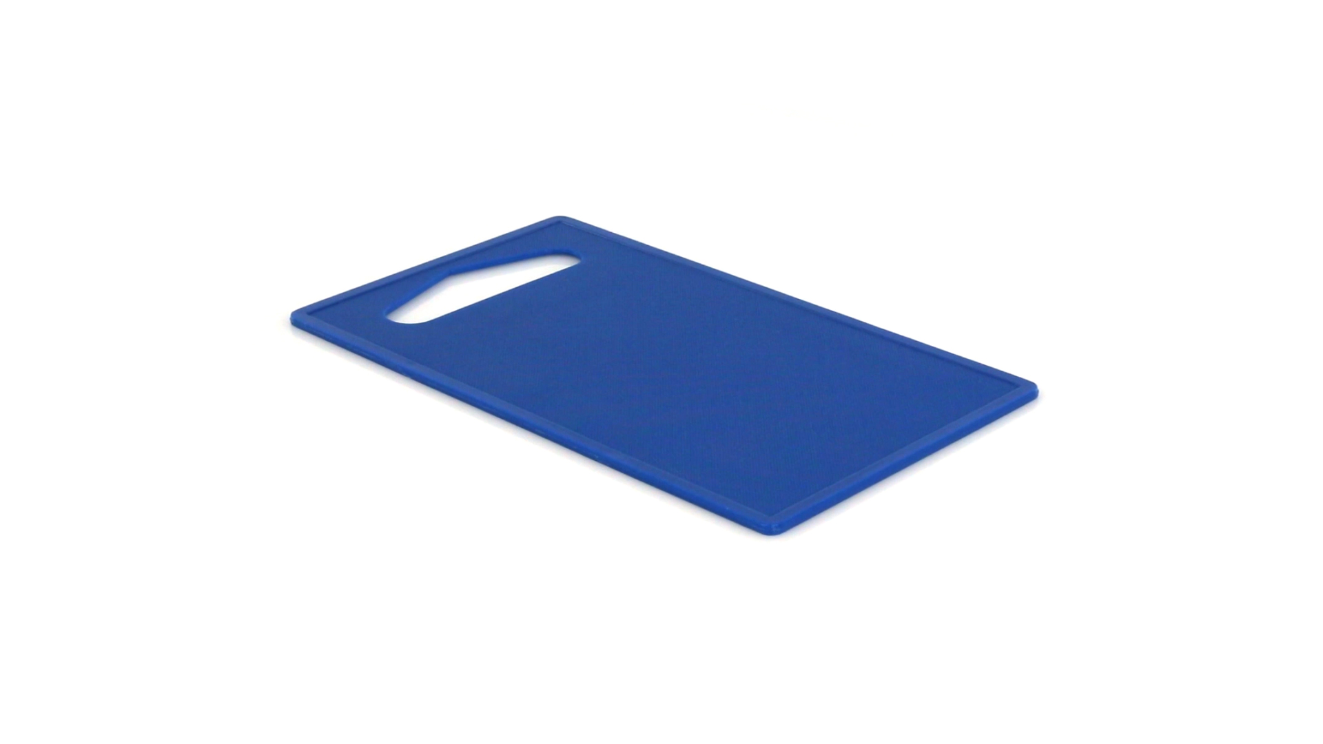 Schneidebrett aus robustem Material in lebendigen Farben. Mit Stanzung für einfache Handhabung und sicherer granulierter Oberfläche.