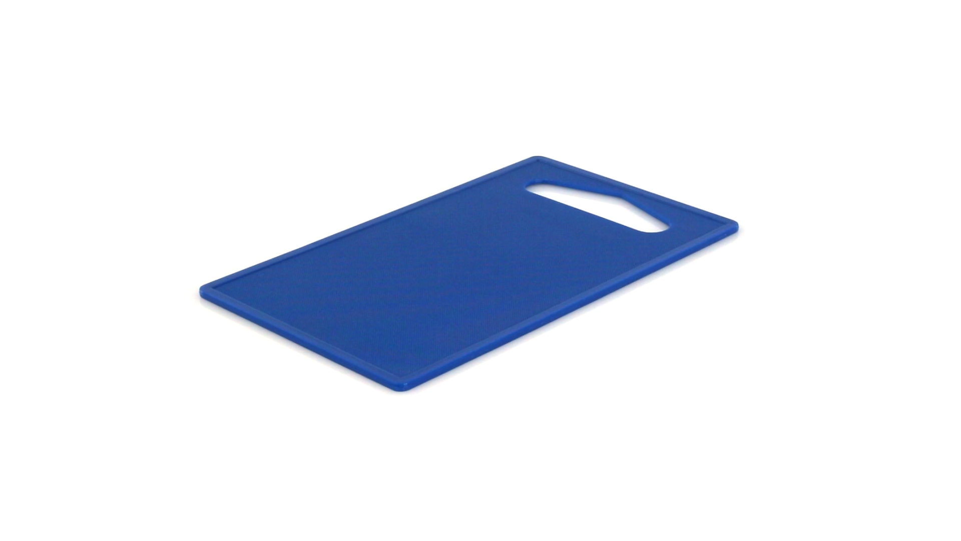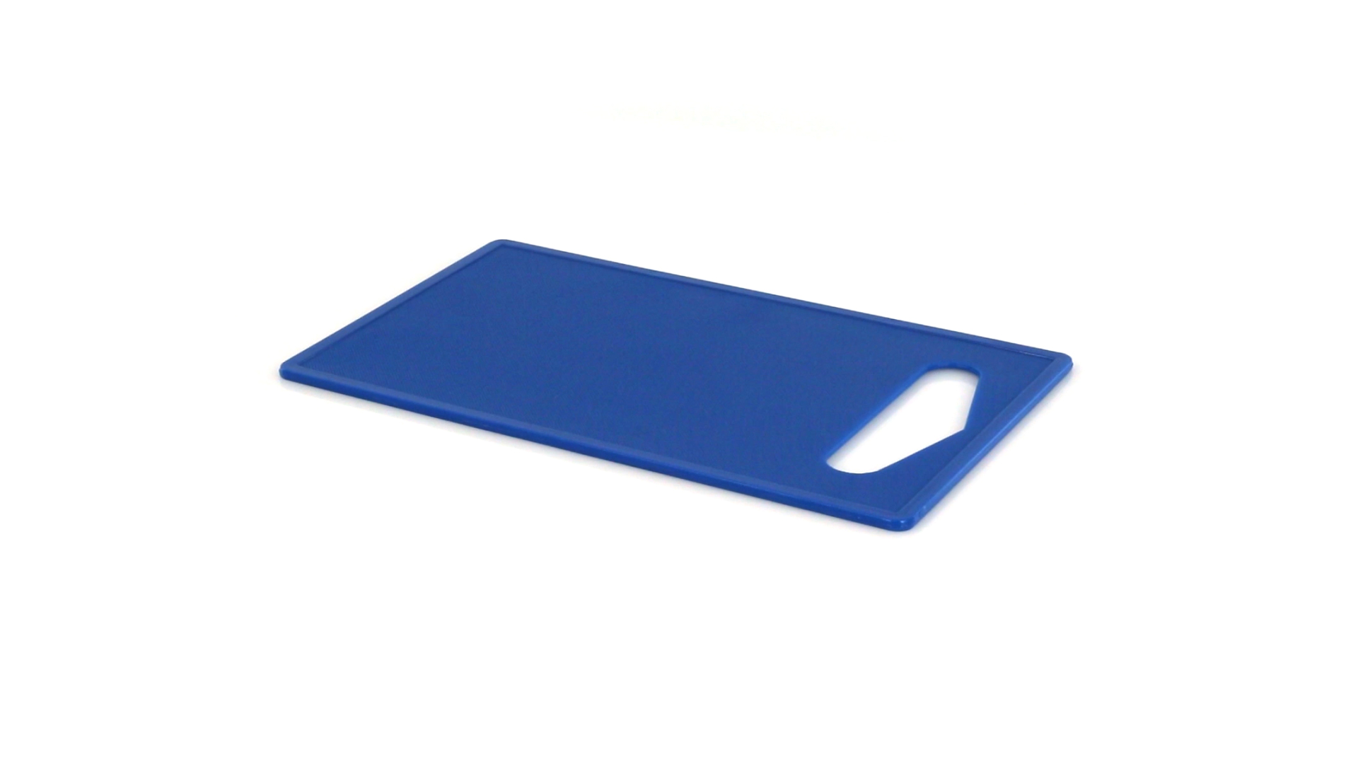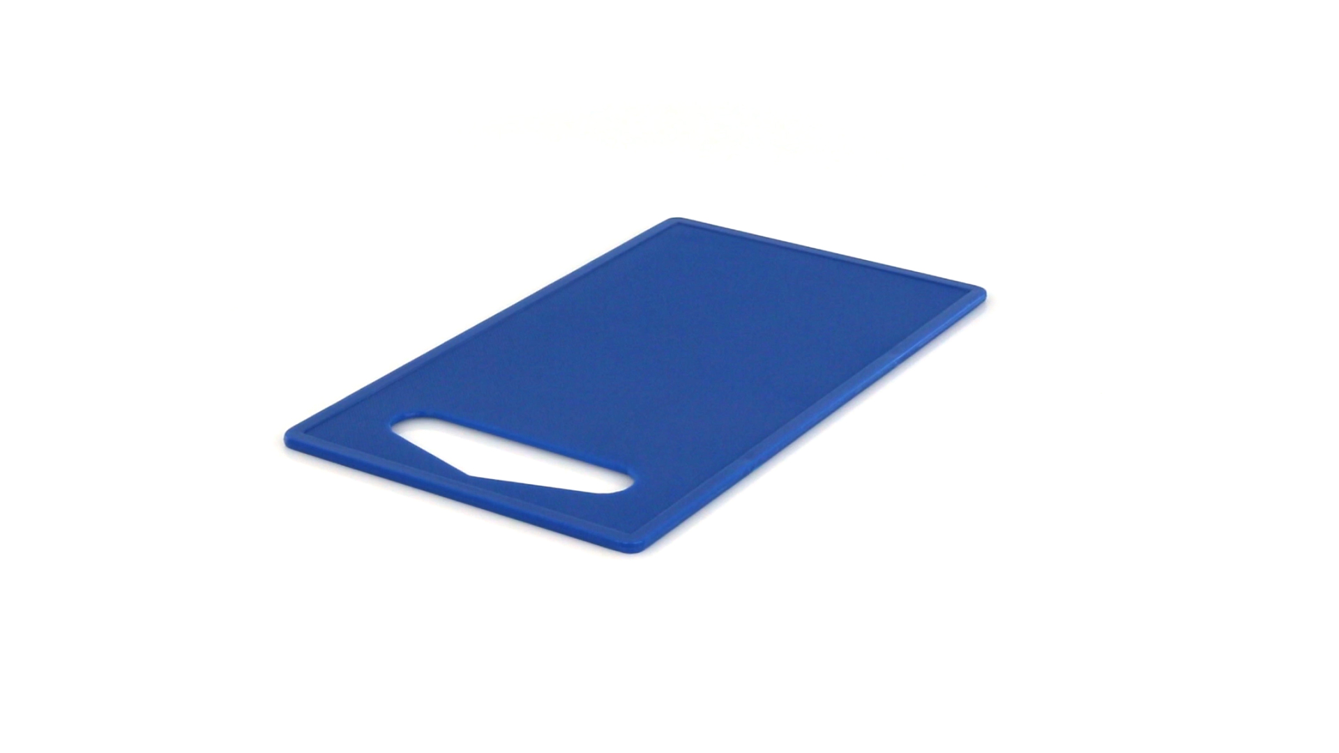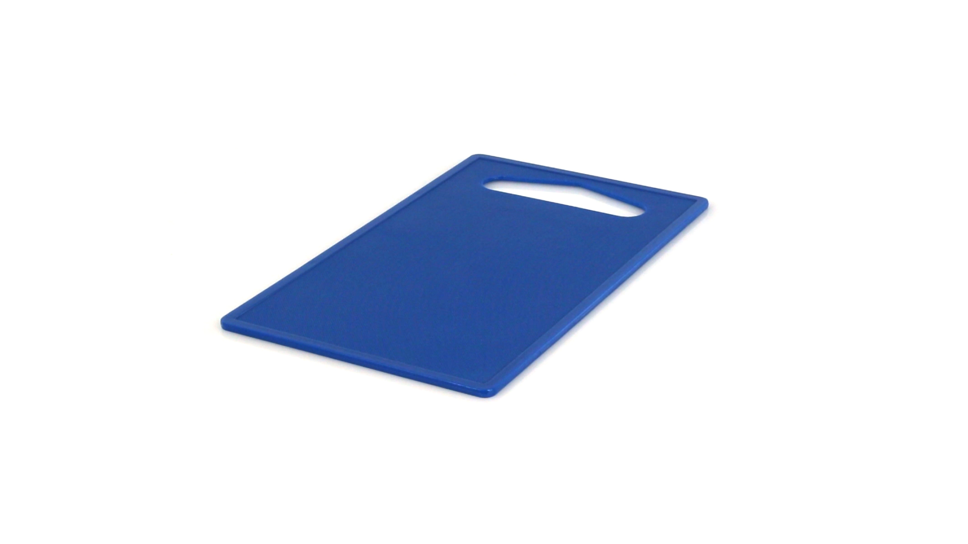 Schneidebrett aus robustem Material in lebendigen Farben. Mit Stanzung für einfache Handhabung und sicherer granulierter Oberfläche.