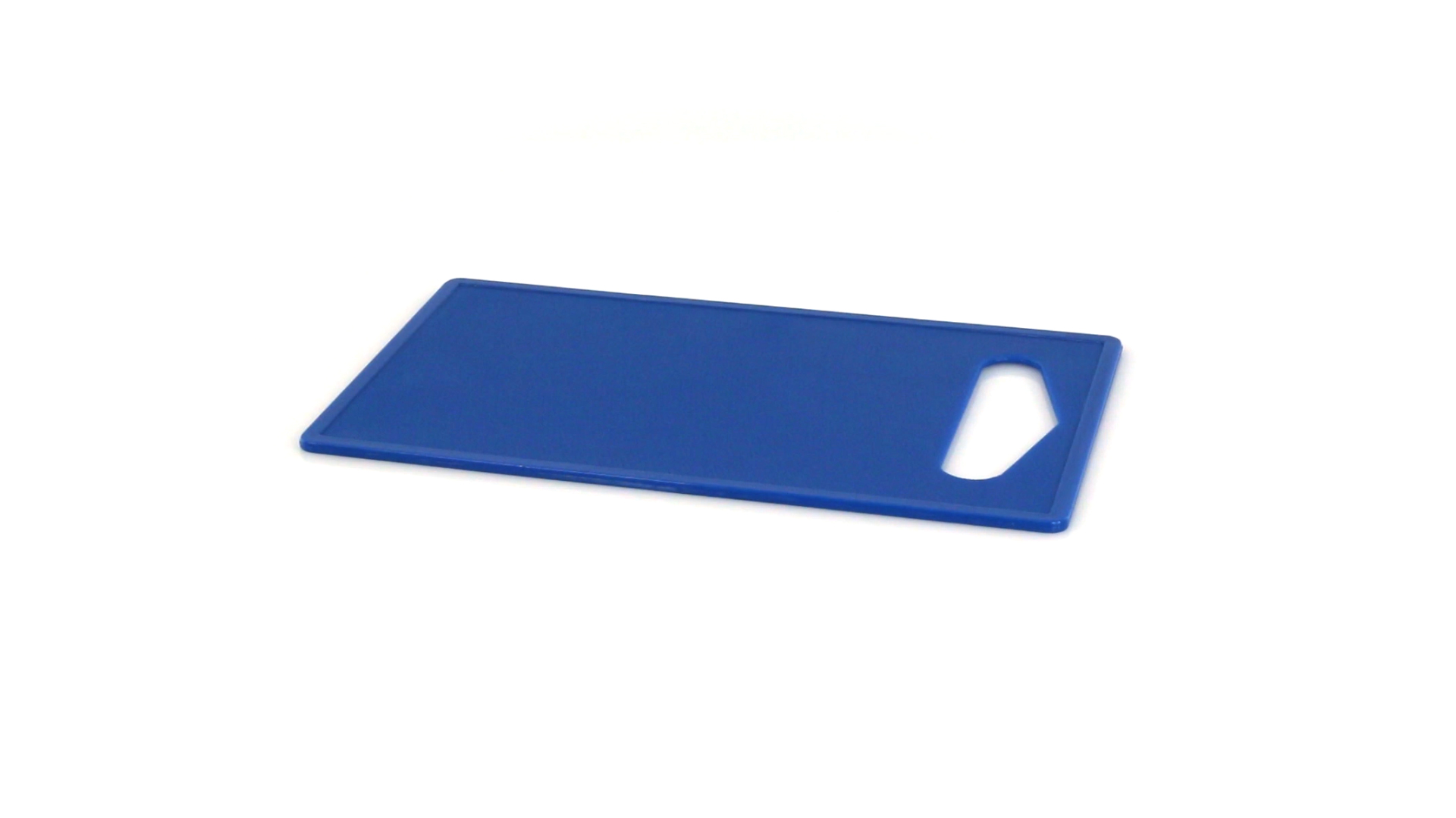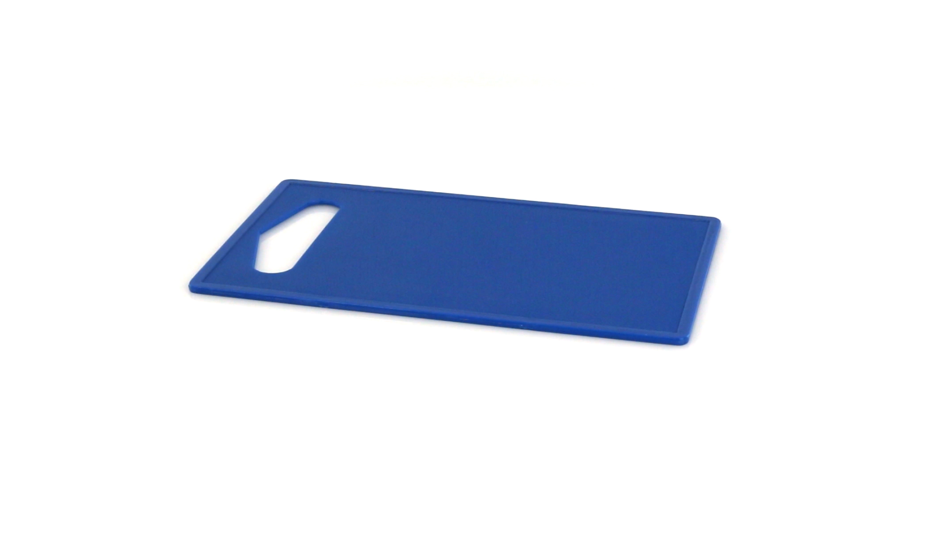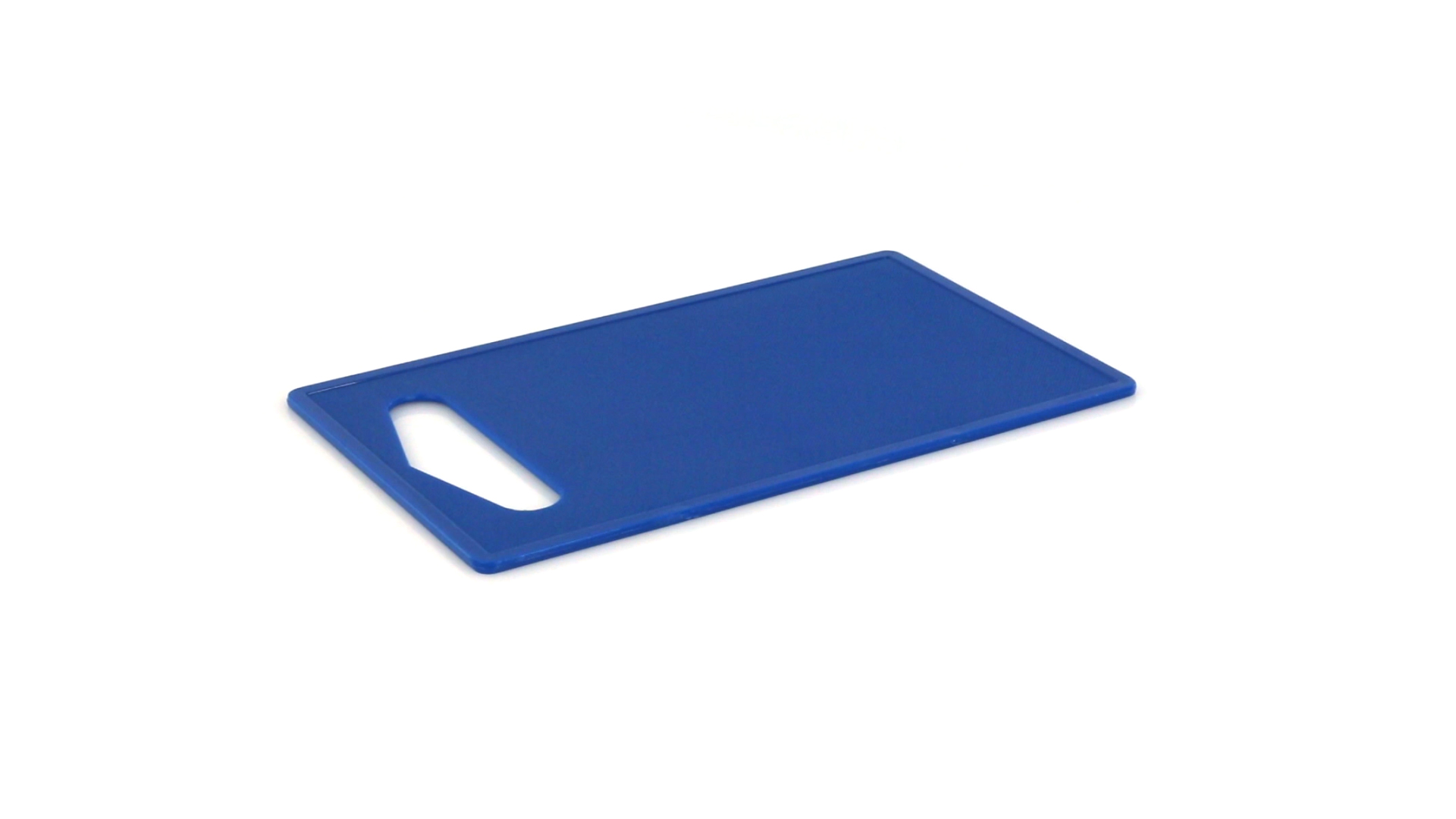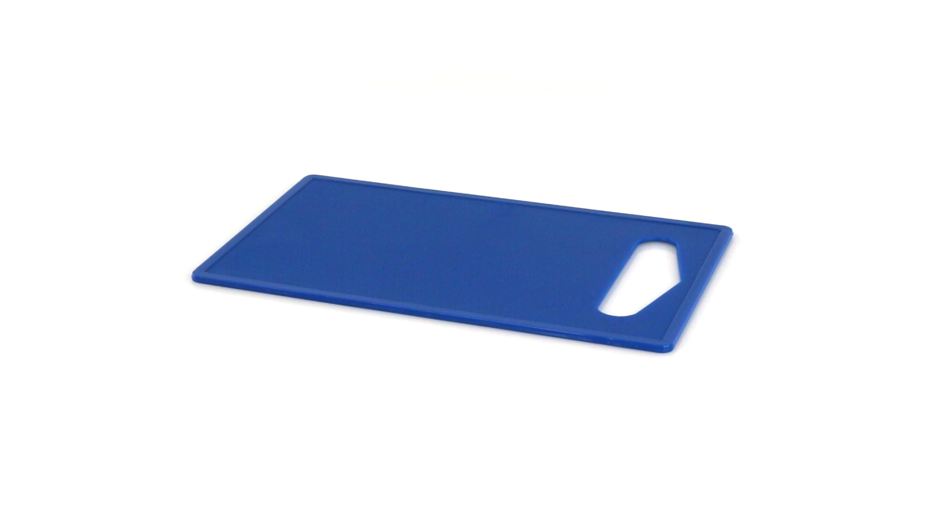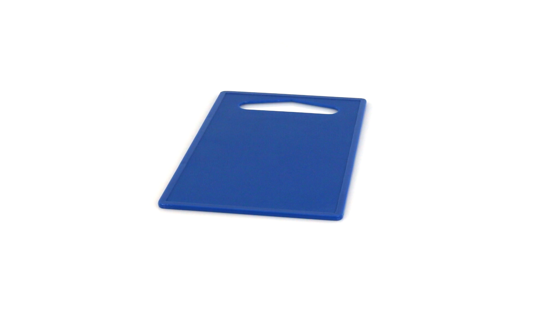 Schneidebrett aus robustem Material in lebendigen Farben. Mit Stanzung für einfache Handhabung und sicherer granulierter Oberfläche.