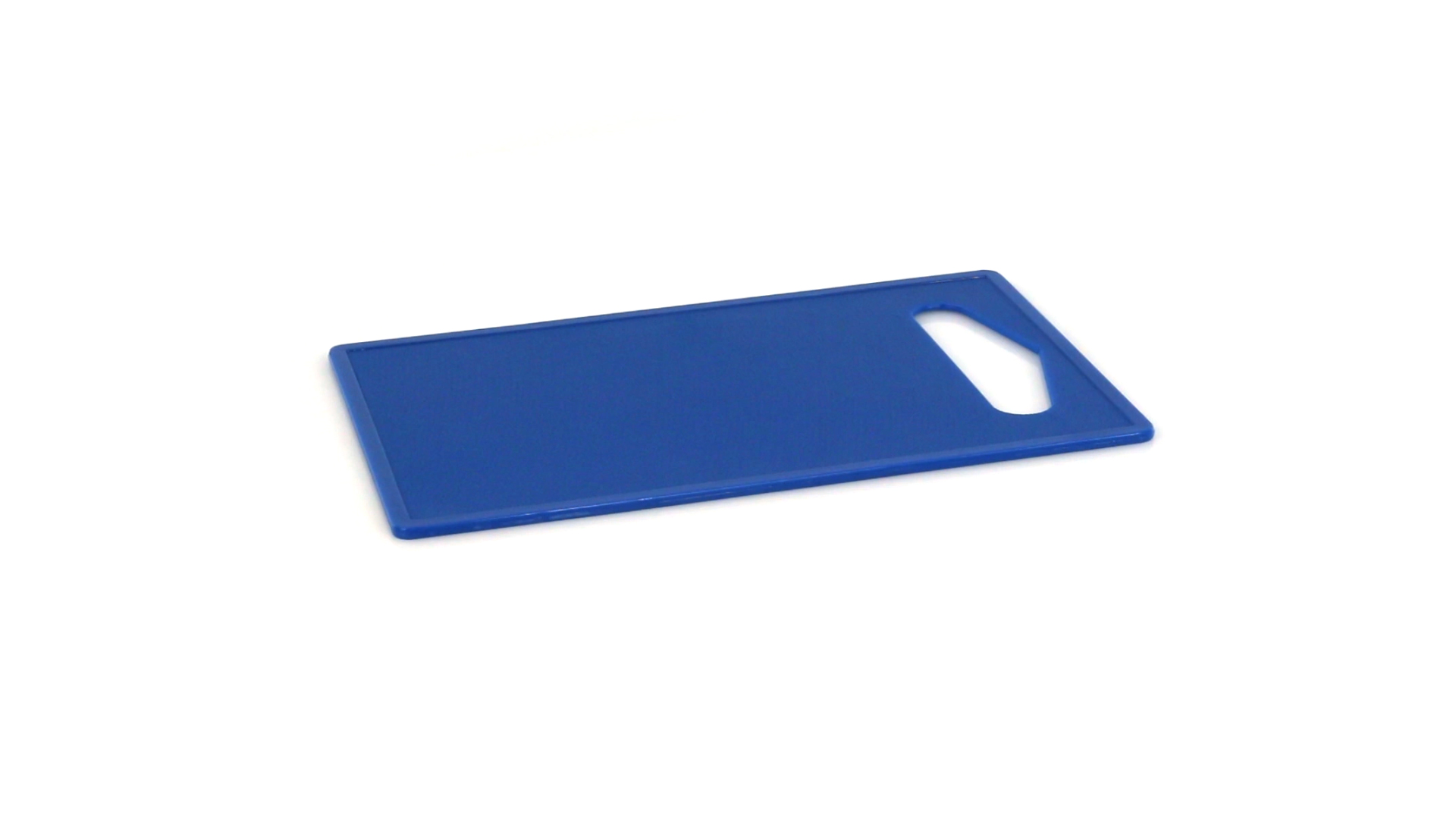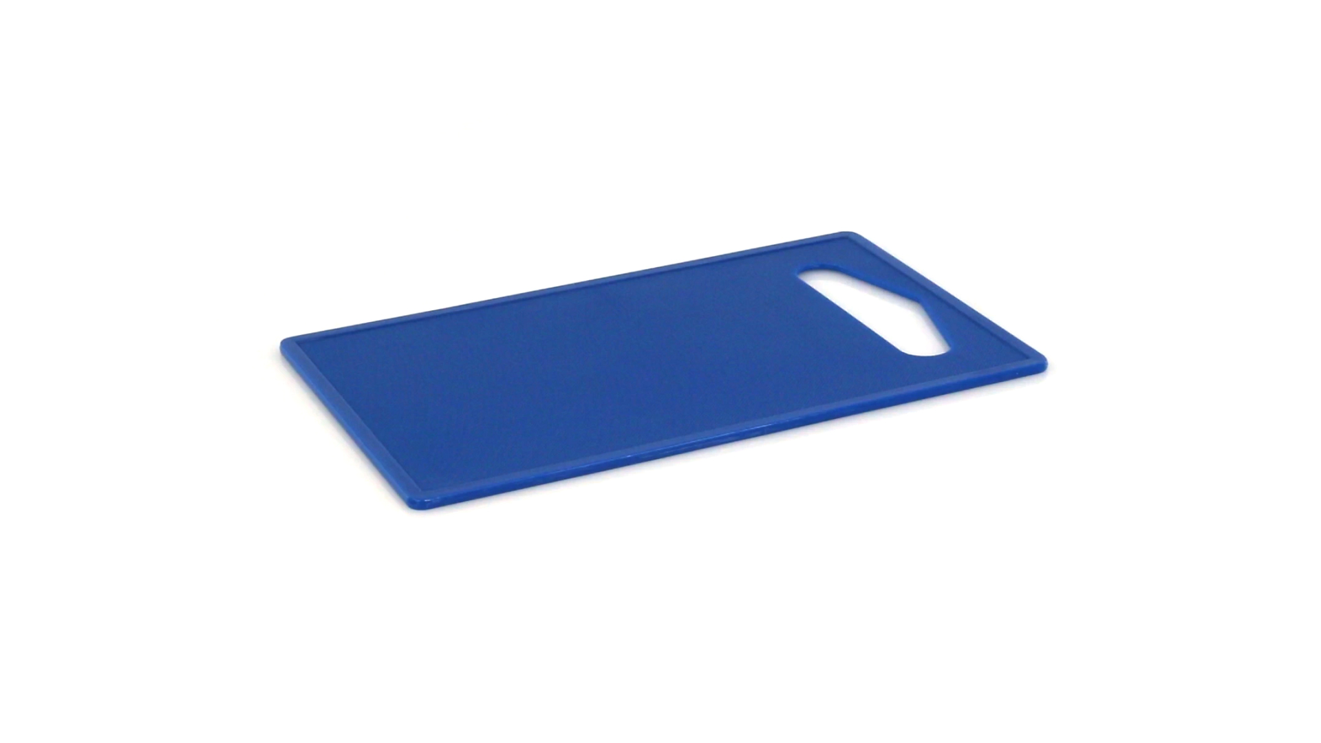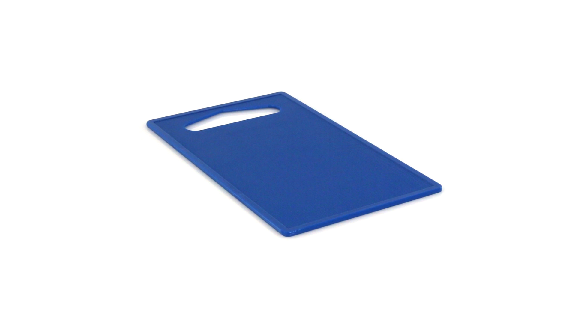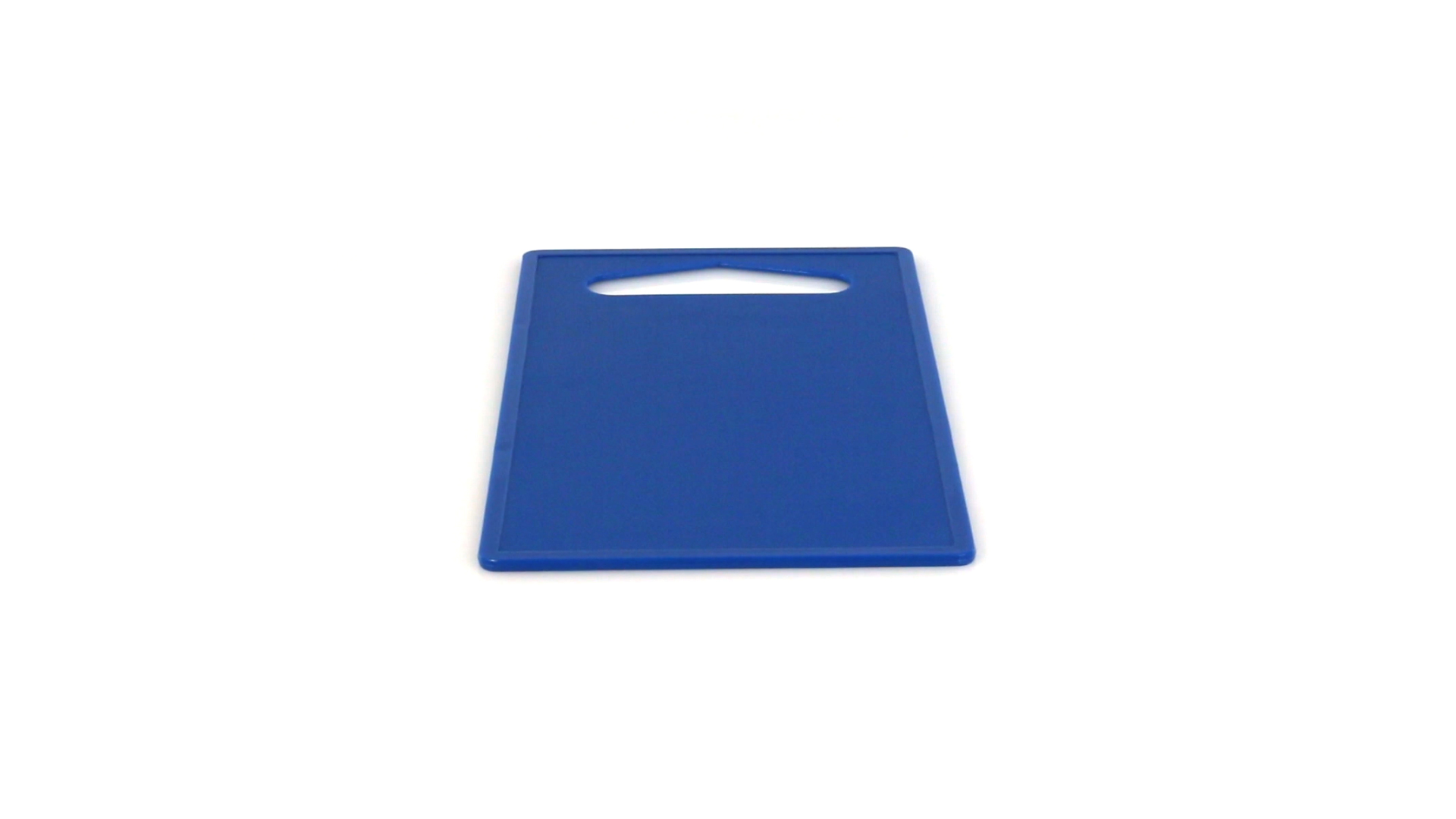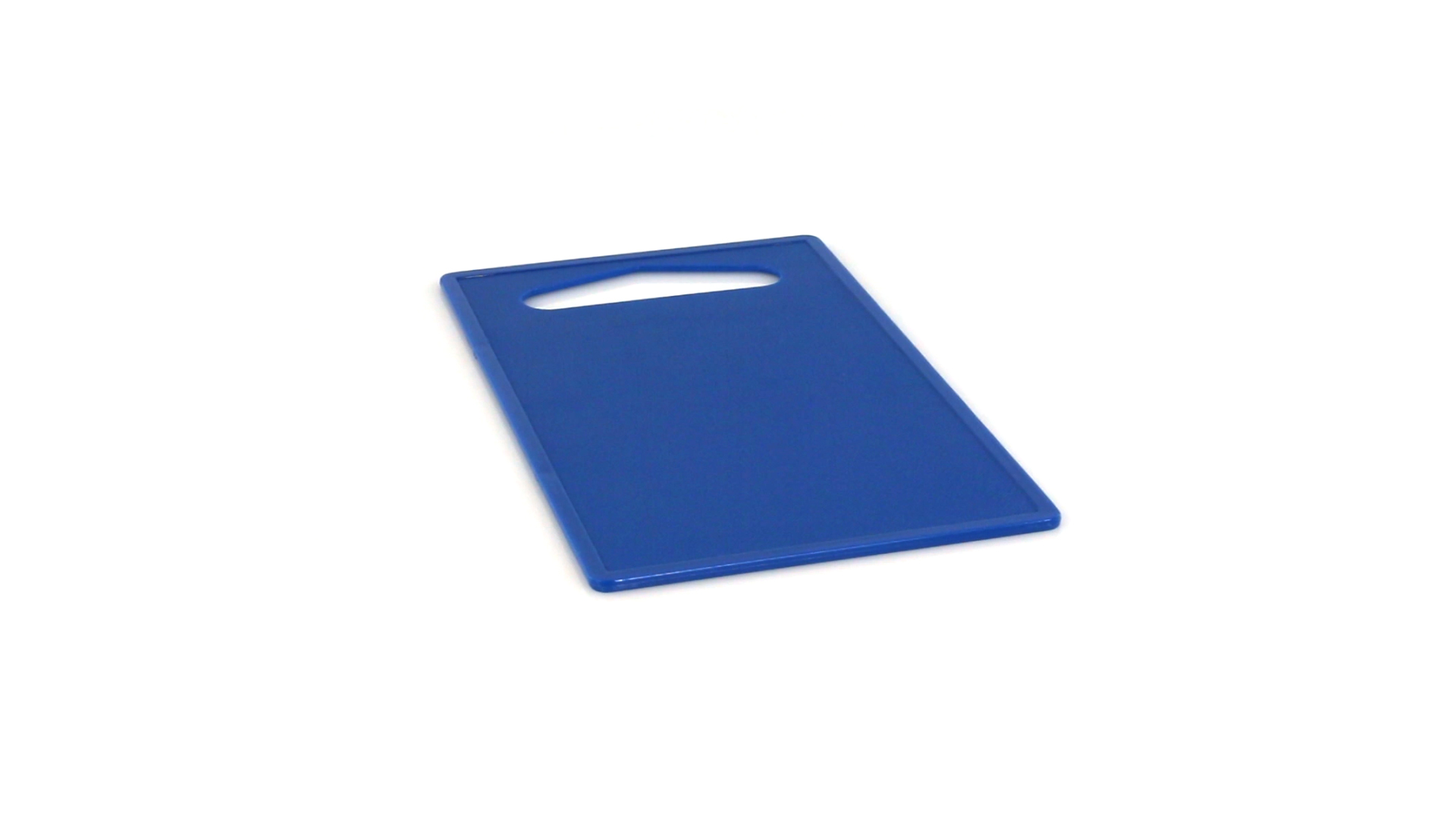 Schneidebrett aus robustem Material in lebendigen Farben. Mit Stanzung für einfache Handhabung und sicherer granulierter Oberfläche.